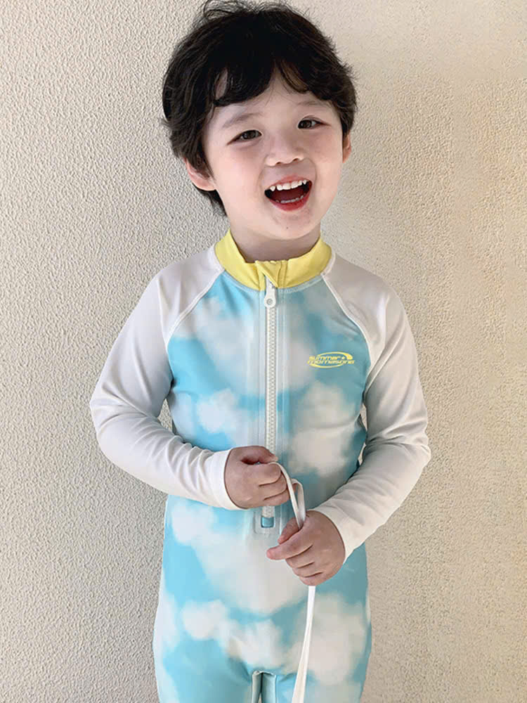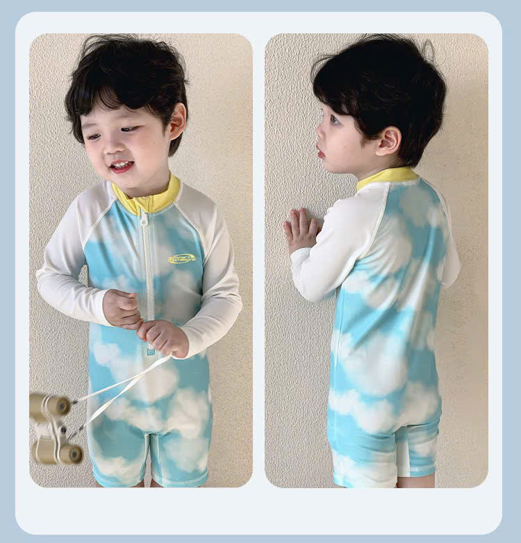 Bộ bơi bé trai chống nắng UPF50+, màu xanh, dài tay, Paradise, YUKE