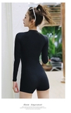 Bộ bơi dài tay đen kéo khóa, quần cộc liền 2208