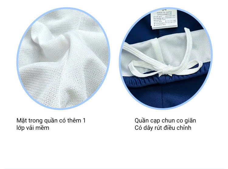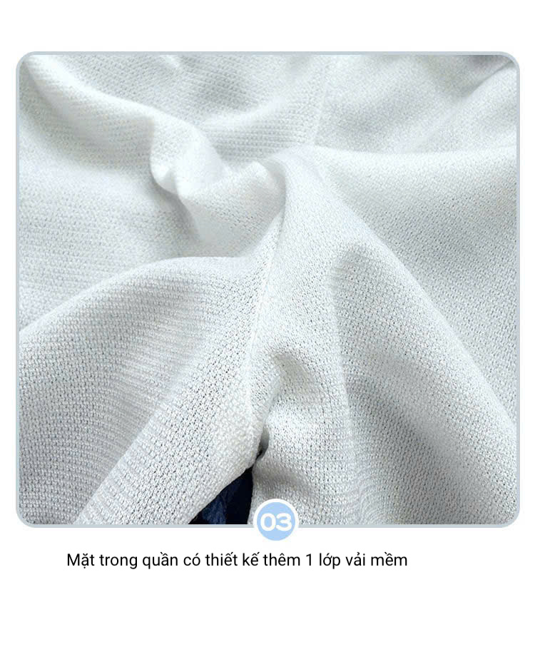 Quần cạp chun co giãn, có dây rút, Đáy quần có lót thêm 1 lớp vải mềm