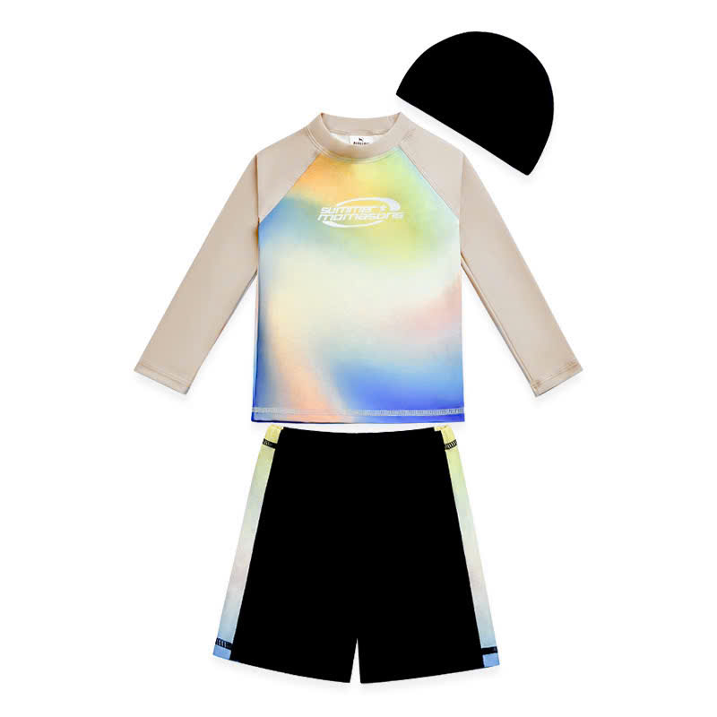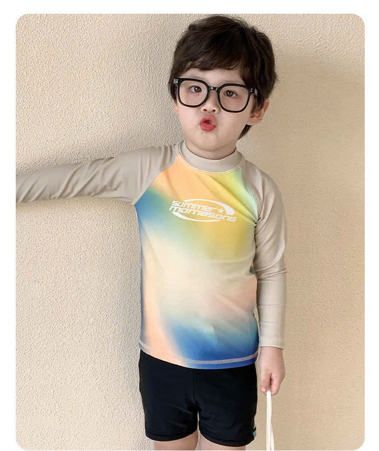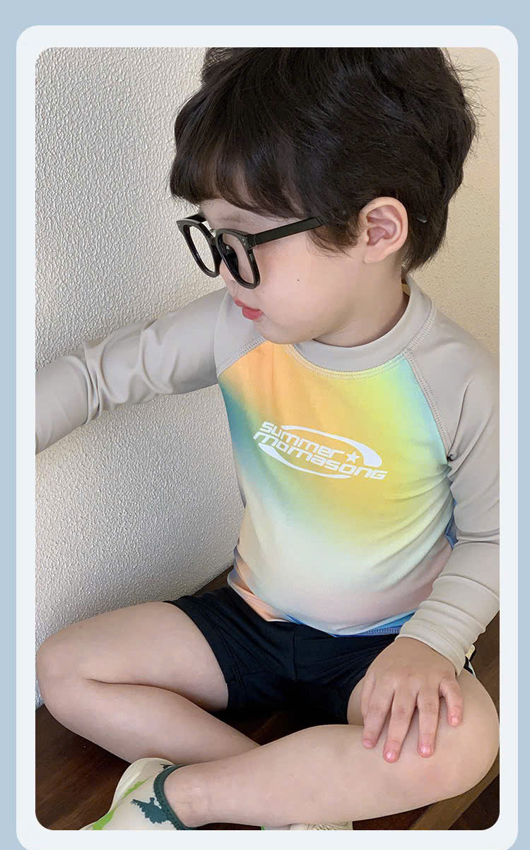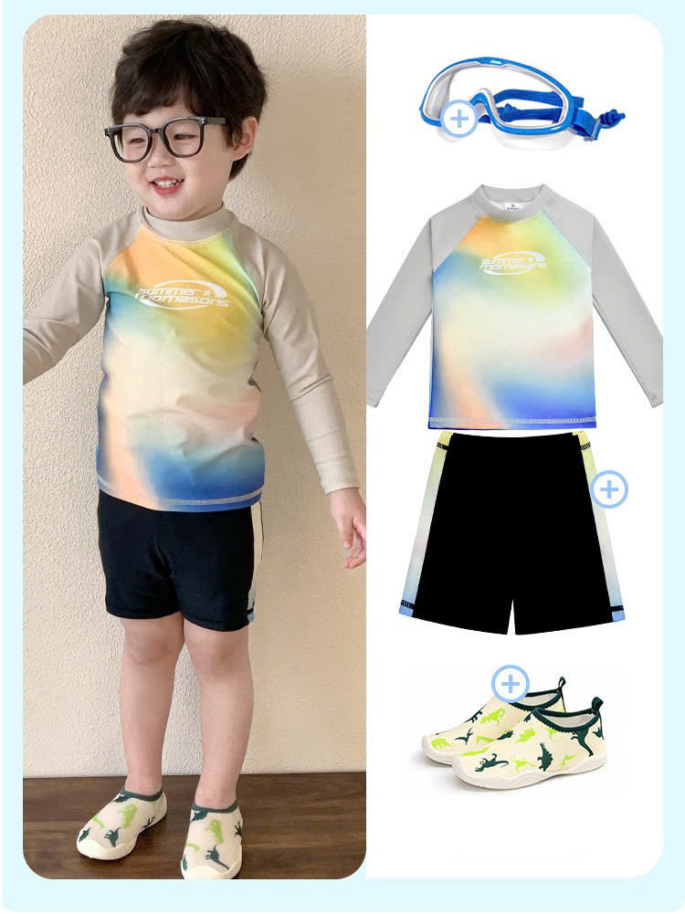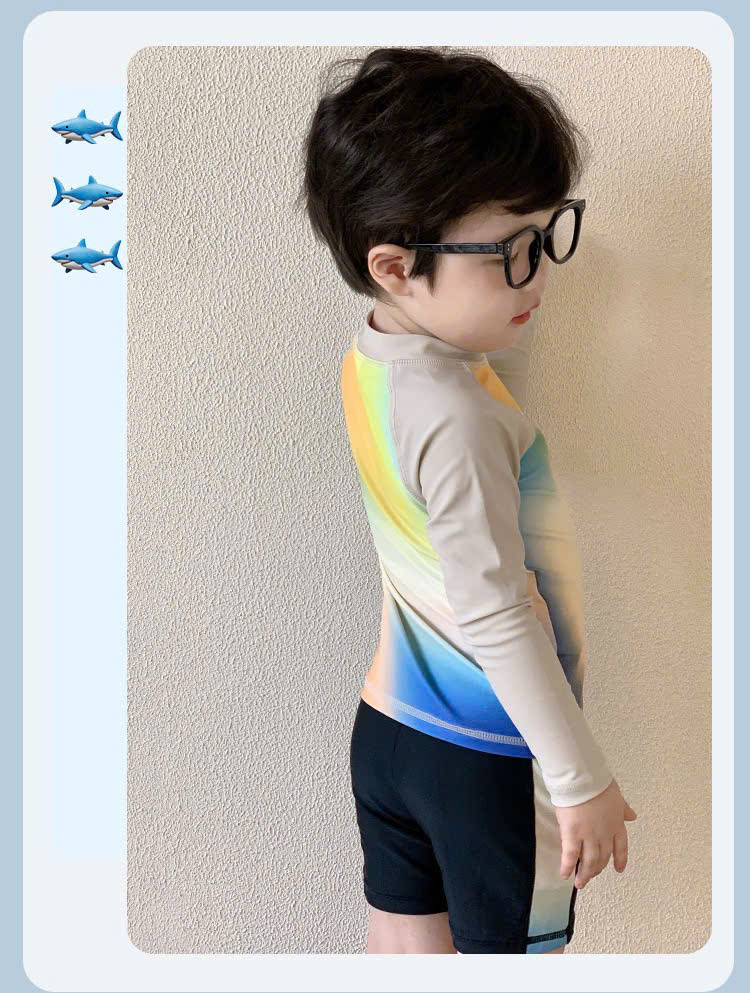 Bộ bơi bé trai chống nắng UPF50+, màu trắng tay vàng, dài tay, Paradise, YUKE