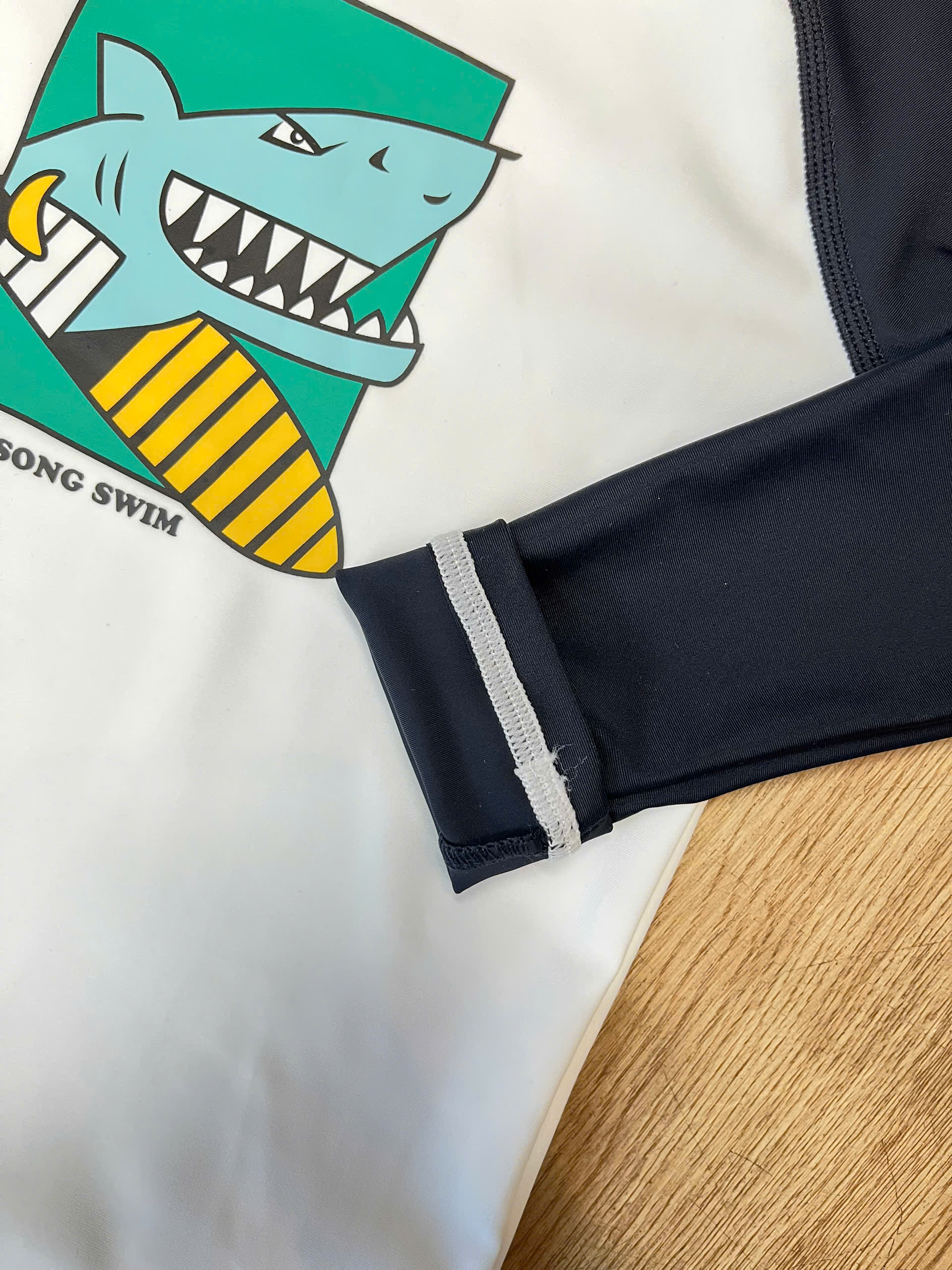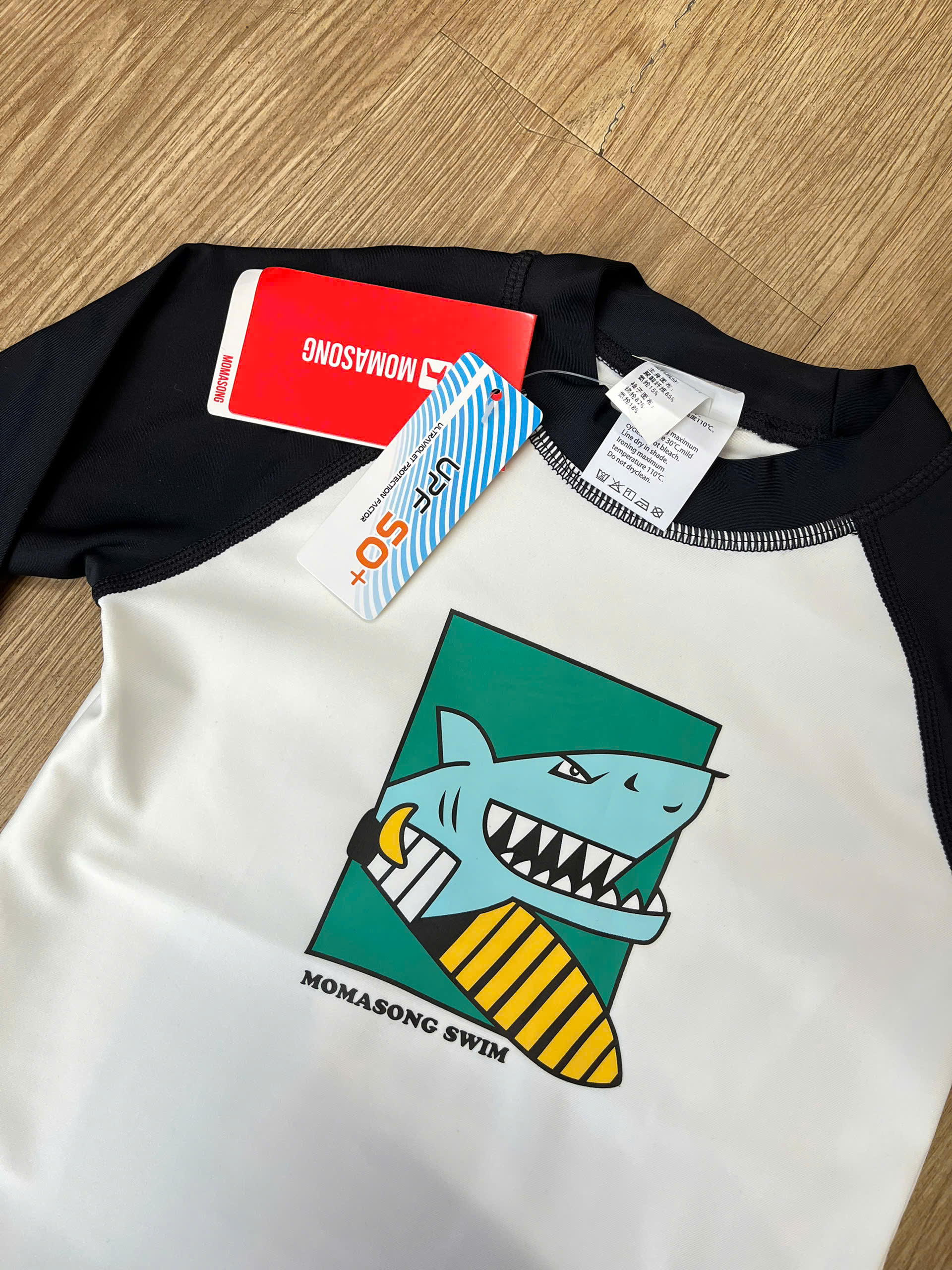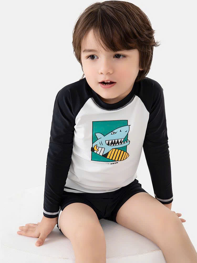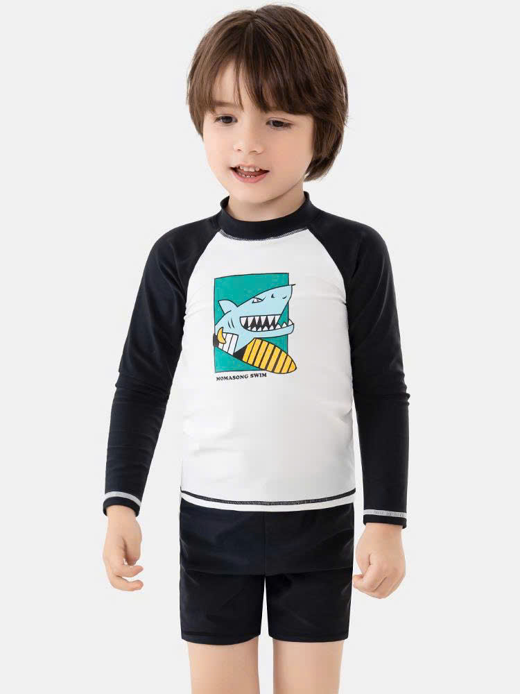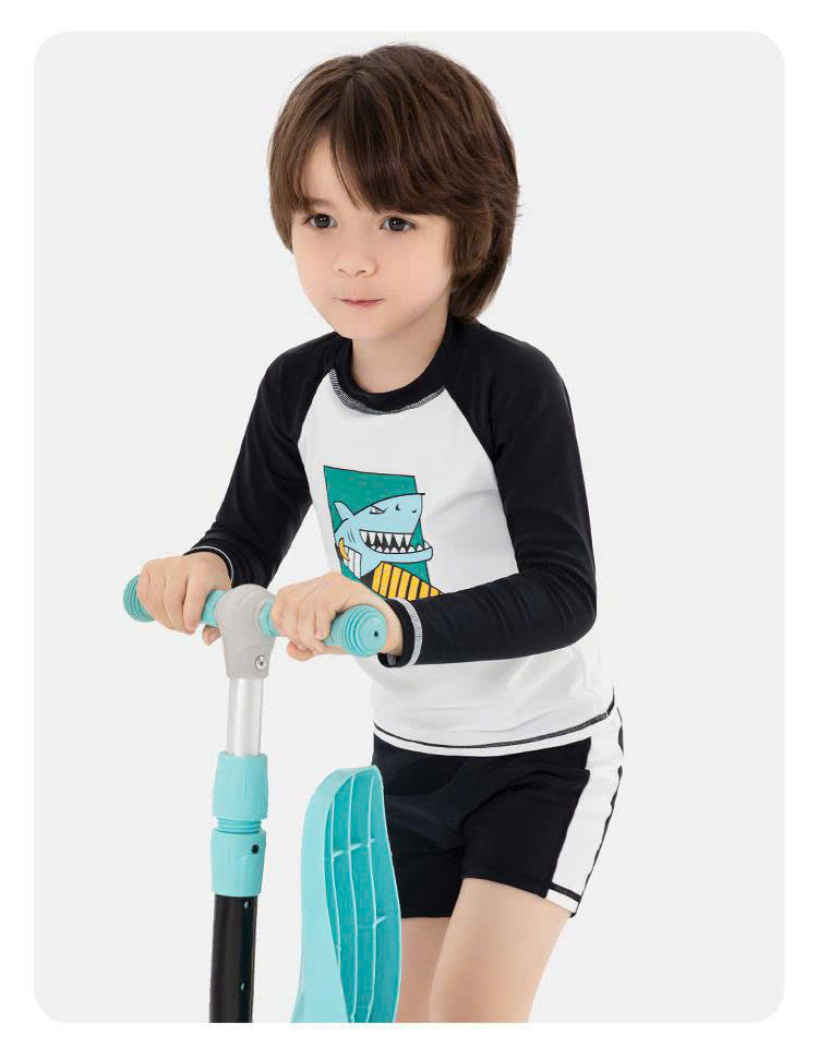 Bộ bơi dài tay, trắng tay đen, cá mập, vải chống nắng UPF50+ Momasong (Korea)
