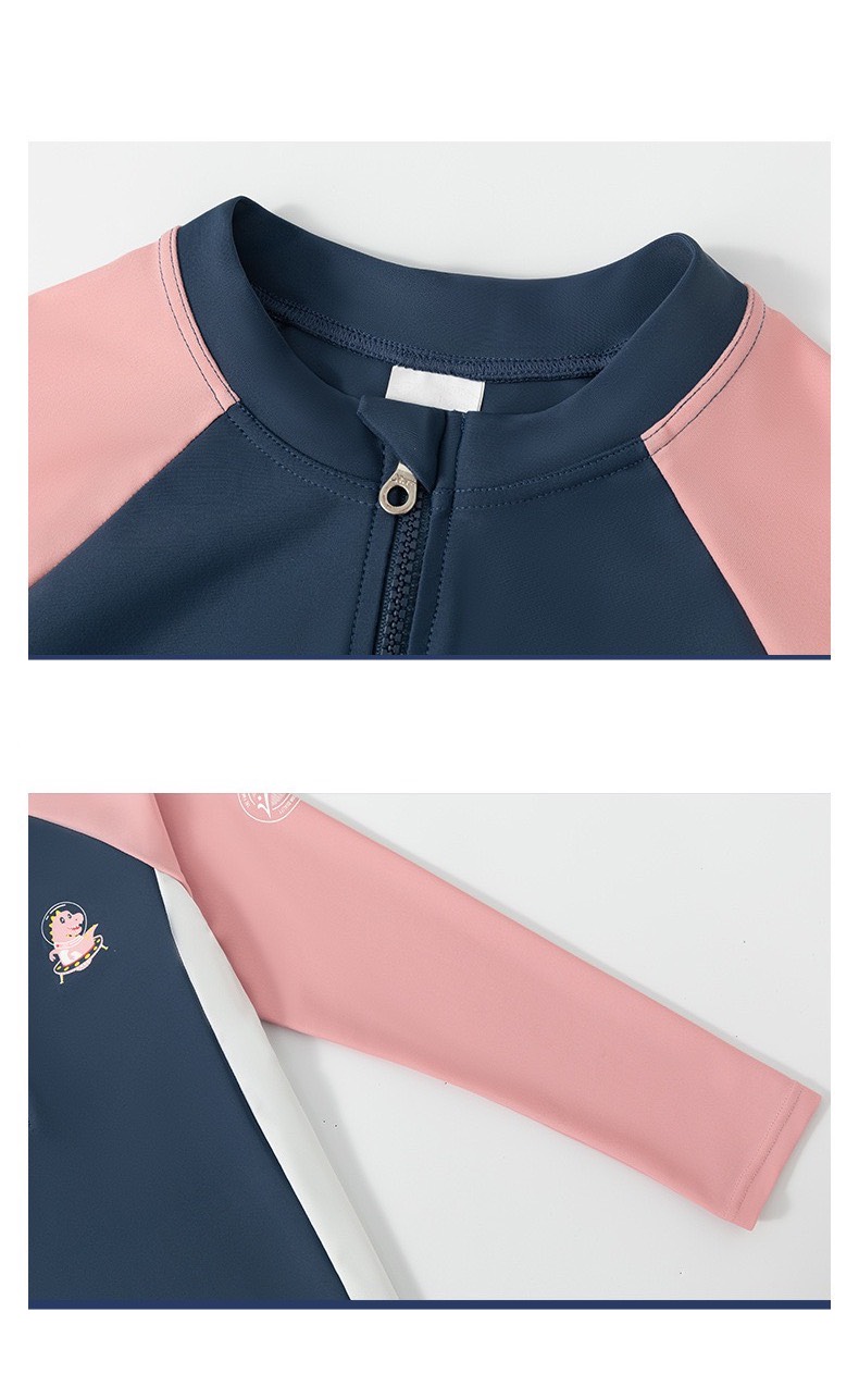 Bộ bơi bé gái dài tay, vải chống nắng UPF 50+ Momasong (Korea), hồng trắng
