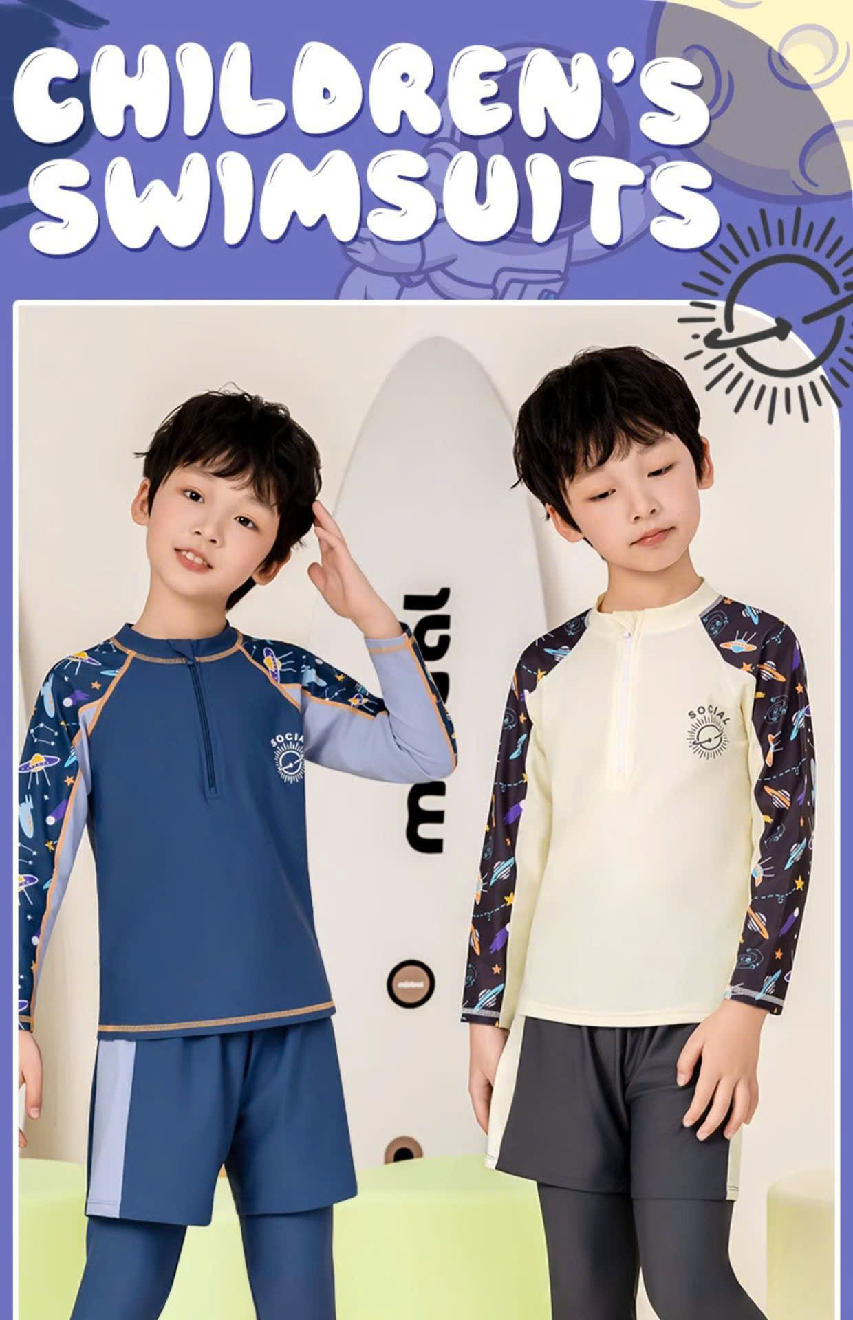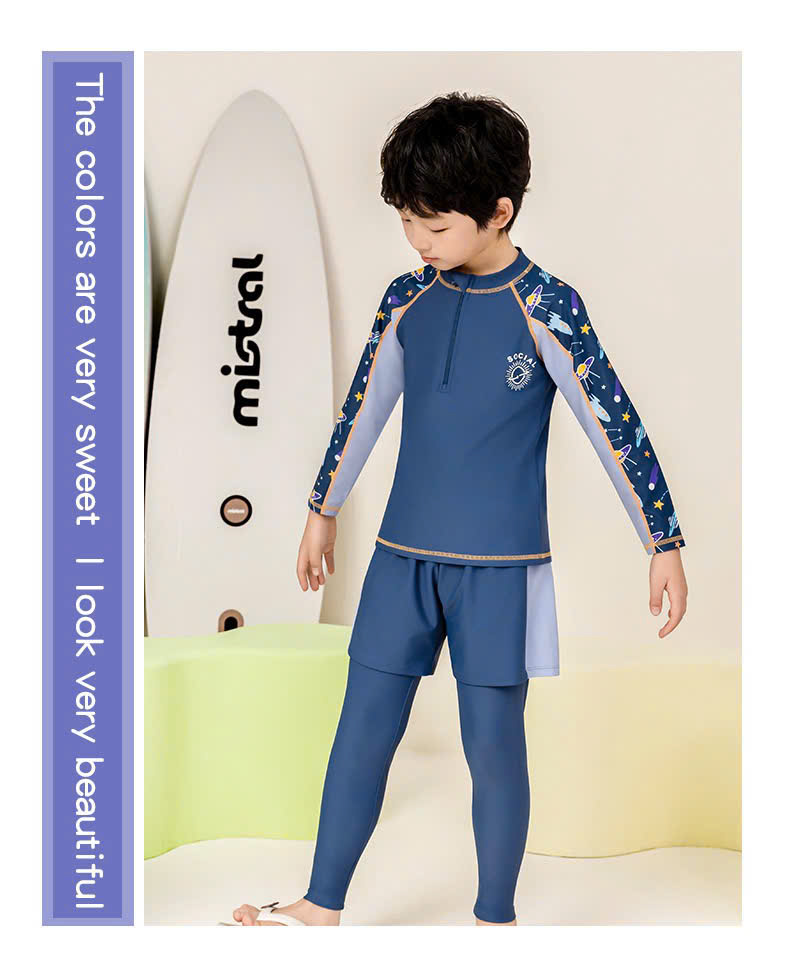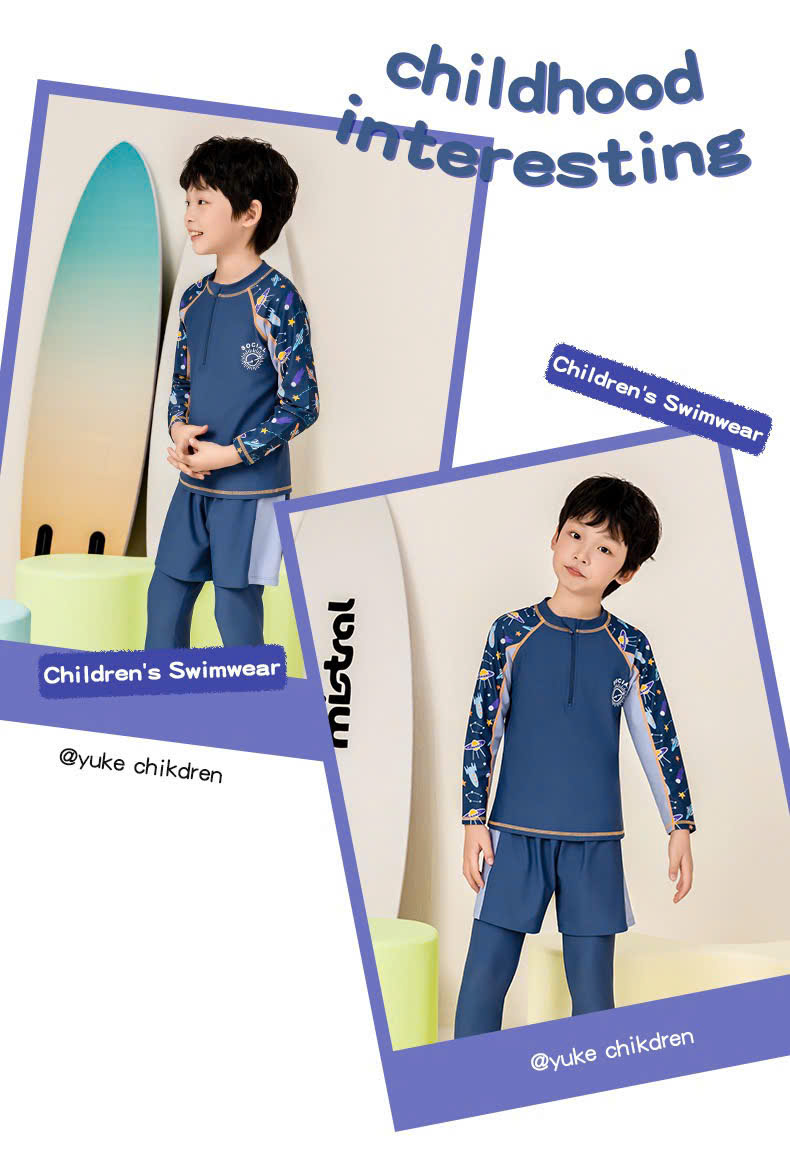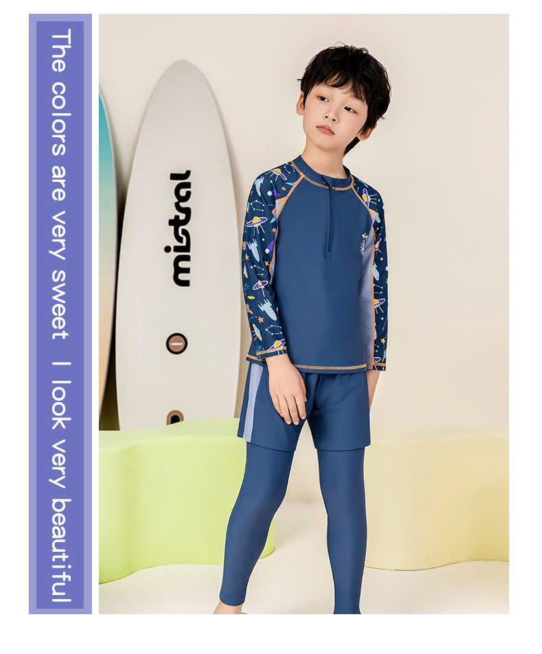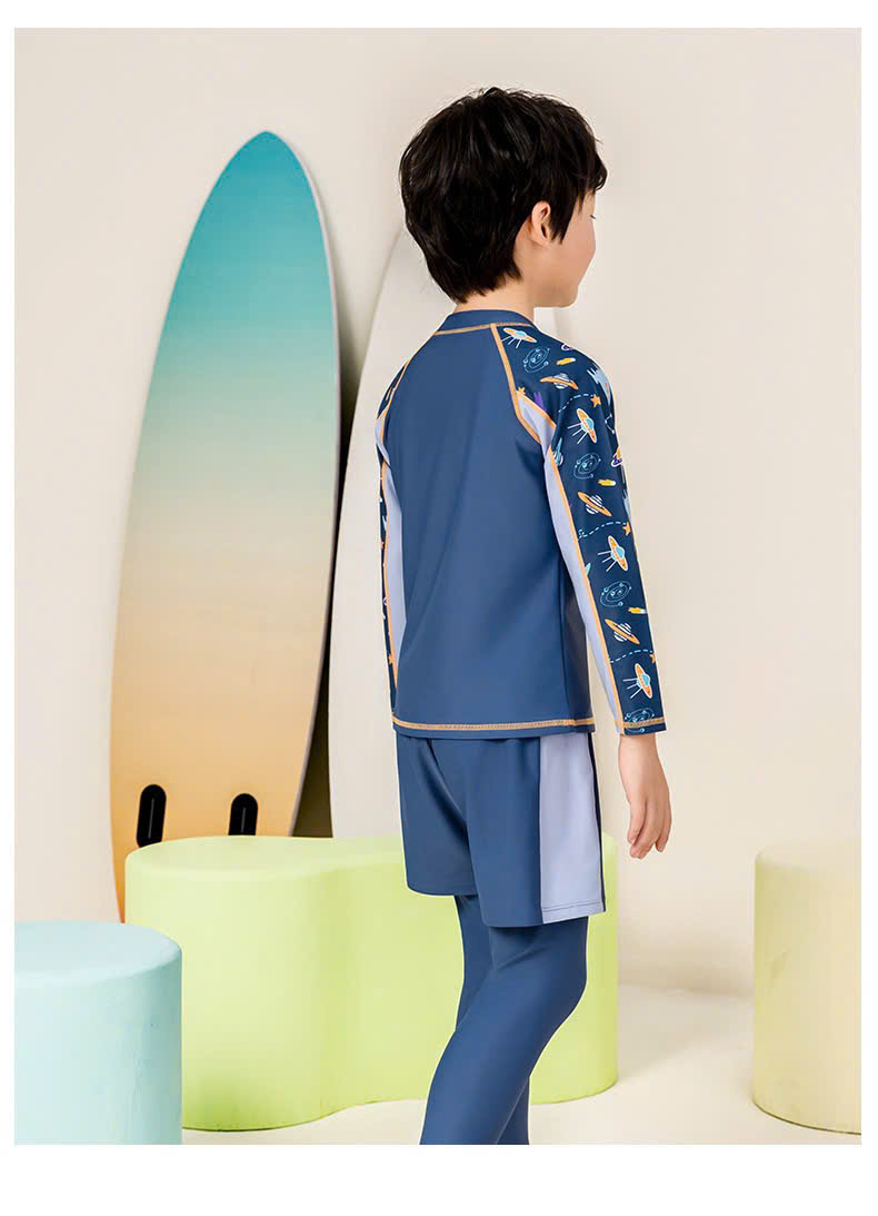 Bộ bơi bé trai chống nắng UPF50+, màu xanh, dài tay, Paradise, YUKE