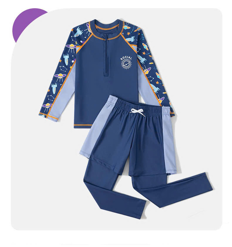 Bộ bơi dài vải chống nắng UPF 50+, dáng quần 2 lớp, màu xanh, Yuke