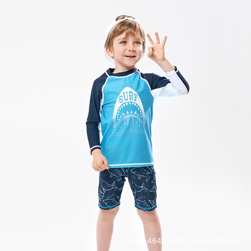 Bộ bơi bé trai chống nắng UPF50+, màu xanh, dài tay, Paradise, YUKE