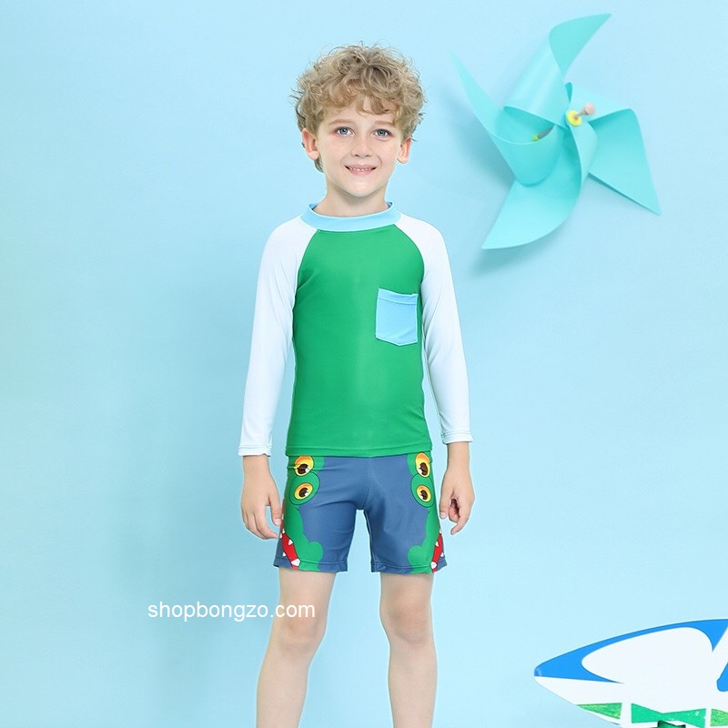 Bộ bơi bé trai chống nắng UPF50+, màu xanh, dài tay, Paradise, YUKE