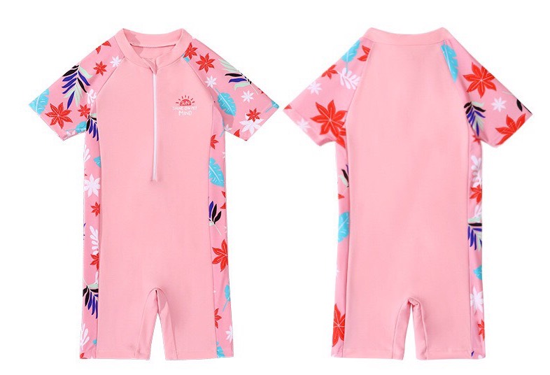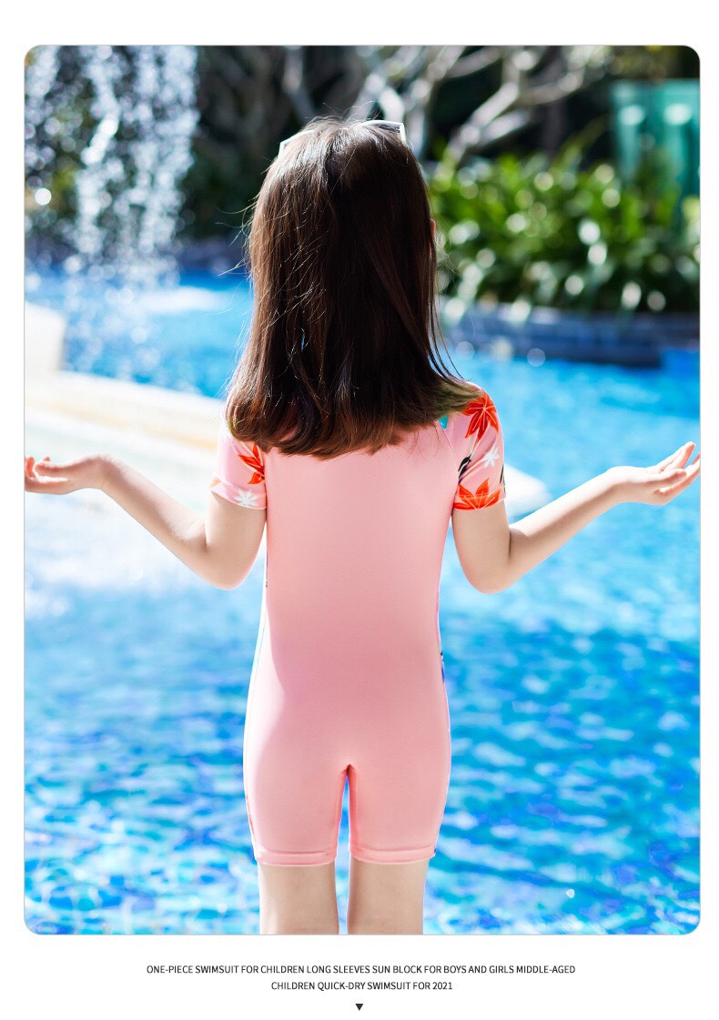 Bộ bơi bé gái dài tay, vải chống nắng UPF 50+ Momasong (Korea), hồng trắng
