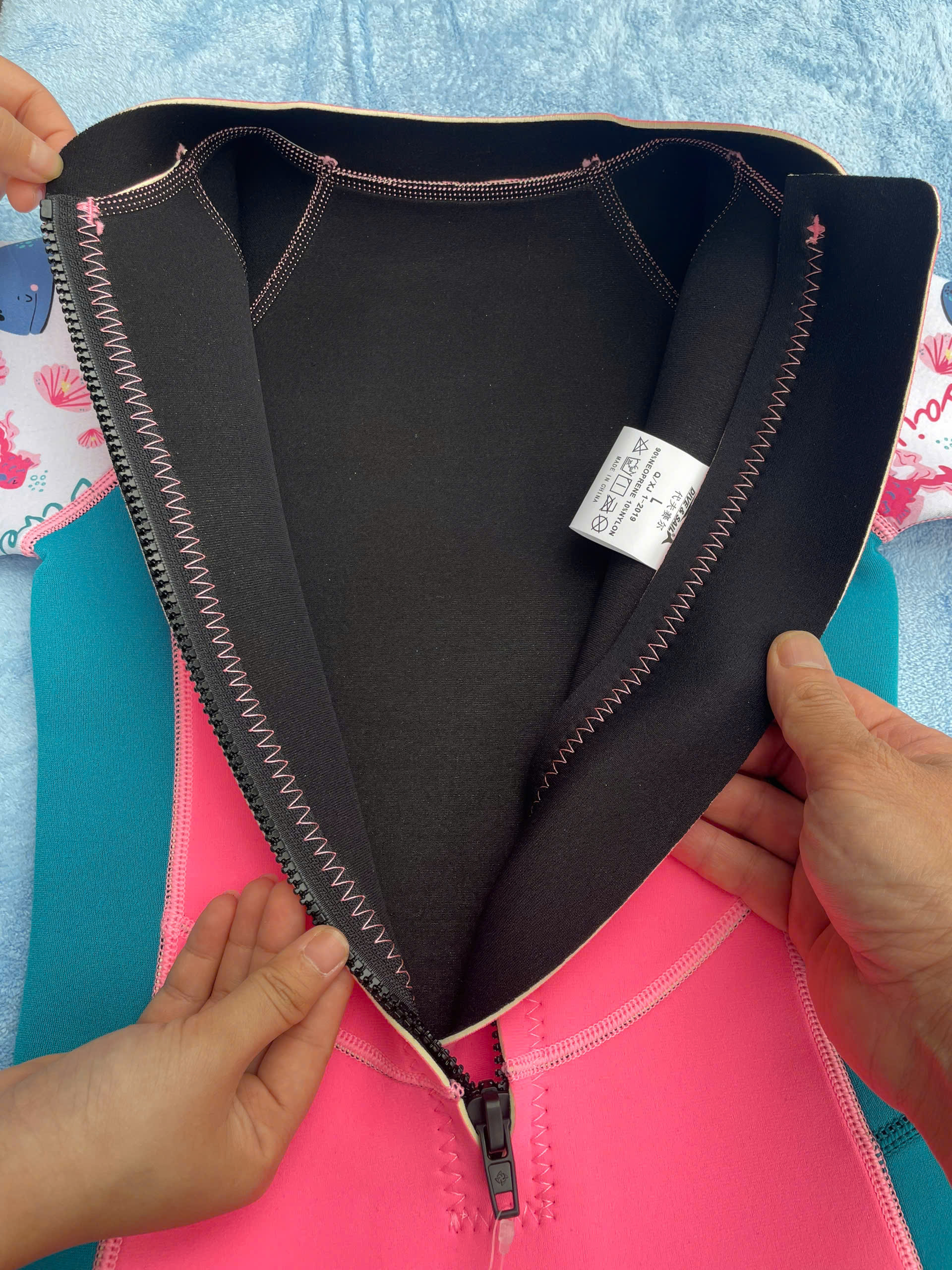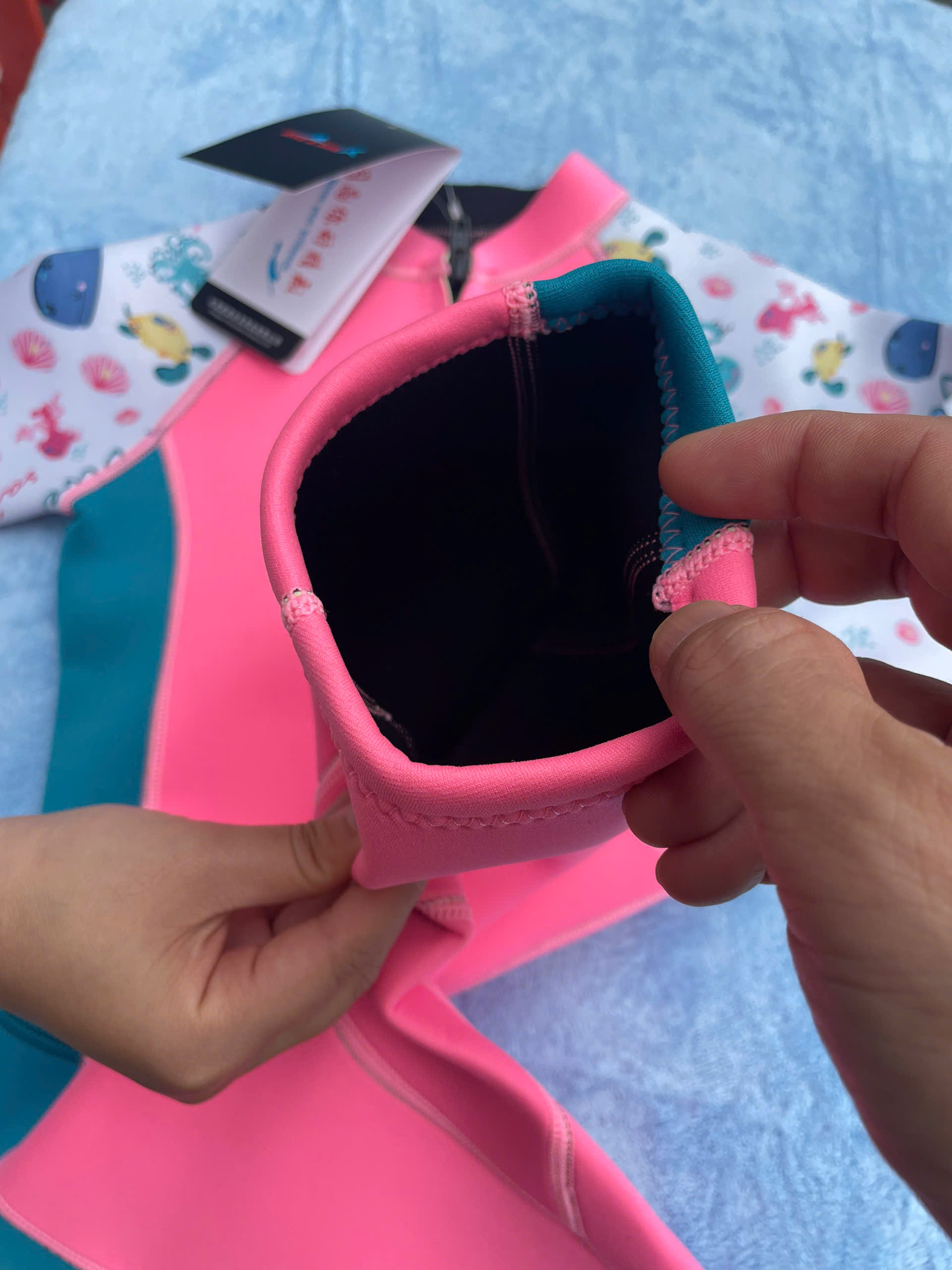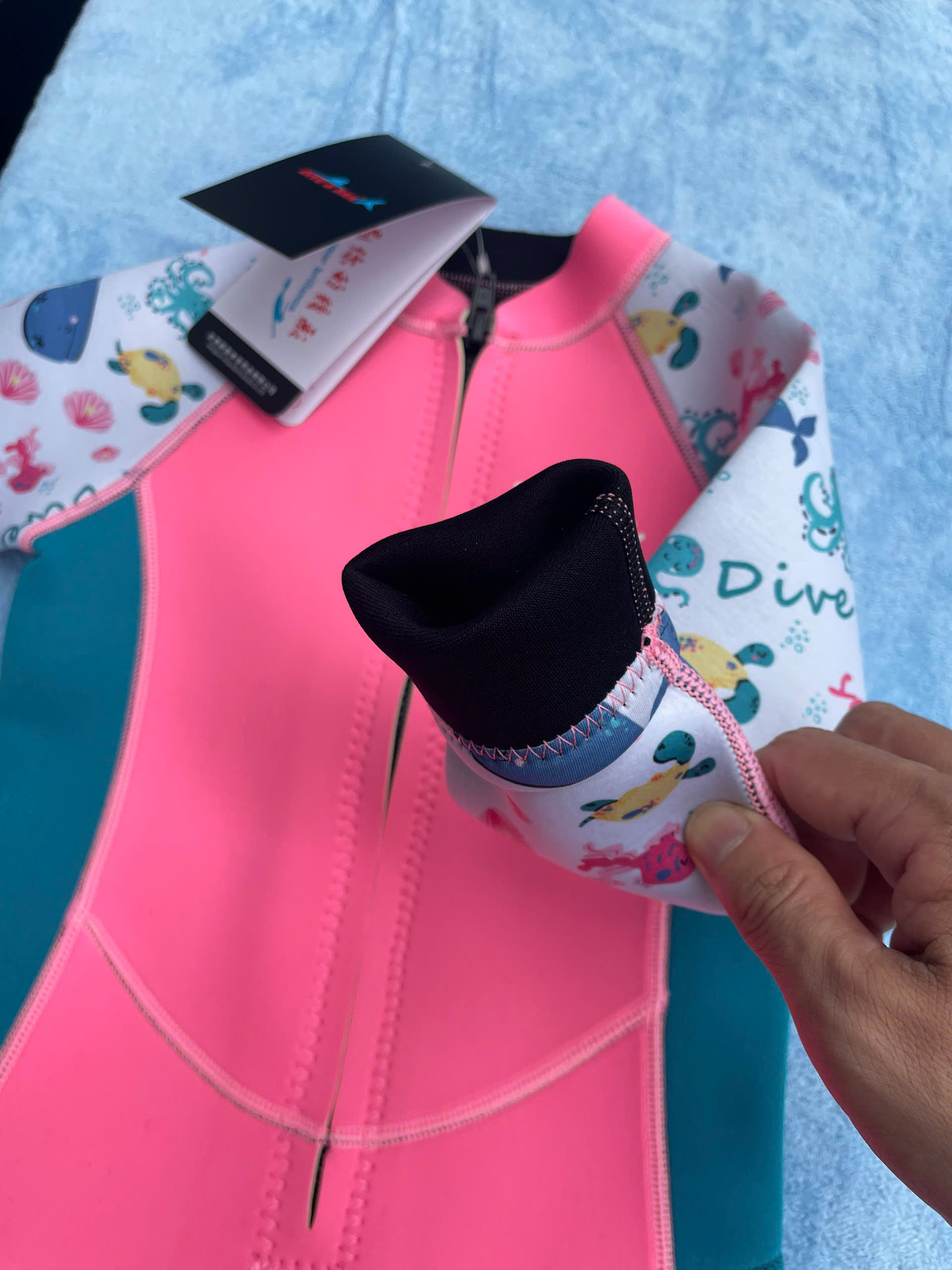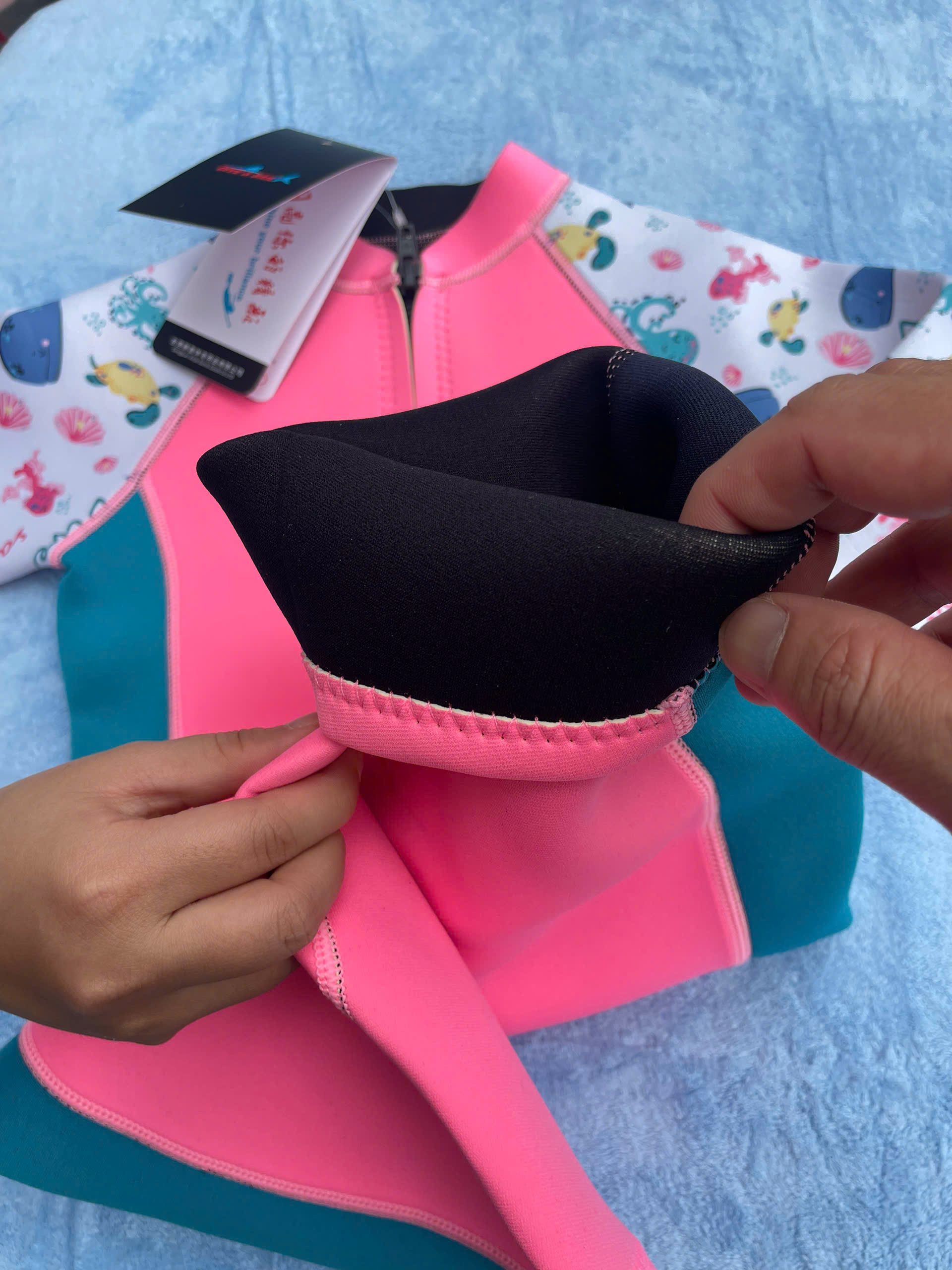 Bộ bơi giữ nhiệt bé gái, dài tay dáng liền, màu hồng tay cá, vải dày 2.5mm, Dive & Sail