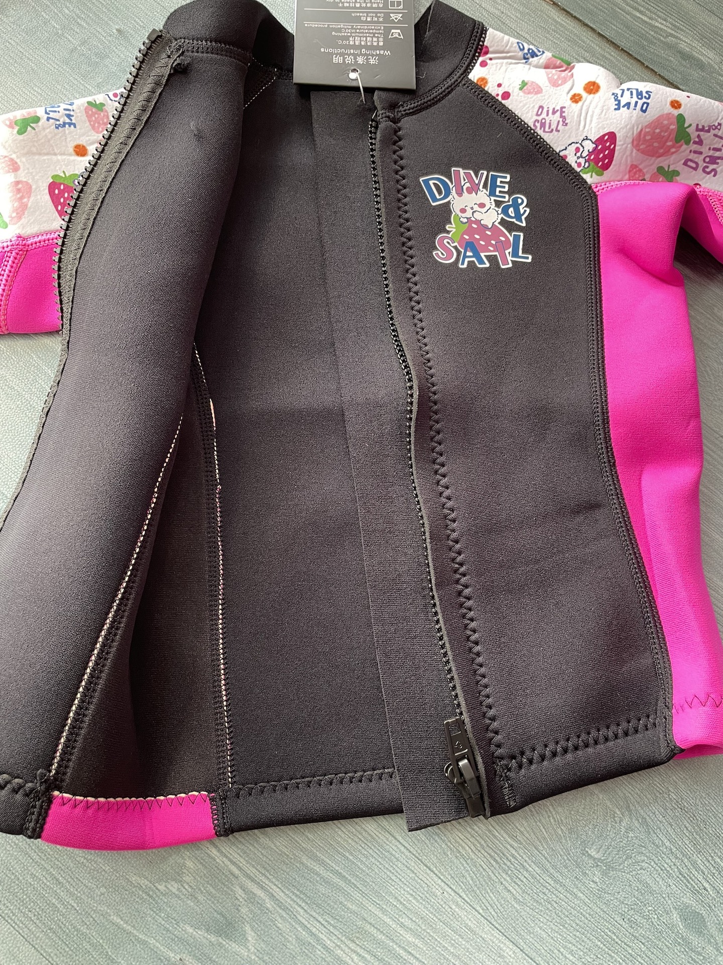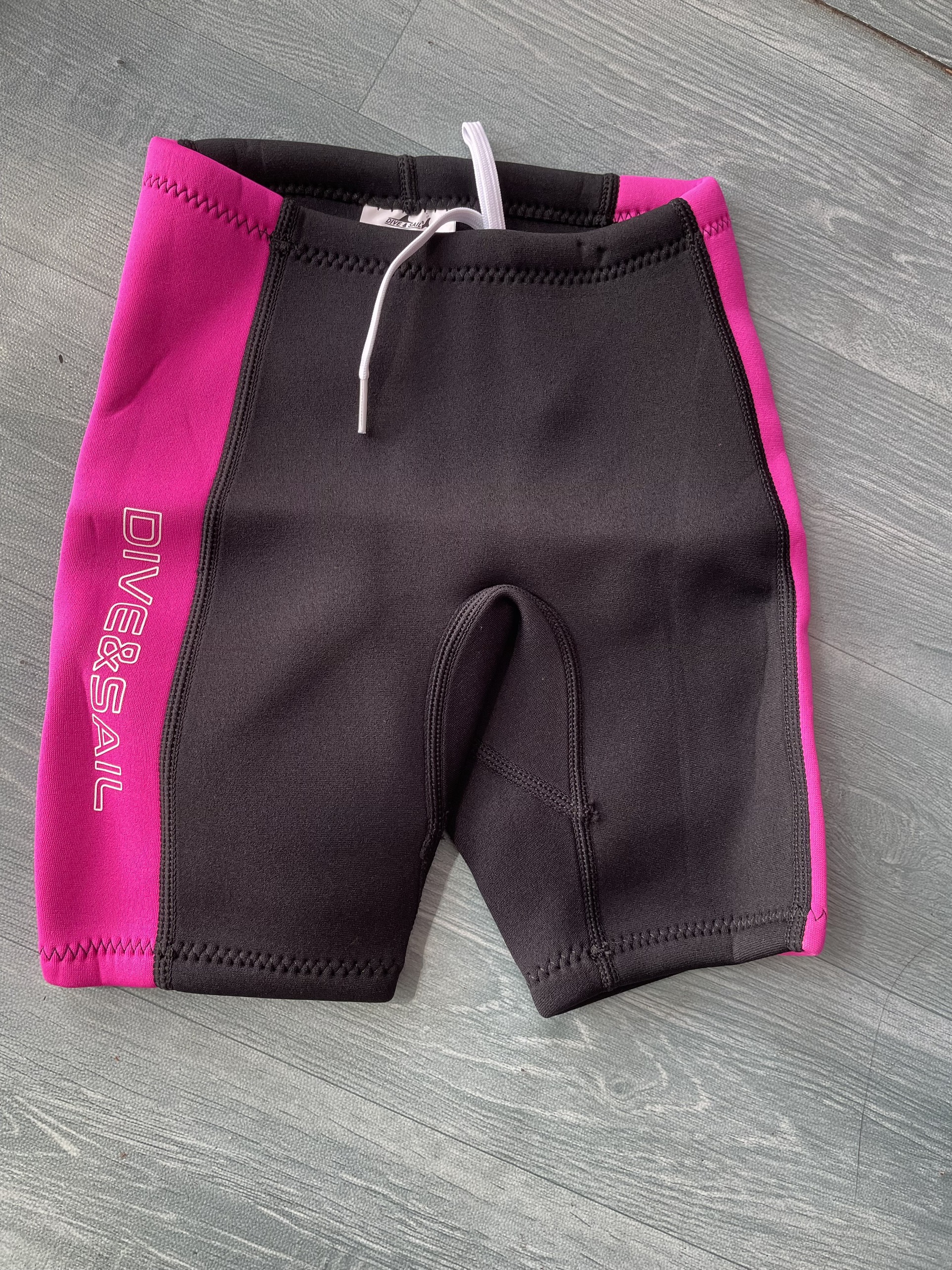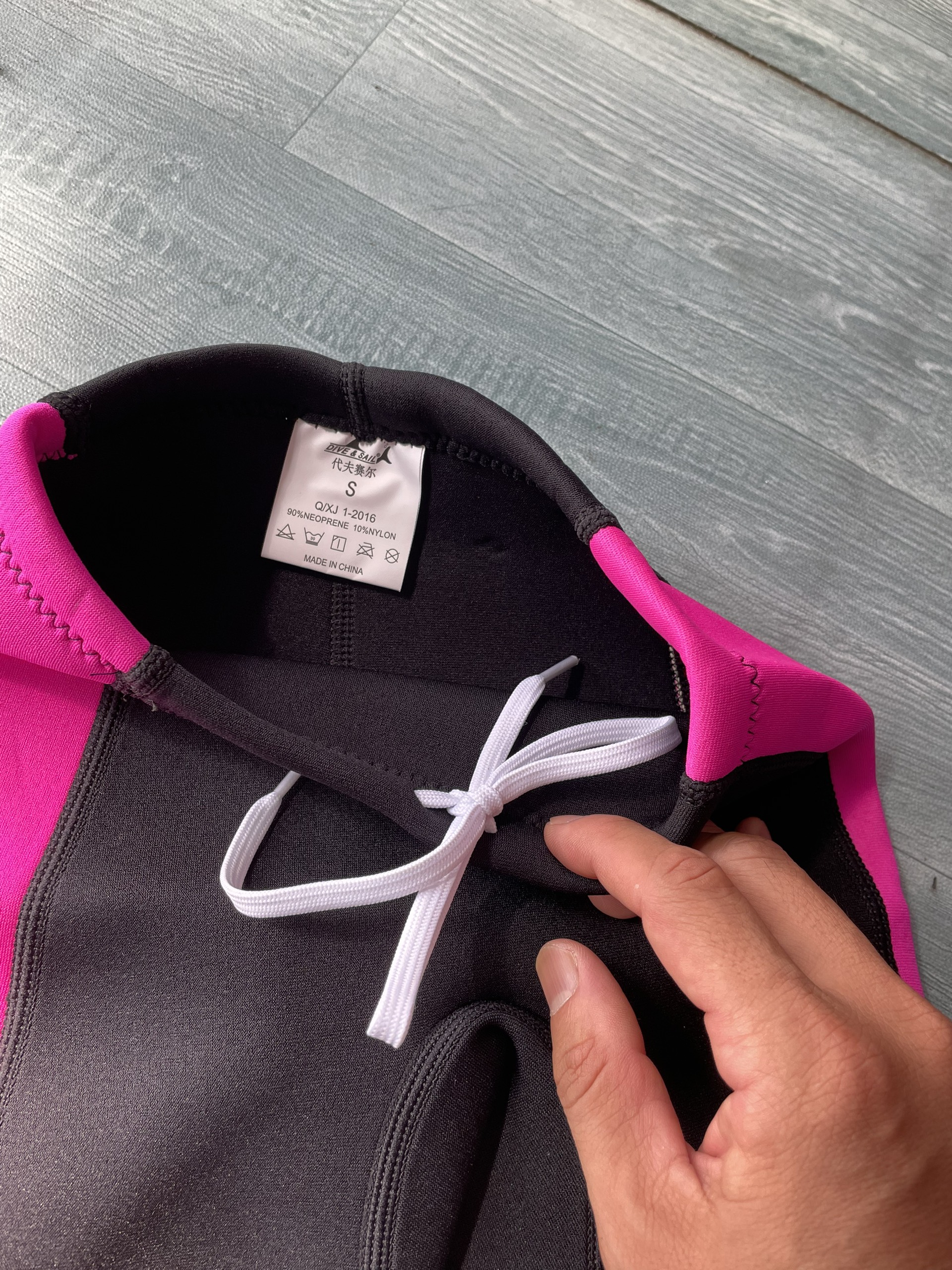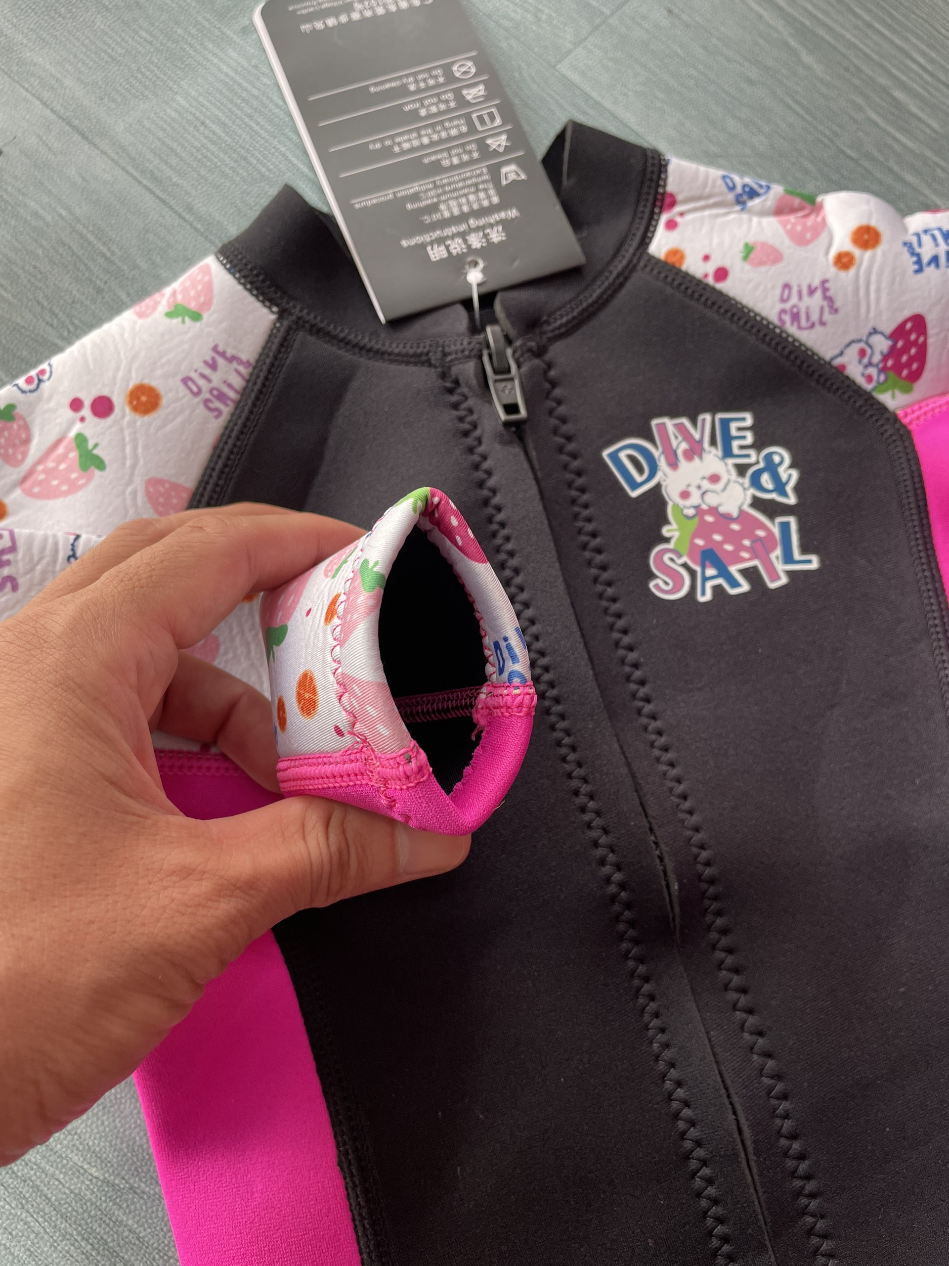 Bộ bơi giữ nhiệt bé gái đen tay hồng, dáng rời, vải dày 2.5mm Dive Sail