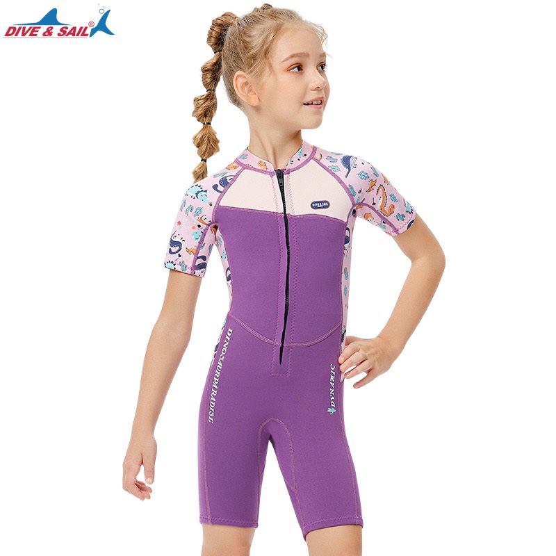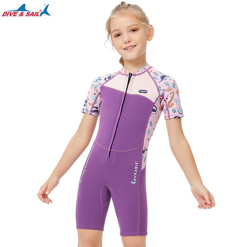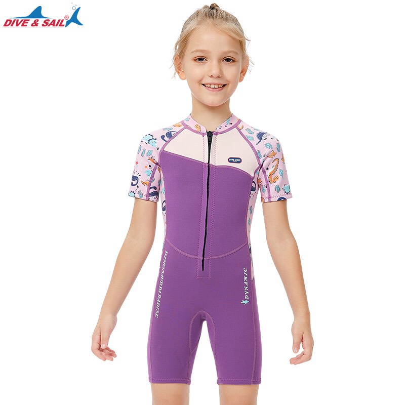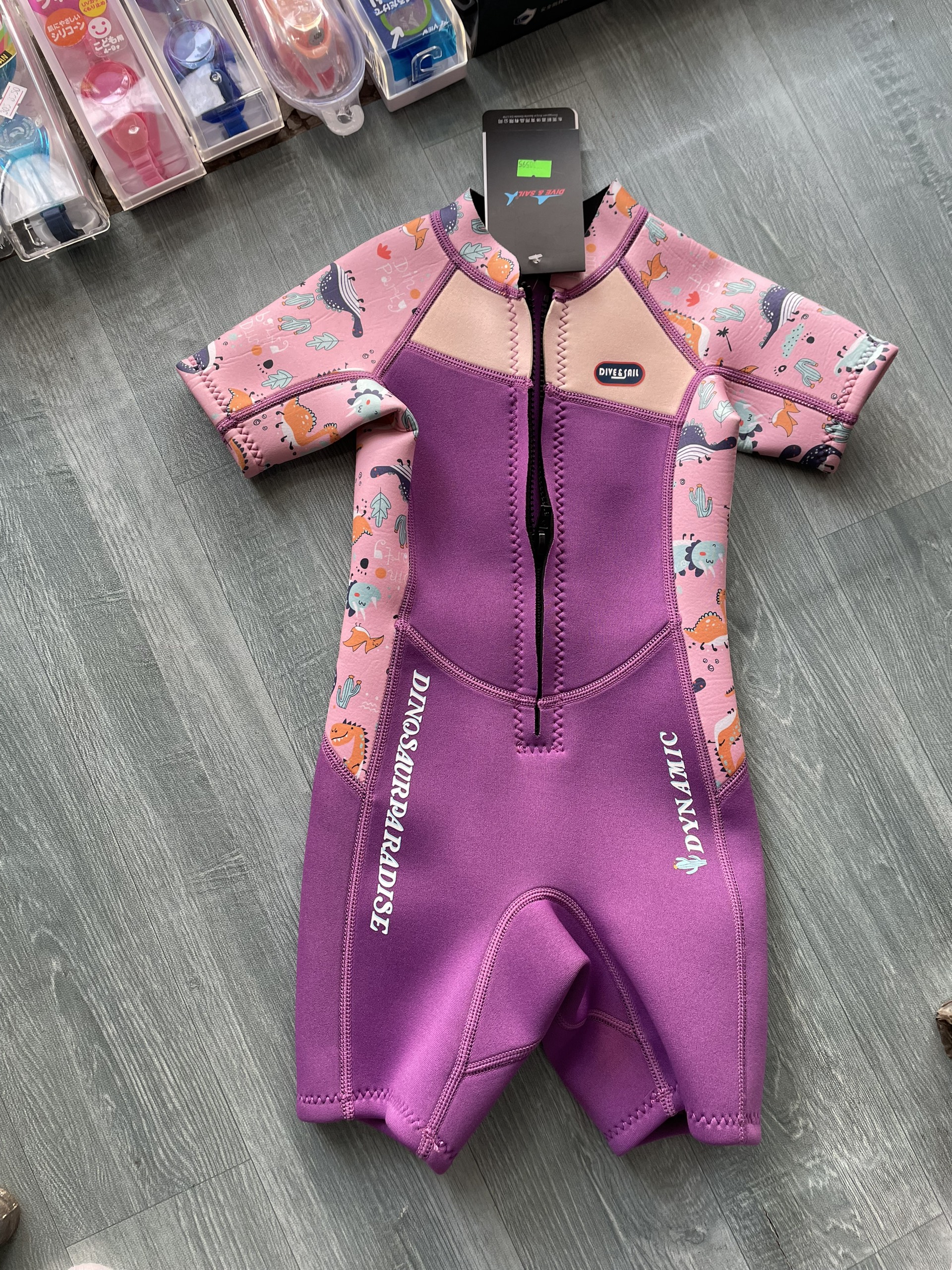 Bộ bơi giữ nhiệt bé gái tím hồng, cộc liền Dive&Sail vải dày 2.0mm (M151668K)