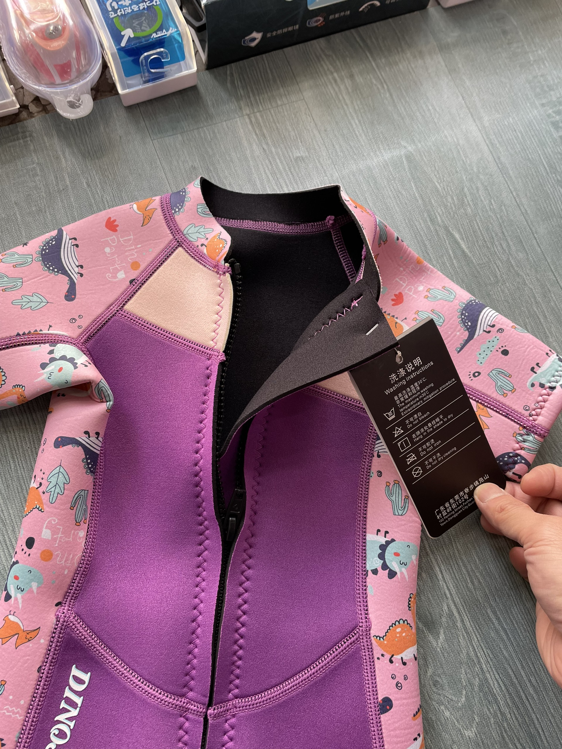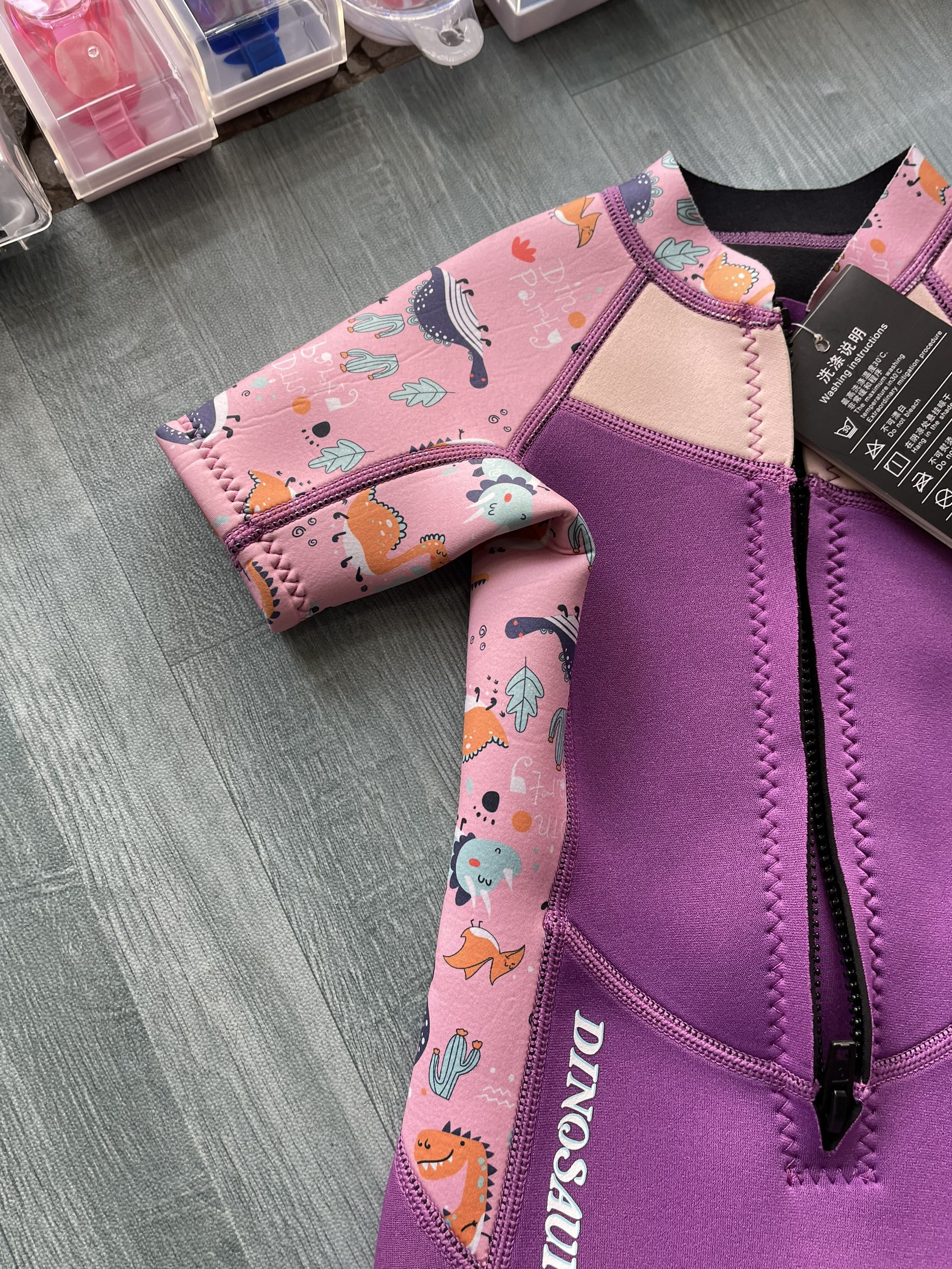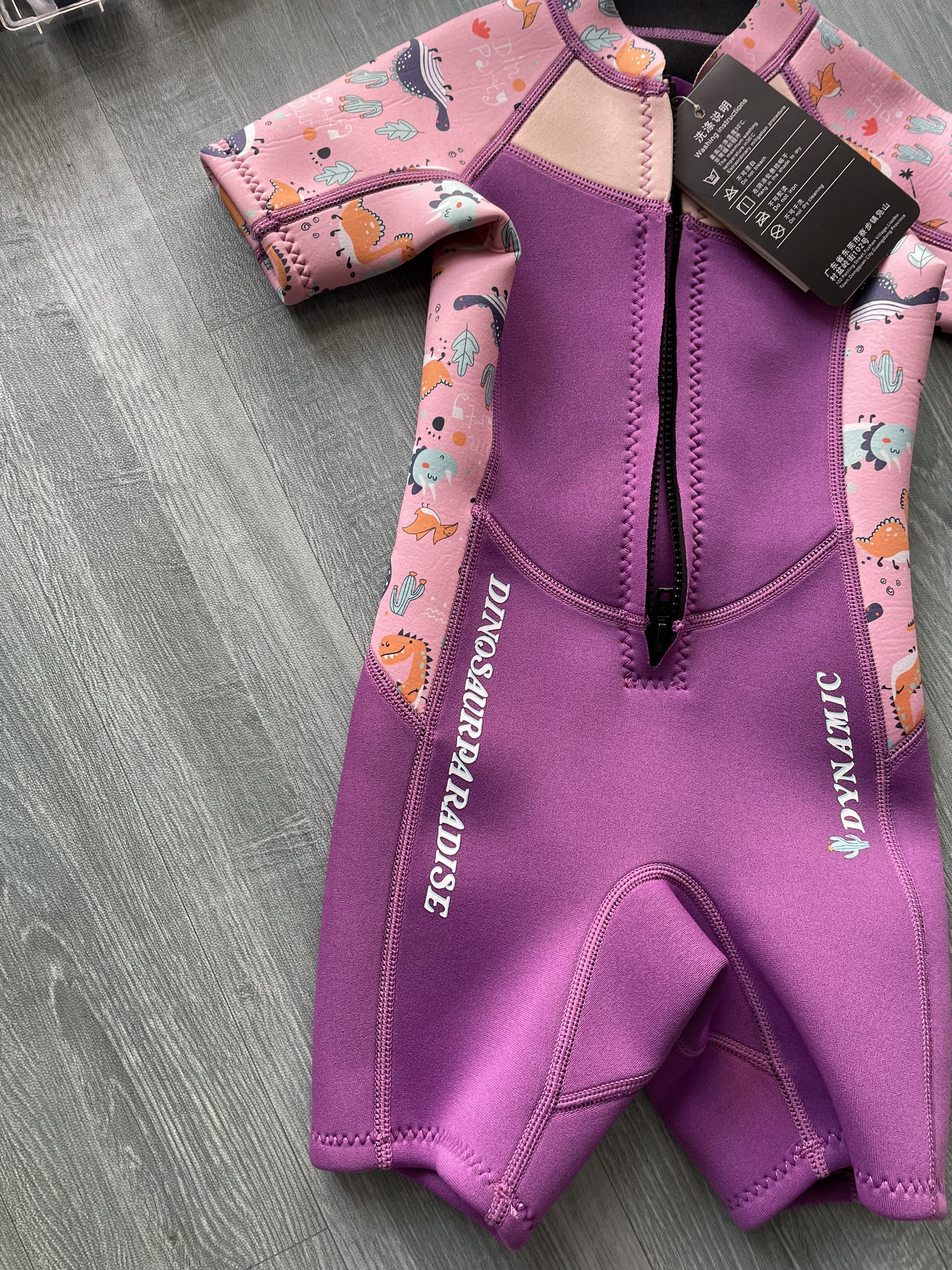 Bộ bơi giữ nhiệt bé gái tím hồng, cộc liền Dive&Sail vải dày 2.0mm (M151668K)