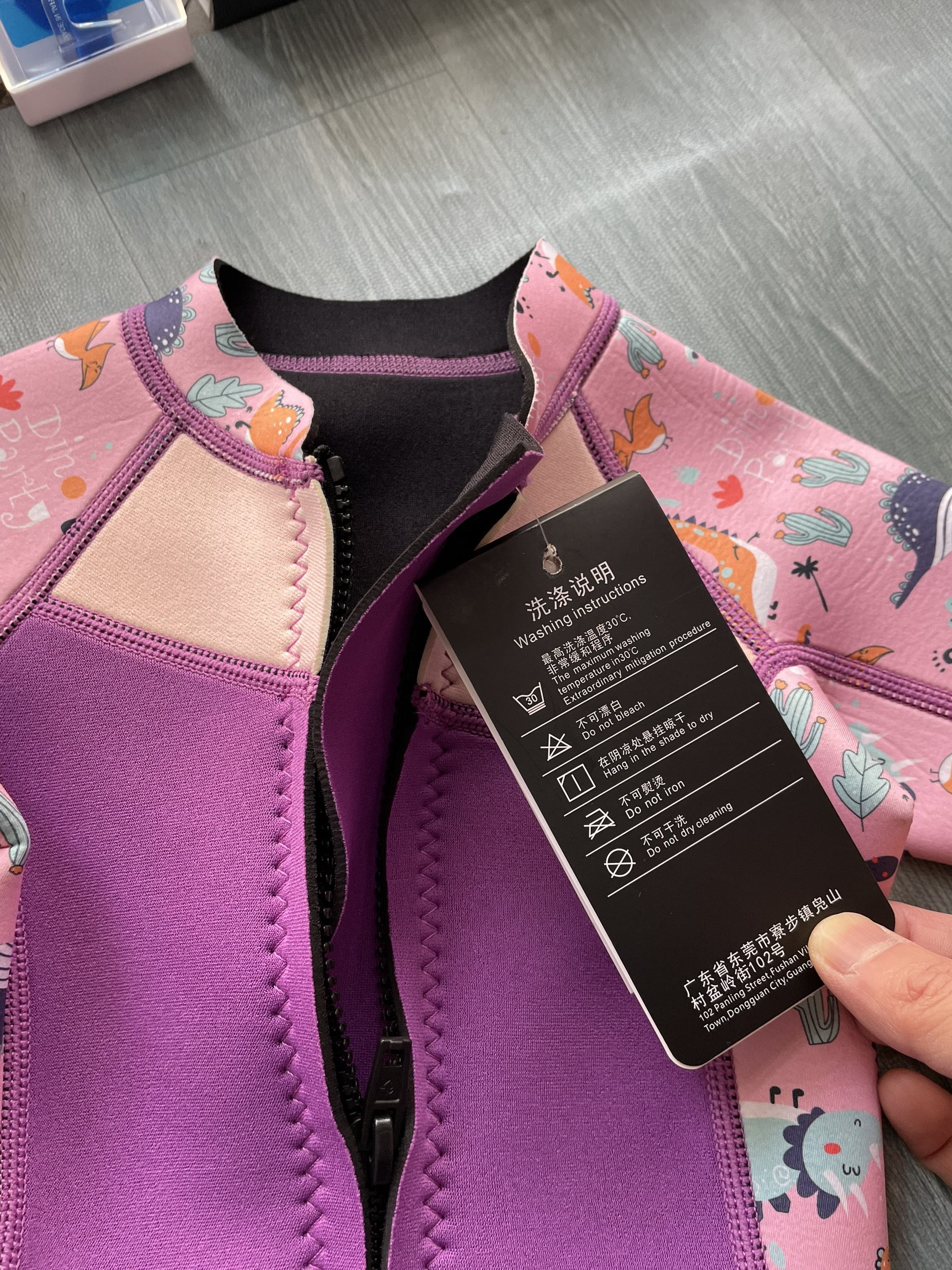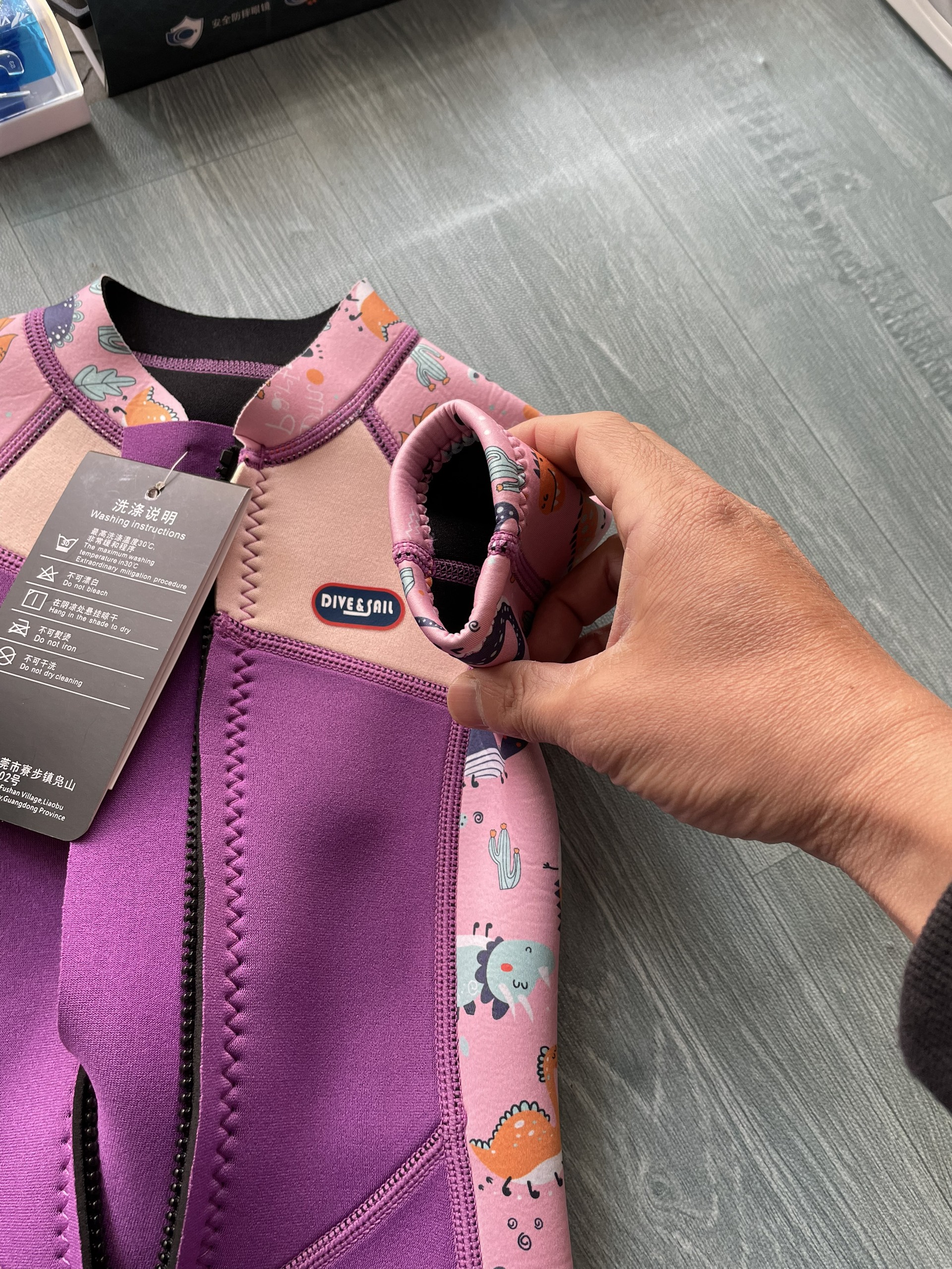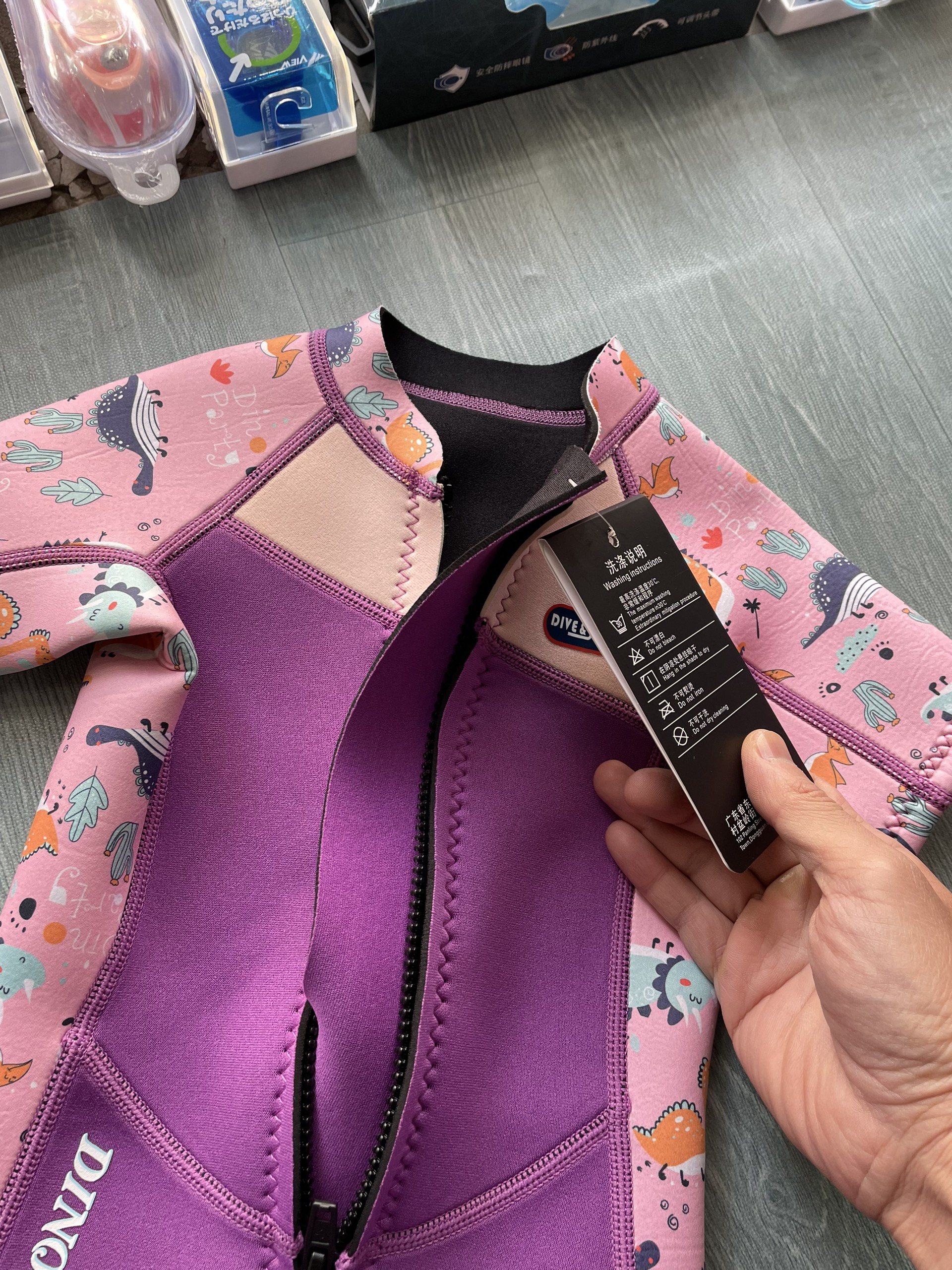 Bộ bơi giữ nhiệt bé gái dài, đen tay hồng, vải dày 2.5mm, Dive & Sail