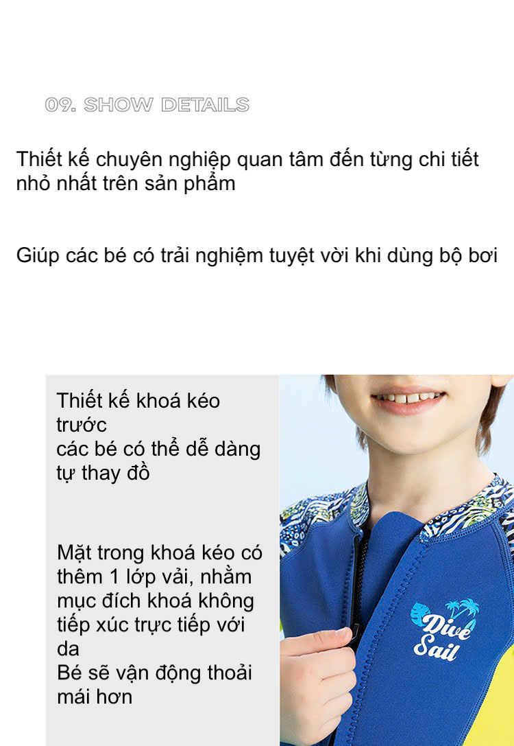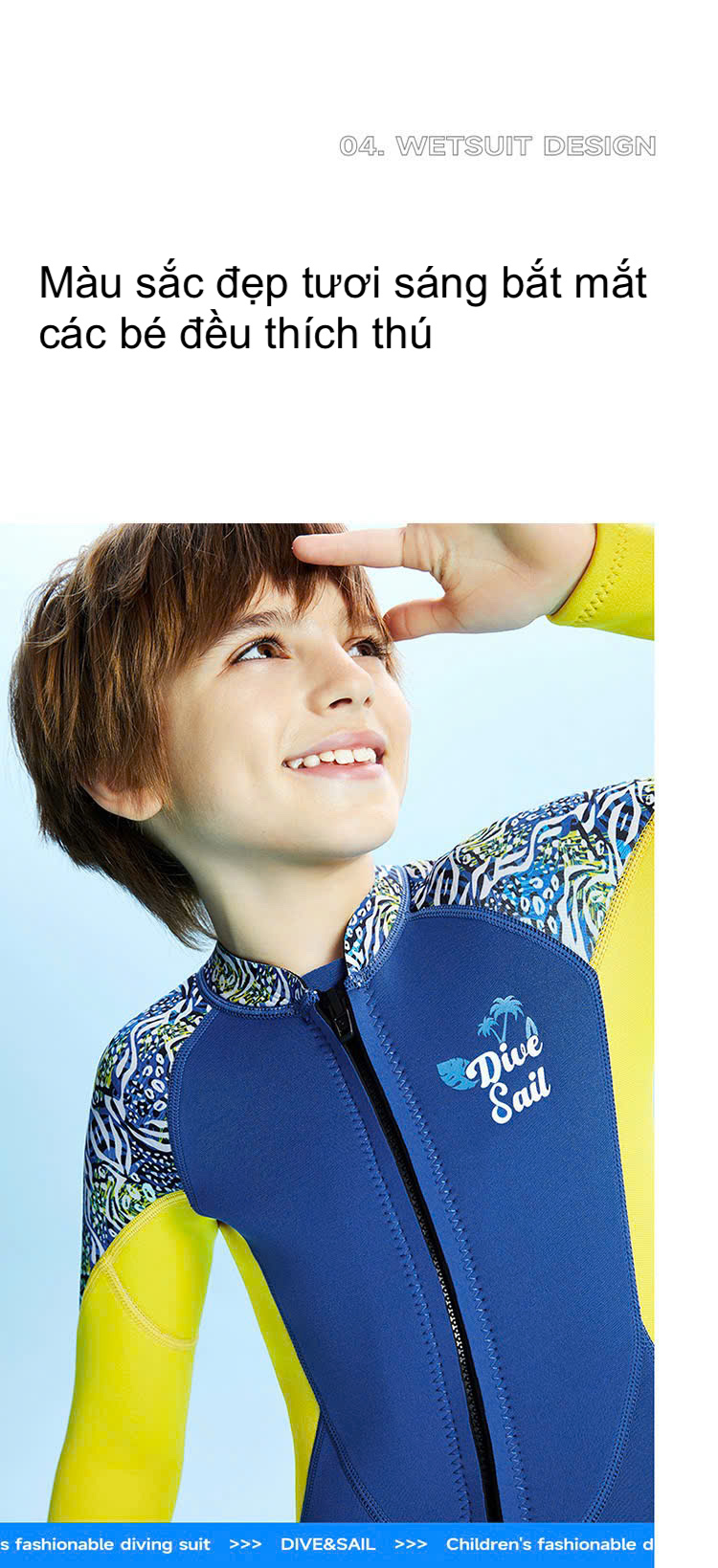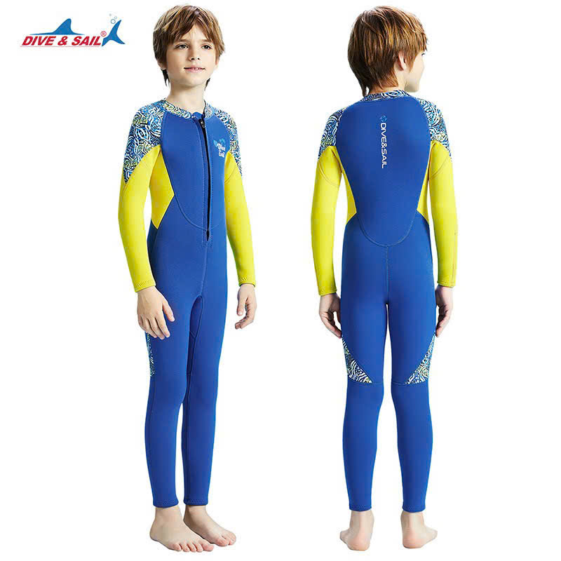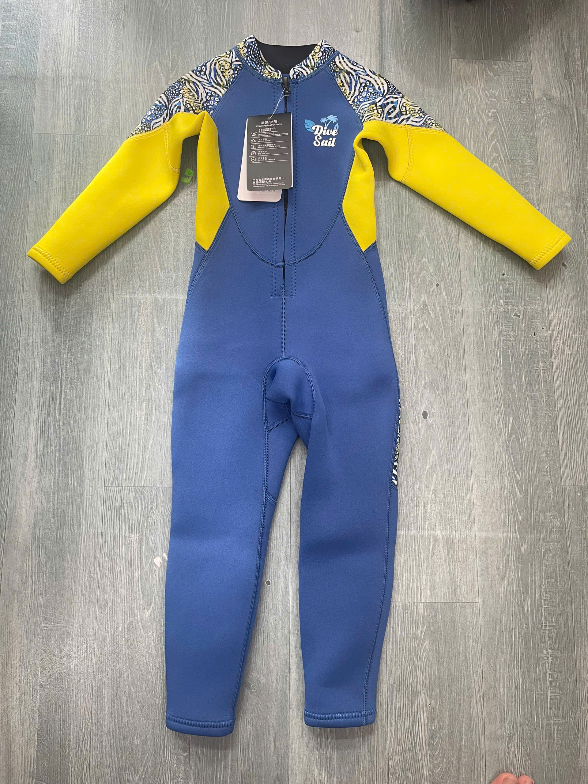Bộ bơi giữ nhiệt bé trai, dài tay màu xanh vàng, vải dày 2.5mm, Dive Sail