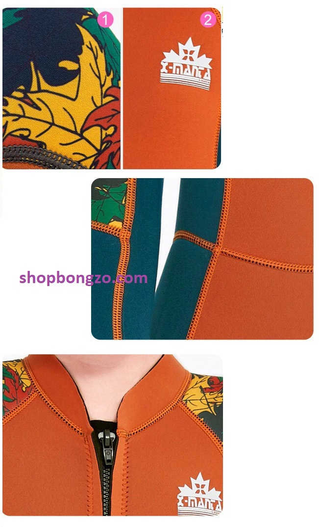 - Chất liệu vải gồm 3 tầng : lớp ngoài cùng vải nylon đàn hồi, lớp giữa là neoprene 2mm, lớp trong bằng vải nylon đàn hồi màu đen