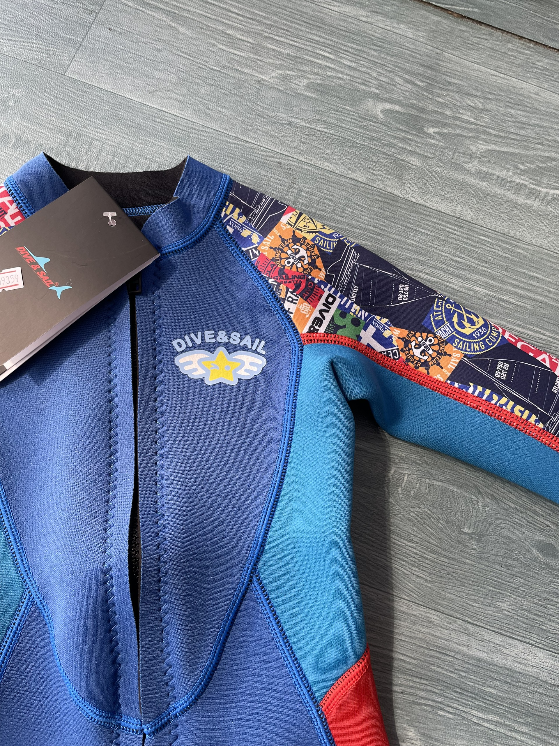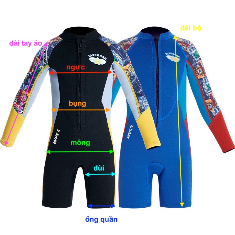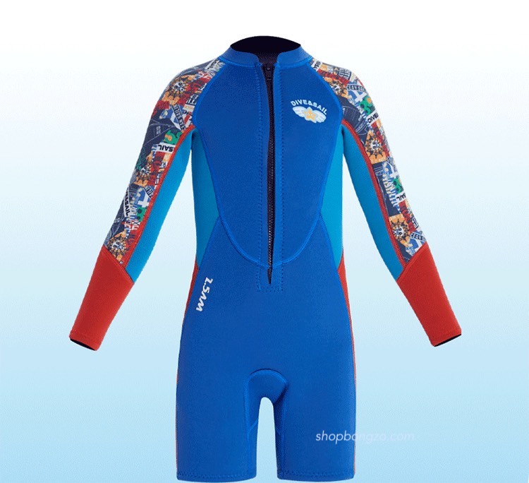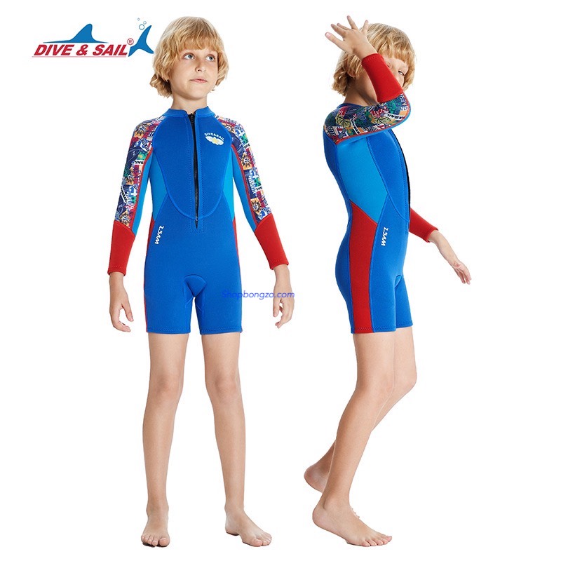 Bộ bơi giữ nhiệt cho bé, xanh dài tay dáng liền, vải dày 2.5mm, Dive & Sail