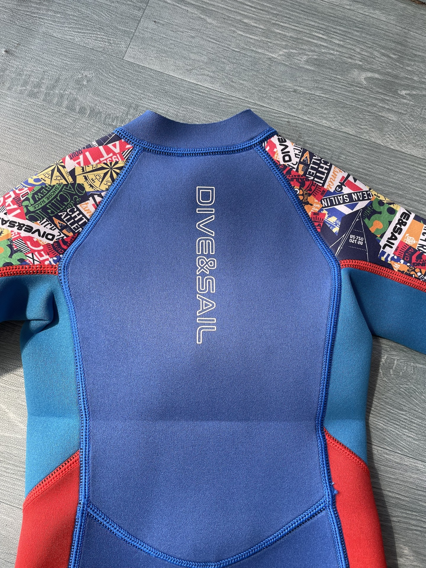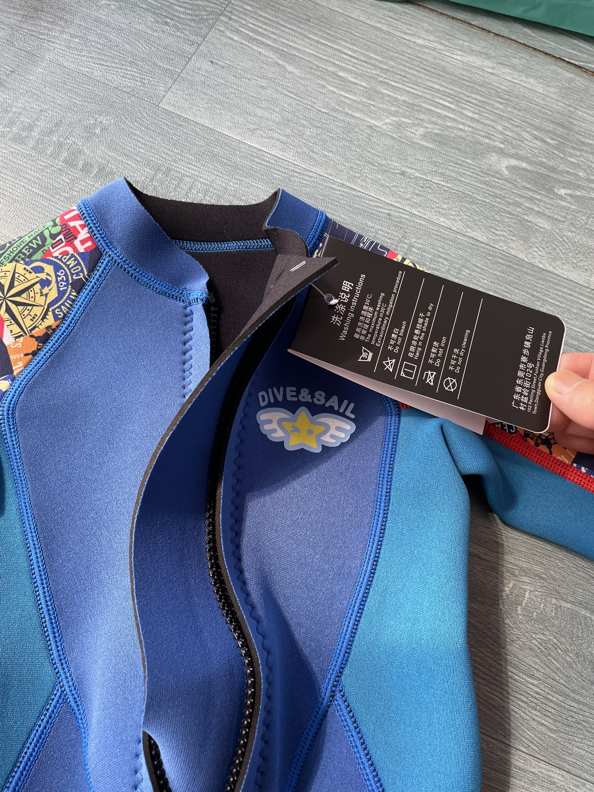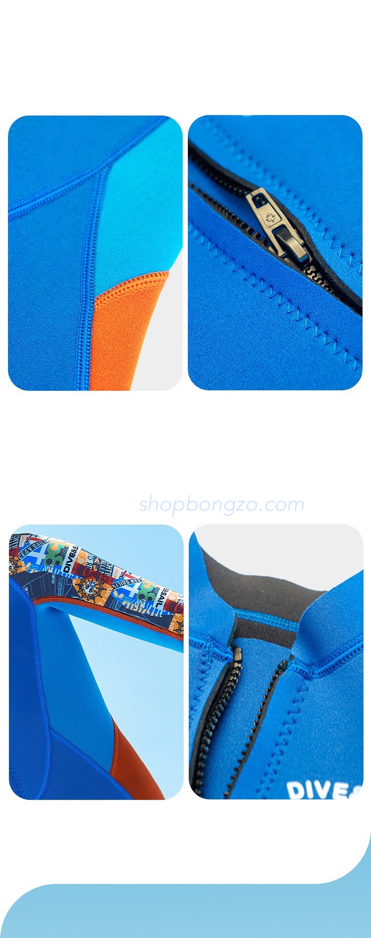 Bộ bơi giữ nhiệt cho bé, xanh dài tay dáng liền, vải dày 2.5mm, Dive & Sail