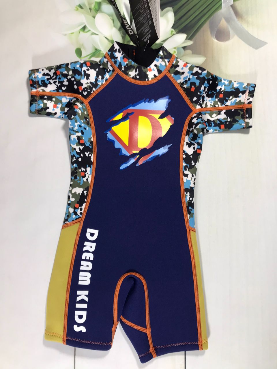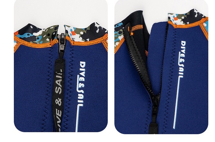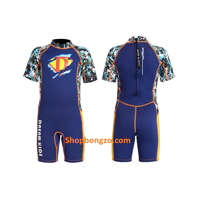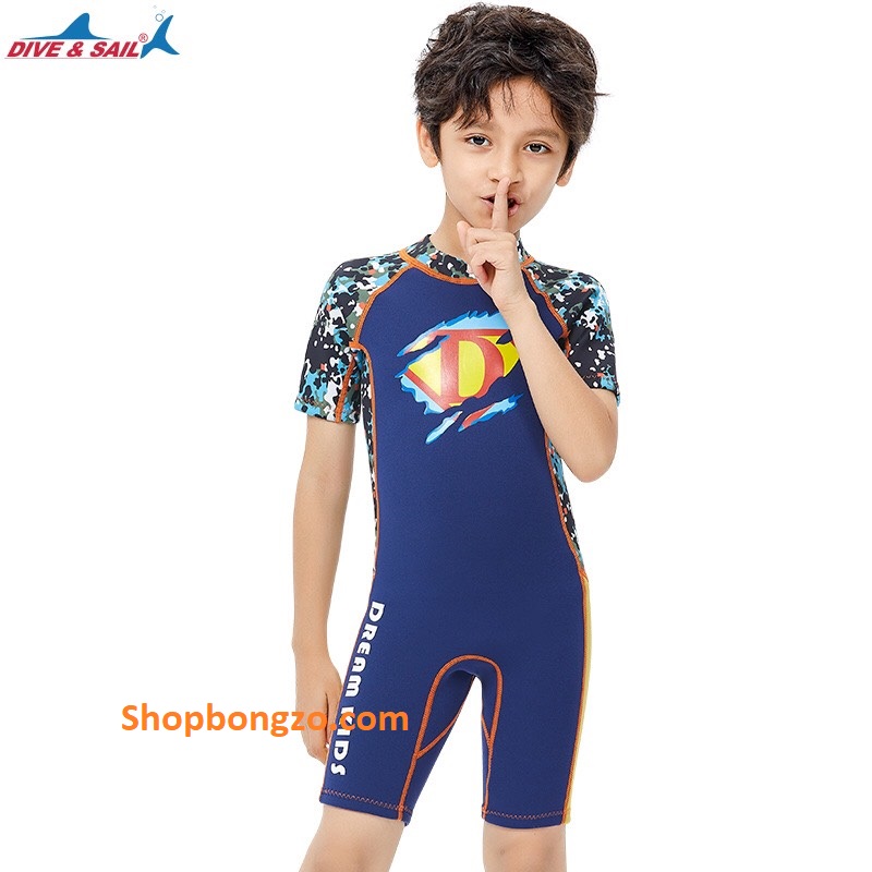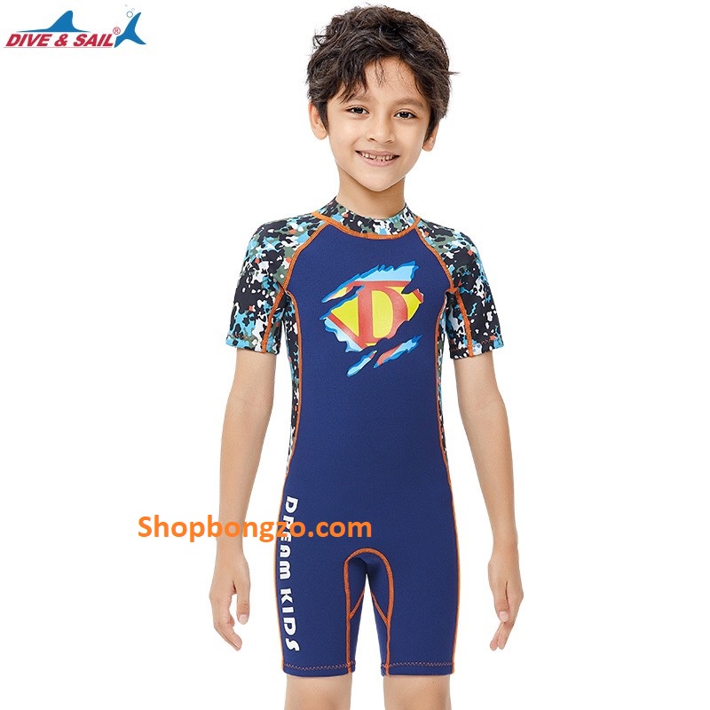 Bộ bơi giữ nhiệt bé trai, dài tay màu xanh vàng, vải dày 2.5mm, Dive Sail