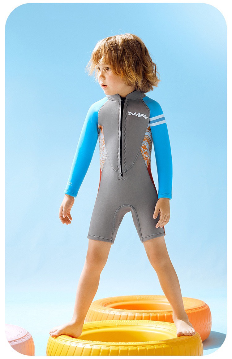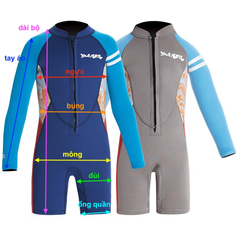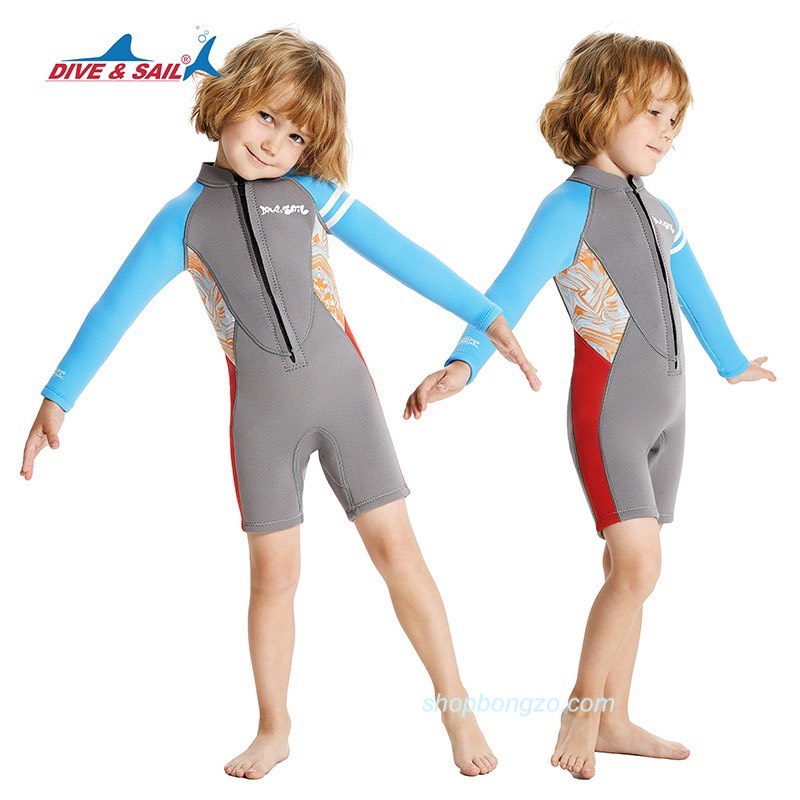 Bộ bơi giữ nhiệt trẻ em, dài tay, đen xanh, vải dày 2.5mm, Dive Sail