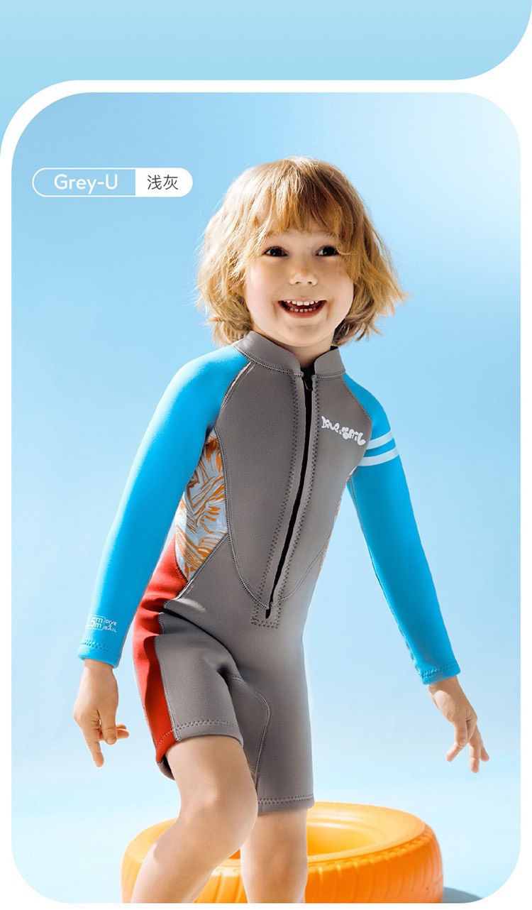 Bộ bơi giữ nhiệt dài liền quần cộc, màu xám, vải dày 2.5mm