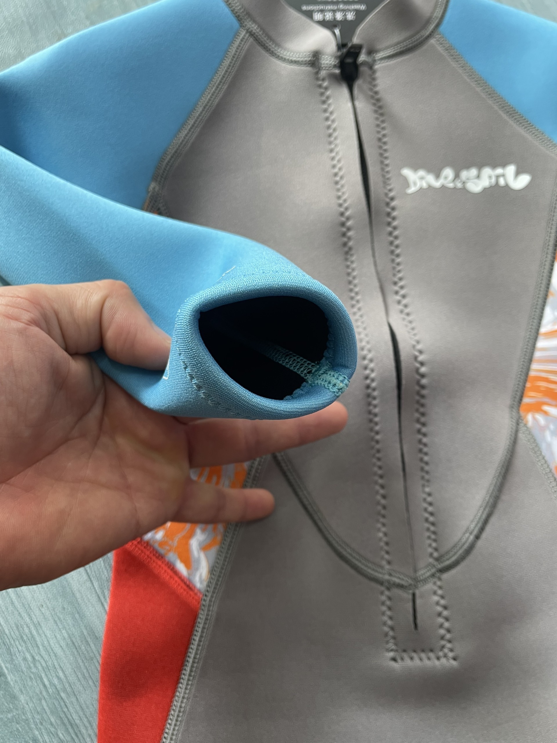 Bộ bơi giữ nhiệt bé gái, dài tay liền, màu xanh, vải dày 2.5mm, Dive Sail
