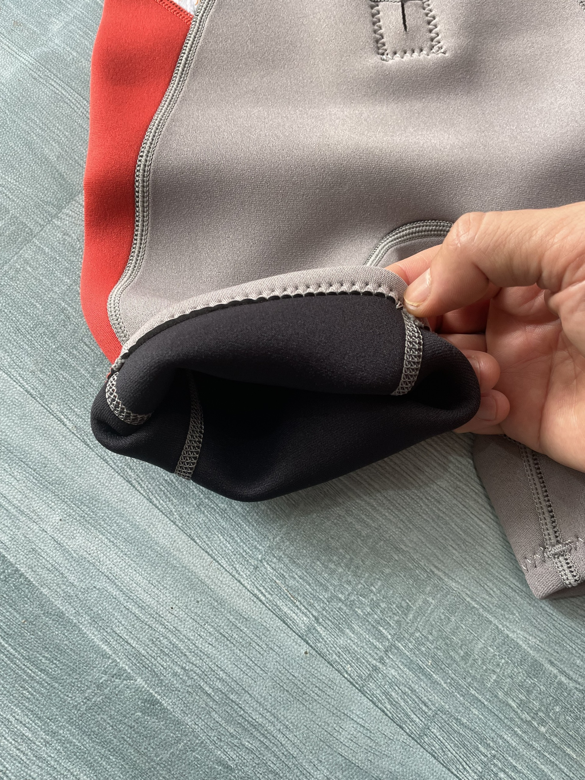 - Chất liệu vải gồm 3 tầng : lớp ngoài cùng vải nylon đàn hồi, lớp giữa là neoprene 2mm, lớp trong bằng vải nylon đàn hồi màu đen.