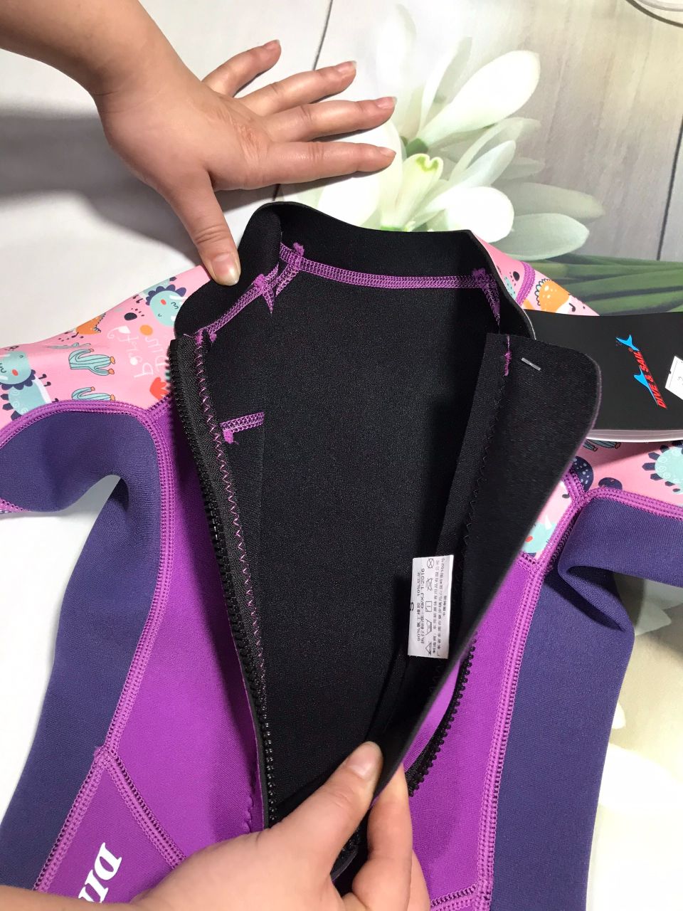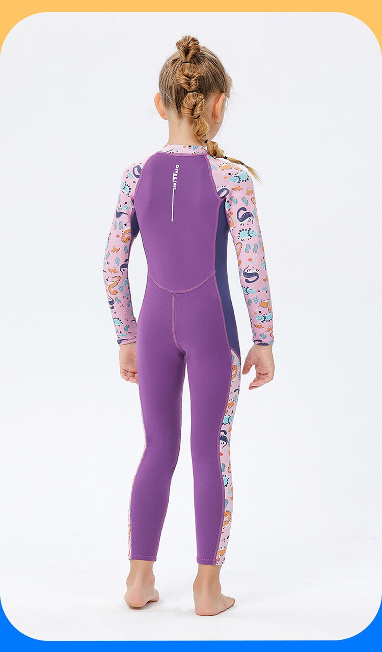 Bộ bơi dài, màu tím, tay hình khủng long, vải giữ nhiệt dày 2.5mm DiveSail