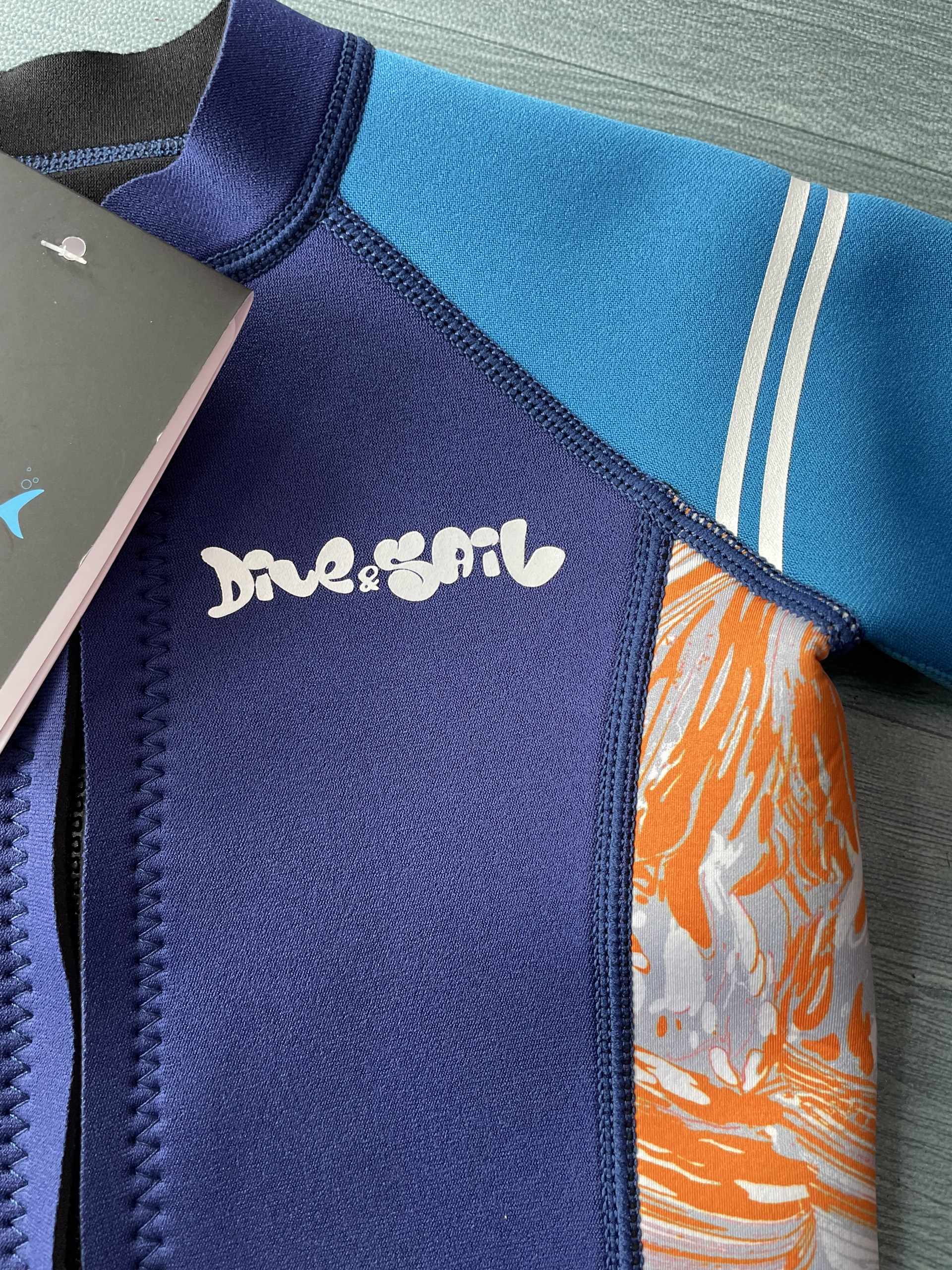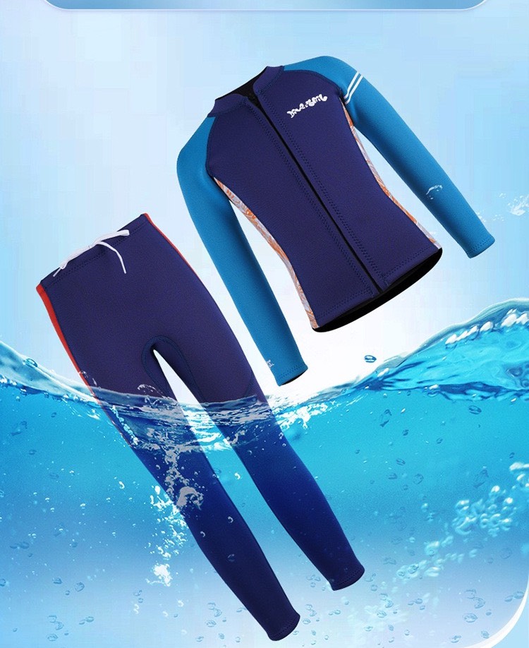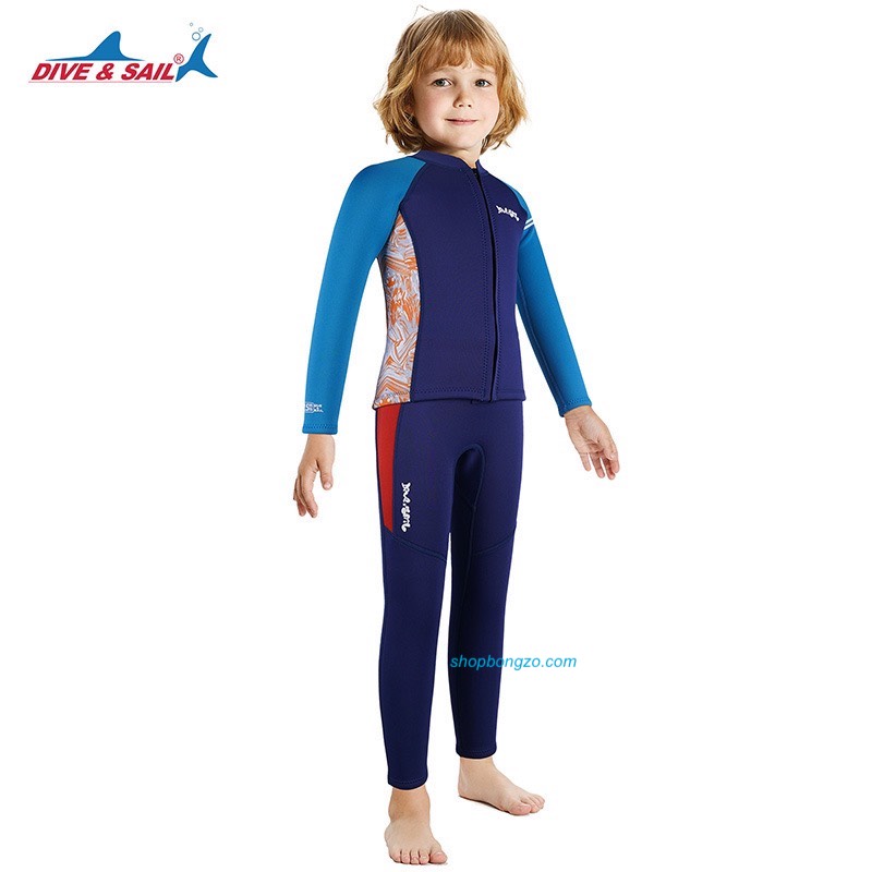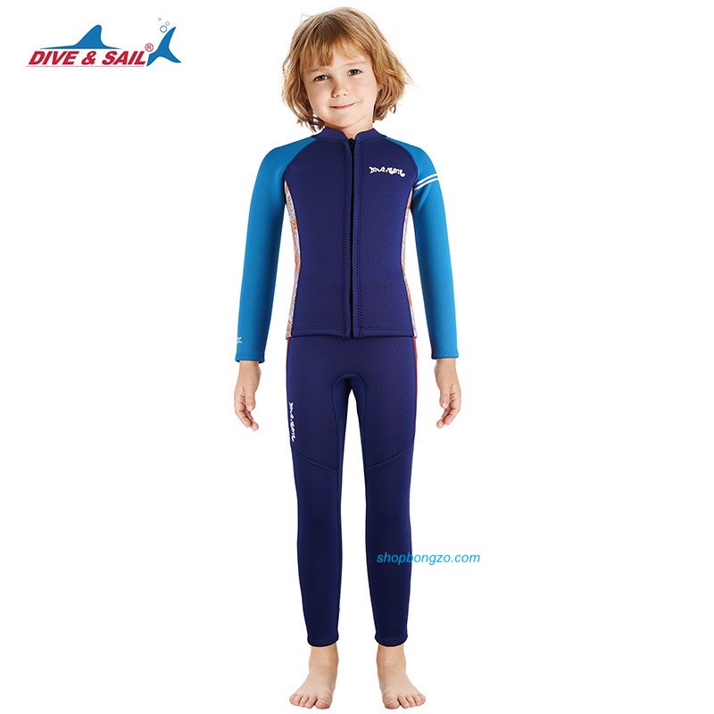 Bộ bơi giữ nhiệt dài rời bé trai, xanh than, vải dày 2.5mm, Dive & Sail