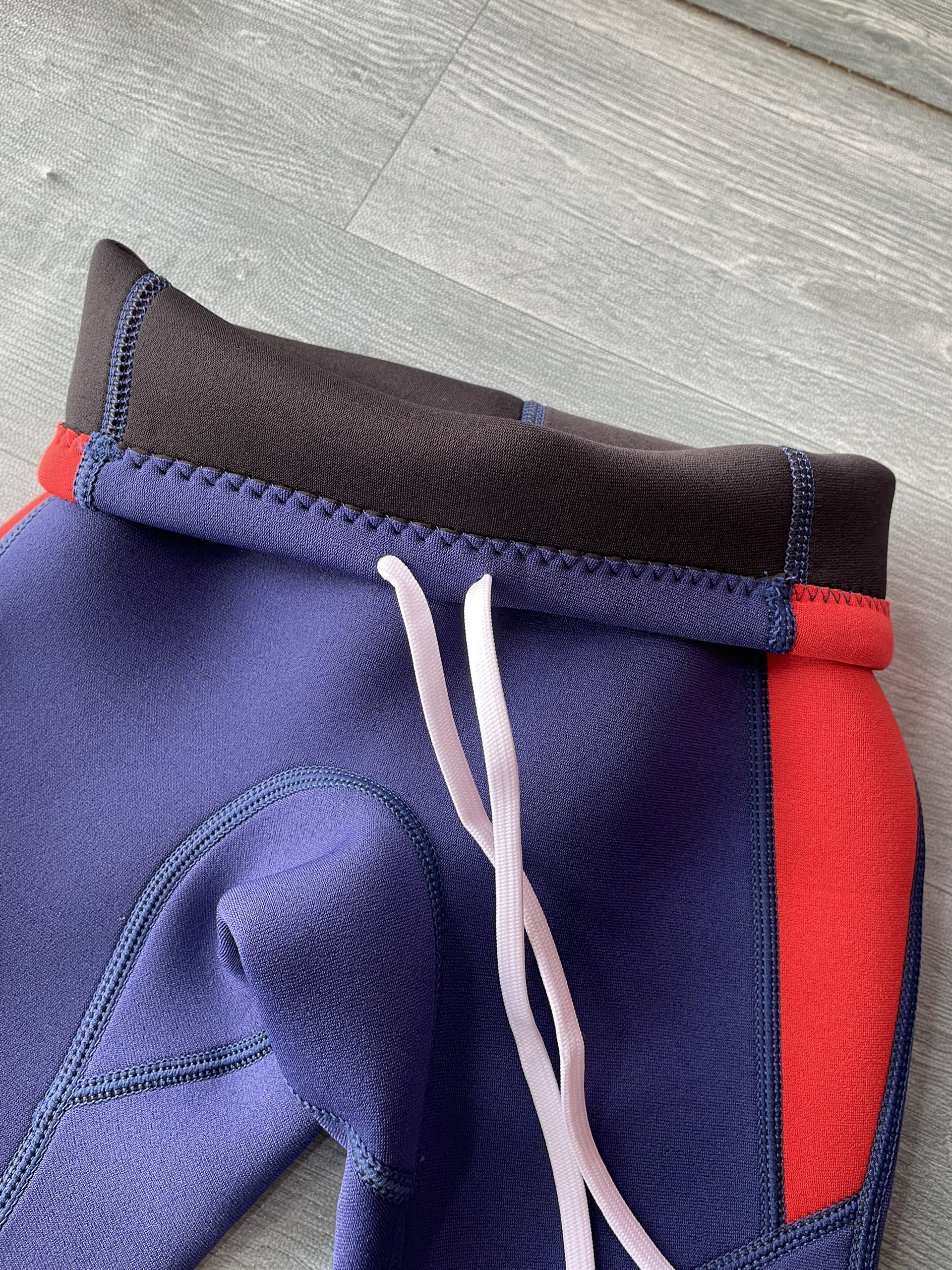 - Chất vải gồm 3 tầng : lớp ngoài cùng vải nylon đàn hồi, lớp giữa là neoprene 2mm, lớp trong bằng vải nylon đàn hồi màu đen. Chống chầy xước và không làm tổn thương da.