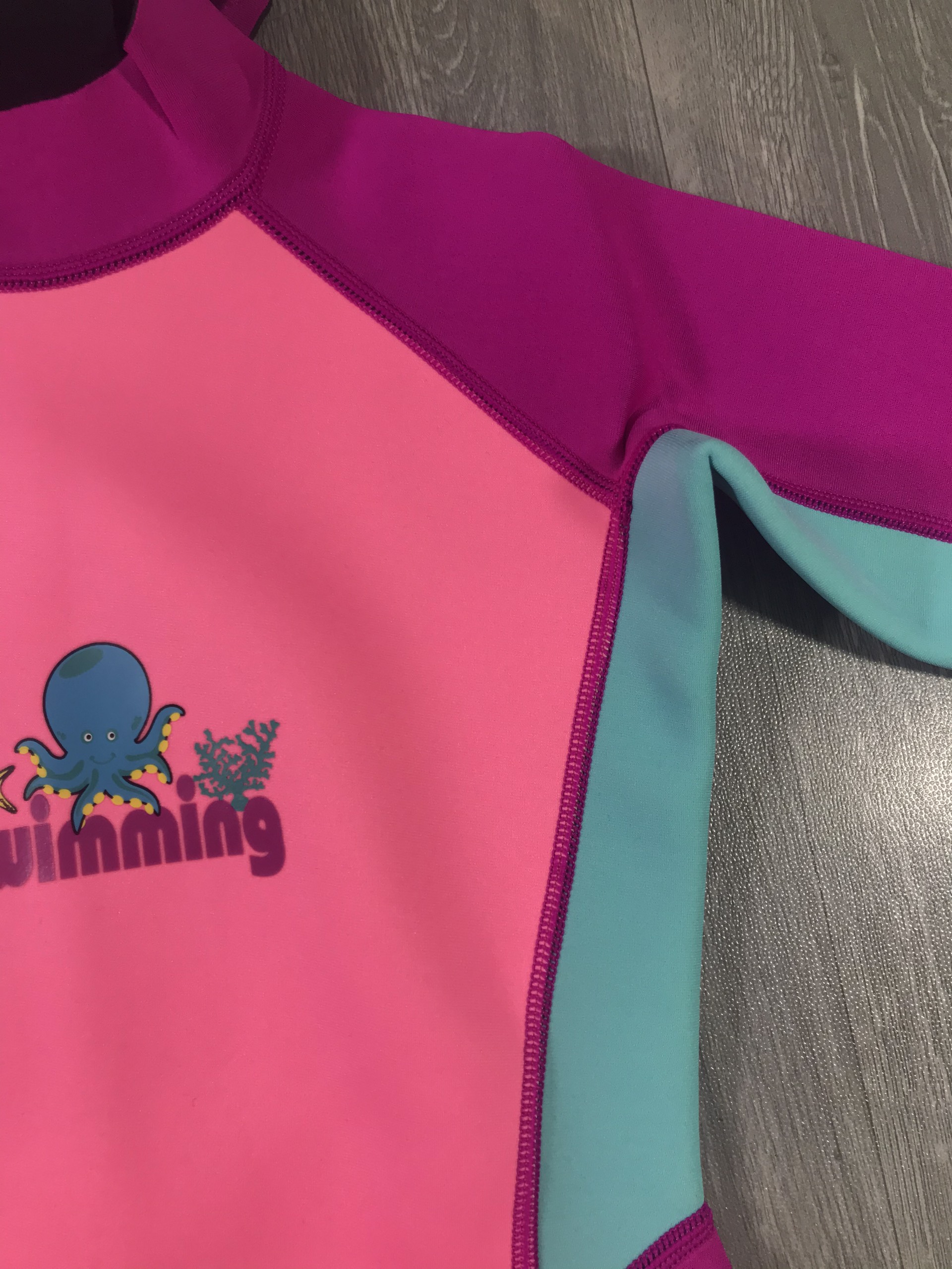 Bộ bơi giữ nhiệt bé gái dài, đen tay hồng, vải dày 2.5mm, Dive & Sail