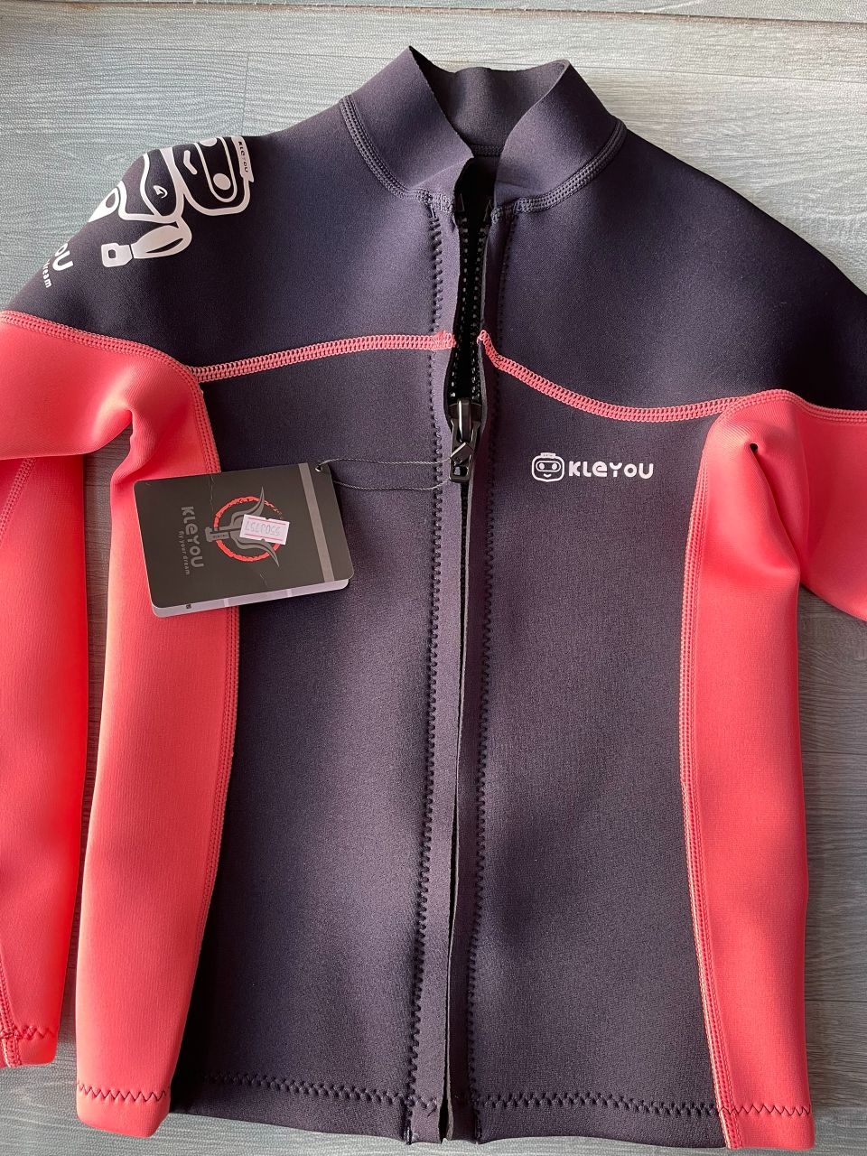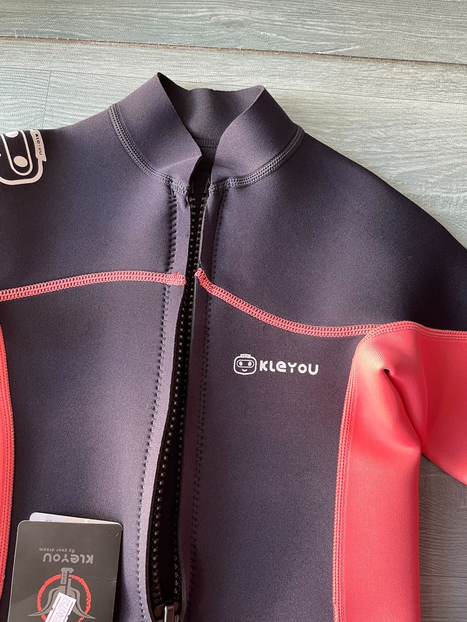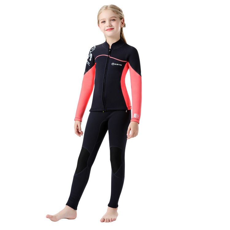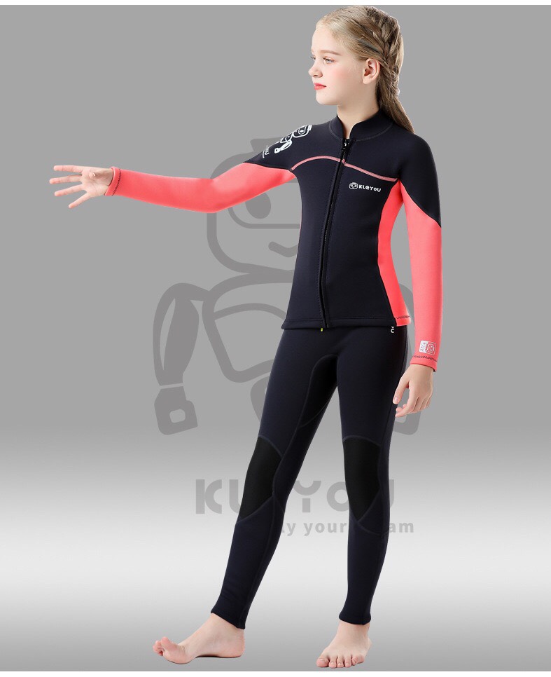 Bộ bơi giữ nhiệt KLEYOU dài tay, dáng rời, màu đen hồng, vải dày 2.5mm -R002
