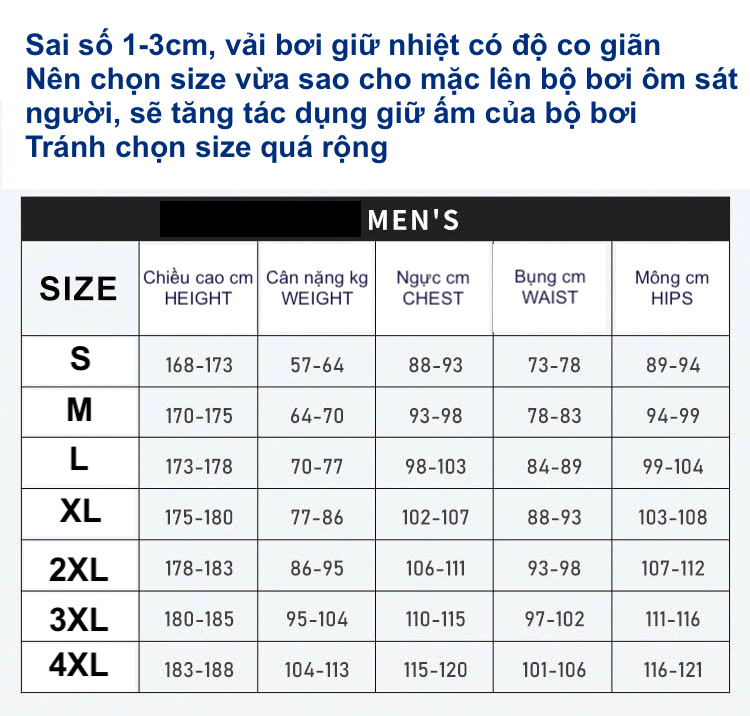 PHÙ HỢP Mùa hè & mùa lạnh khi bơi cảm thấy lạnh Người có thể trạng yếu, trẻ em dễ nhiễm lạnh Bơi buổi sáng, bơi bể, hồ, sông, suối,… THƯƠNG HIỆU : DIVE & SAIL KIỂU DÁNG Dài tay, kéo khoá trước Mặt trong khoá kéo có thiết kế thêm 1 lớp vải, ngăn cách với da, nhằm tác dụng tránh khoá tiếp xúc trực tiếp với da CHẤT LIỆU - Vải Neoprene (hay polychloroprene) trong tiếng Việt là cao su tổng hợp (synthetic rubber). Đây là một loại cao su có tính cân bằng giữa các tính chất cơ lý tính và tính kháng dung môi. Neoprene chịu thời tiết, kháng dầu, kháng ozon, chống lão hóa, chống nước… - Sử dụng cho người chơi lướt sóng, thợ lặn, lướt gió, chèo thuyền và các môn thể thao theo "hệ" nước Vai trò chính của dòng sản phẩm này là CÁCH NHIỆT, GIỮ NHIỆT, nổi trên nước và chống mài mòn, TRÁNH TIẾP XÚC VỚI TIA CỰC TÍM và vết chích từ đá, san hô, sinh vật biển Thiết kế đặc biệt vải cấu tạo 3 lớp : Ngoài cùng Nylon co giãn mềm mại, lớp giữa cao su cloropren có tính đàn hồi. - Vải không thấm nước, nên hạn chế tối đa nước tiếp xúc với cơ thể, nhưng không phải 100%, vì có thể nước sẽ vào cơ thể qua kẽ hở. Nhưng có thể yên tâm nước đó sẽ không làm lạnh cơ thể mà còn ngược lại do, chất liệu Wetsuit được làm từ sợi cao su tổng hợp closed - cell neoprene, loại vật liệu này cung cấp chất cách nhiệt rất tốt, chịu được thời tiết thay đổi thất thường, kháng dầu. Điều này đồng nghĩa với việc nước thâm nhập vào bên trong, duy trì như một lớp màng mỏng bao bọc quanh cơ thể, khi đó nhiệt độ bình thường của cơ thể sẽ khiến bạn làm ấm lớp nước này và hỗ trợ bạn cách ly với nước lạnh bên ngoài thông qua wetsuit - Độ dày vải 2.0mm - Giữ ấm cơ thể 6-8h dưới nước - Công nghệ in sử dụng keo đặc biệt dùng cho trang phục đồ lặn, rất chắc chắn, không phai màu và chống rách tuyệt đối - Độ co giãn 4 chiều, đàn hồi 128%, thoải mái vận động - Quy trình máy may 4 mũi kim 6 đường chỉ, tạo ra sự chắc chắn, hình thức đẹp, bảo đảm tuyệt đối không rách vải khi vận động - Chống UV tuyệt đối LƯU Ý - Do đặc tính cao su tổng hợp sẽ có mùi, 3 lớp vải đã trải qua quá trình kiểm tra an toàn nghiêm ngặt. Mùi này vô hại với cơ thể con người và có thể yên tâm sử dụng. Hơn nữa sản phẩm mới để lâu trong túi đóng gói, khi mới lấy sẽ có mùi. Sau khi giặt, phơi khô, thông gió sử dụng, mùi này sẽ dần bay đi - Sản phẩm có thể có những nếp nhăn không tránh khỏi khi nhận hàng, do sản phẩm mới sản xuất xong được gấp gọn vào túi vận chuyển, bạn có thể yên tâm sau quá trình sử dụng nếp nhăn này sẽ nhanh chóng hết - Trước khi xuống nước, nên mặc bộ bơi vào rồi tráng trước qua nước sạch để hạn chế nước bể bơi thấm vào bộ bơi. Sau khi bơi xong cũng làm tương tự - Dùng xong chỉ cần tráng bộ bơi qua nước sạch - Không giặt máy, chất tẩy rửa - Không là (ủi) CAM KẾT CHỈ BÁN HÀNG CHÍNH HÃNG ĐỒ BƠI NHẬP CHÍNH HÃNG Xem hàng trực tiếp tại : 25 Nguyễn Chí Thanh - Ba Đình - Hà Nội Ship toàn quốc, nhận hàng kiểm tra trước Nhận hàng kiểm tra trước khi thanh toán web : https://shopbongzo.com Hotline / Zalo : 094 6886 012 - 034 994 0705 Map shop : https://maps.app.goo.gl/N1WBJNvGUfo6o1jp7?g_st=com.google.maps.preview.copy455.000₫ -