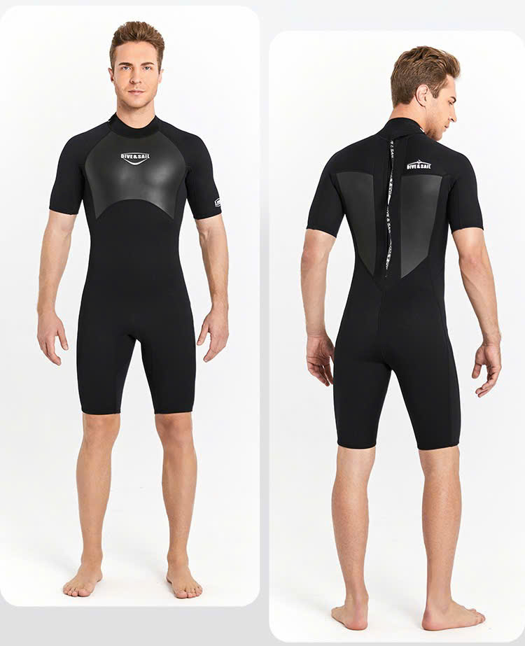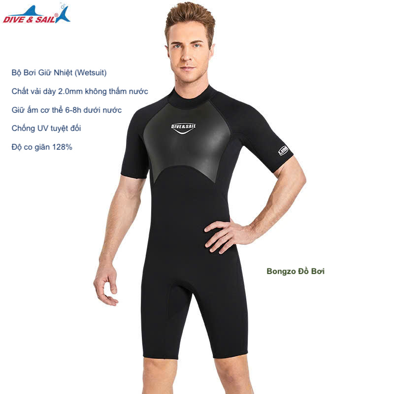 Bộ bơi giữ nhiệt nam, cộc tay, màu đen, vải dày 2.0mm, Dive Sail