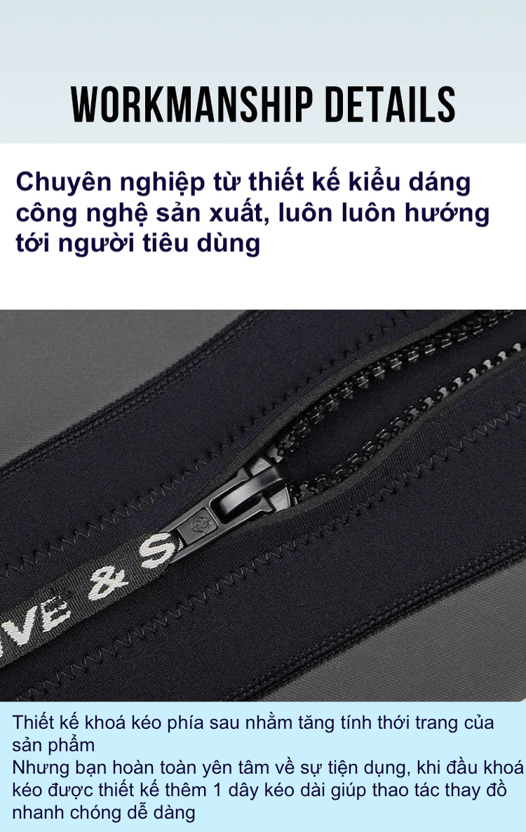 PHÙ HỢP DÙNG TRONG TRƯỜNG HỢP Mùa hè & mùa lạnh khi bơi dùng bộ vải mỏng mà vẫn cảm thấy lạnh Người có thể trạng yếu, trẻ em dễ nhiễm lạnh Bơi buổi sáng khi thời tiết còn lạnh nên dùng Mùa lạnh bơi trong bể bơi 4 mùa, nước ấm, có thể kế hợp dùng với bộ bơi giữ nhiệt Bơi thời gian lâu bộ bơi vải dày cũng là giải pháp giúp cơ thể giữ nhiệt Bơi mùa lạnh, bơi bể, bơi sông hồ, biển Bảo vệ da chống chày sước, san hô, sứa biển THƯƠNG HIỆU : DIVE & SAIL KIỂU DÁNG - Ngắn tay chân, dáng liền - Trên đầu khoá kéo có thiết kế 1 dây vải dài, giúp người dùng có thể tự thay đồ thuận tiện dễ dàng - Mặt trong khoá có lót 1 lớp vải, giúp da không tiếp xúc trực tiếp với khoá CHẤT LIỆU - Neoprene (hay polychloroprene) trong tiếng Việt là cao su tổng hợp (synthetic rubber). Đây là một loại cao su có tính cân bằng giữa các tính chất cơ lý tính và tính kháng dung môi. Neoprene chịu thời tiết, kháng dầu, kháng ozon, chống lão hóa, chống nước… - Sử dụng cho người chơi lướt sóng, thợ lặn, lướt gió, chèo thuyền và các môn thể thao theo "hệ" nước Vai trò chính của dòng sản phẩm này là CÁCH NHIỆT, GIỮ NHIỆT, nổi trên nước và chống mài mòn, TRÁNH TIẾP XÚC VỚI TIA CỰC TÍM và vết chích từ đá, san hô, sinh vật biển - Bộ bơi giữ nhiệt vải không thấm nước, nên hạn chế tối đa nước tiếp xúc với cơ thể, nhưng không phải 100%, vì có thể nước sẽ vào cơ thể qua kẽ hở như cổ tay, cổ chân. Nhưng có thể yên tâm nước đó sẽ không làm lạnh cơ thể mà còn ngược lại do, chất liệu Wetsuit được làm từ sợi cao su tổng hợp closed - cell neoprene, loại vật liệu này cung cấp chất cách nhiệt rất tốt, chịu được thời tiết thay đổi thất thường, kháng dầu. Điều này đồng nghĩa với việc nước thâm nhập vào bên trong bộ đồ bơi, duy trì như một lớp màng mỏng bao bọc quanh cơ thể, khi đó nhiệt độ bình thường của cơ thể sẽ khiến bạn làm ấm lớp nước này và hỗ trợ bạn cách ly với nước lạnh bên ngoài thông qua wetsuit - Độ dày vải 2.0mm - Giữ ấm cơ thể 6-8h dưới nước - Công nghệ in sử dụng keo đặc biệt dùng cho trang phục đồ lặn, rất chắc chắn, không phai màu và chống rách tuyệt đối - Độ co giãn đàn hồi 128% - Quy trình máy may 4 mũi kim 6 đường chỉ, tạo ra sự chắc chắn, hình thức đẹp, bảo đảm tuyệt đối không rách vải khi vận động LƯU Ý - Do đặc tính cao su tổng hợp sẽ có mùi, 3 lớp vải đã trải qua quá trình kiểm tra an toàn nghiêm ngặt. Mùi này vô hại với cơ thể con người và có thể yên tâm sử dụng. Hơn nữa sản phẩm mới để lâu trong túi đóng gói, khi mới lấy sẽ có mùi. Sau khi giặt, phơi khô, thông gió sử dụng, mùi này sẽ dần bay đi - Sản phẩm có thể có những nếp nhăn không tránh khỏi khi nhận hàng, do sản phẩm mới sản xuất xong được gấp gọn vào túi vận chuyển, bạn có thể yên tâm sau quá trình sử dụng nếp nhăn này sẽ nhanh chóng hết - Trước khi xuống nước, nên mặc bộ bơi vào rồi tráng trước qua nước sạch để hạn chế nước bể bơi thấm vào bộ bơi. Sau khi bơi xong cũng làm tương tự - Dùng xong chỉ cần tráng bộ bơi qua nước sạch - Không giặt máy, chất tẩy rửa - Không là (ủi) ĐỒ BƠI NHẬP CHÍNH HÃNG Xem hàng trực tiếp tại : 25 Nguyễn Chí Thanh - Ba Đình - Hà Nội Ship toàn quốc, nhận hàng kiểm tra trước Nhận hàng kiểm tra trước khi thanh toán Hotline / Zalo : 094 6886 012 - 034 994 0705 Map shop : https://maps.app.goo.gl/N1WBJNvGUfo6o1jp7?g_st=com.google.maps.preview.copy650.000₫ -