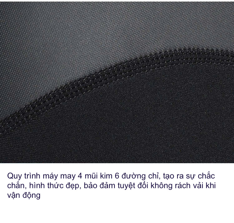 - Quy trình máy may 4 mũi kim 6 đường chỉ, tạo ra sự chắc chắn, hình thức đẹp, bảo đảm tuyệt đối không rách vải khi vận động
