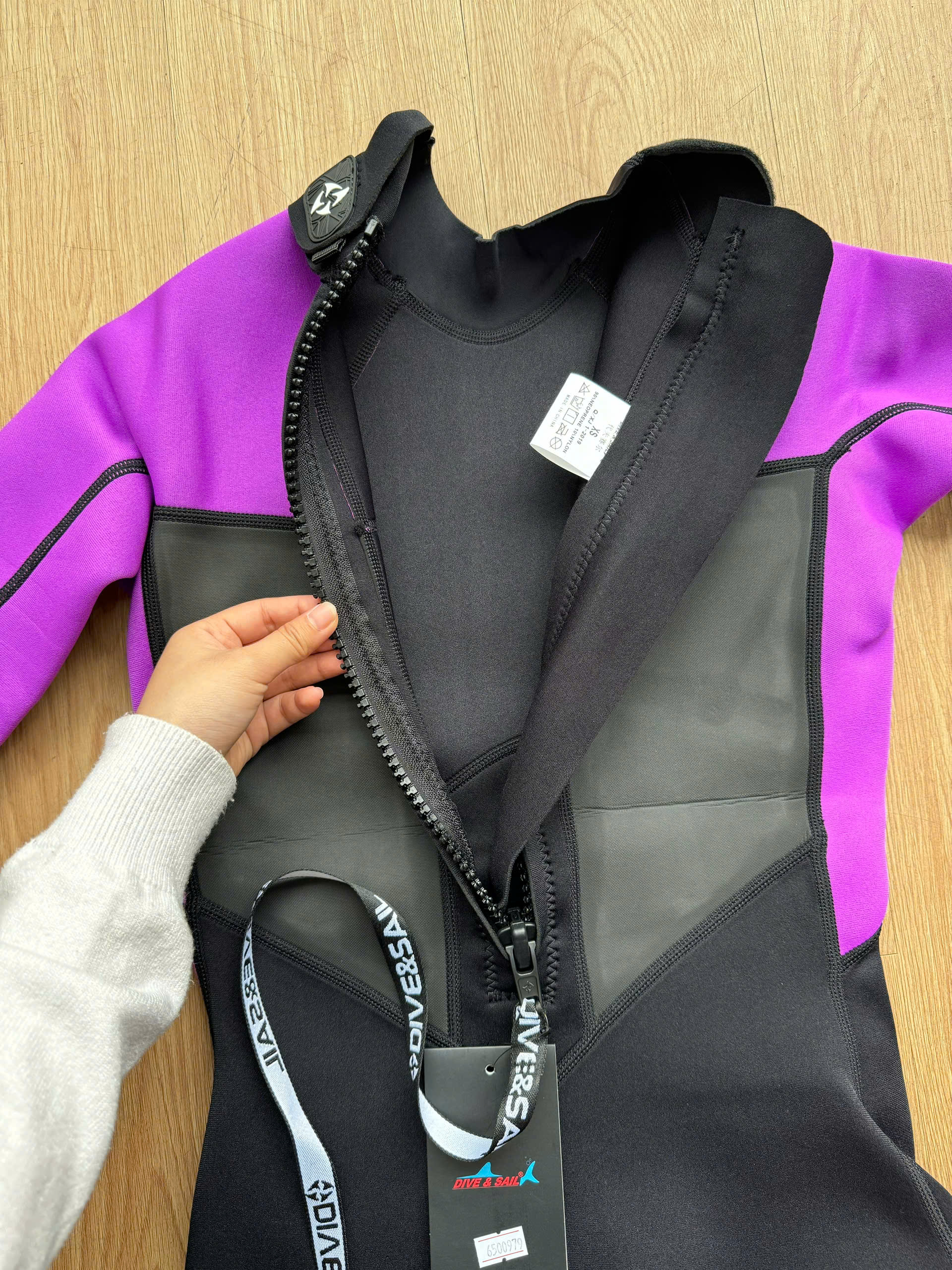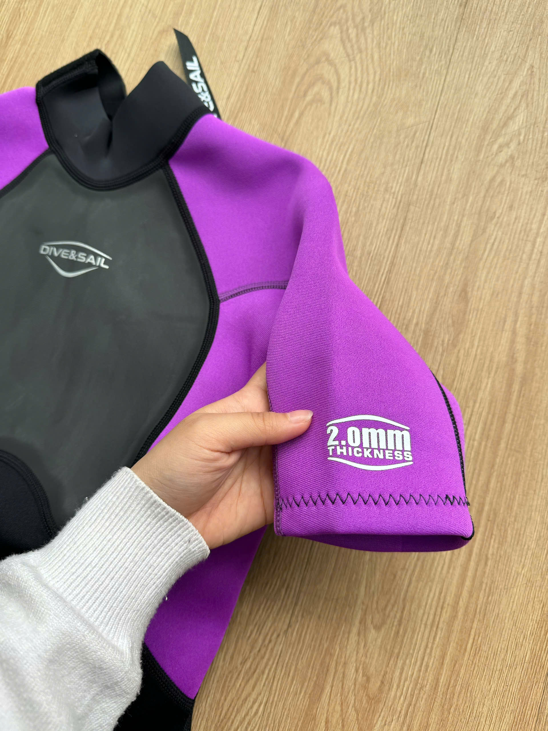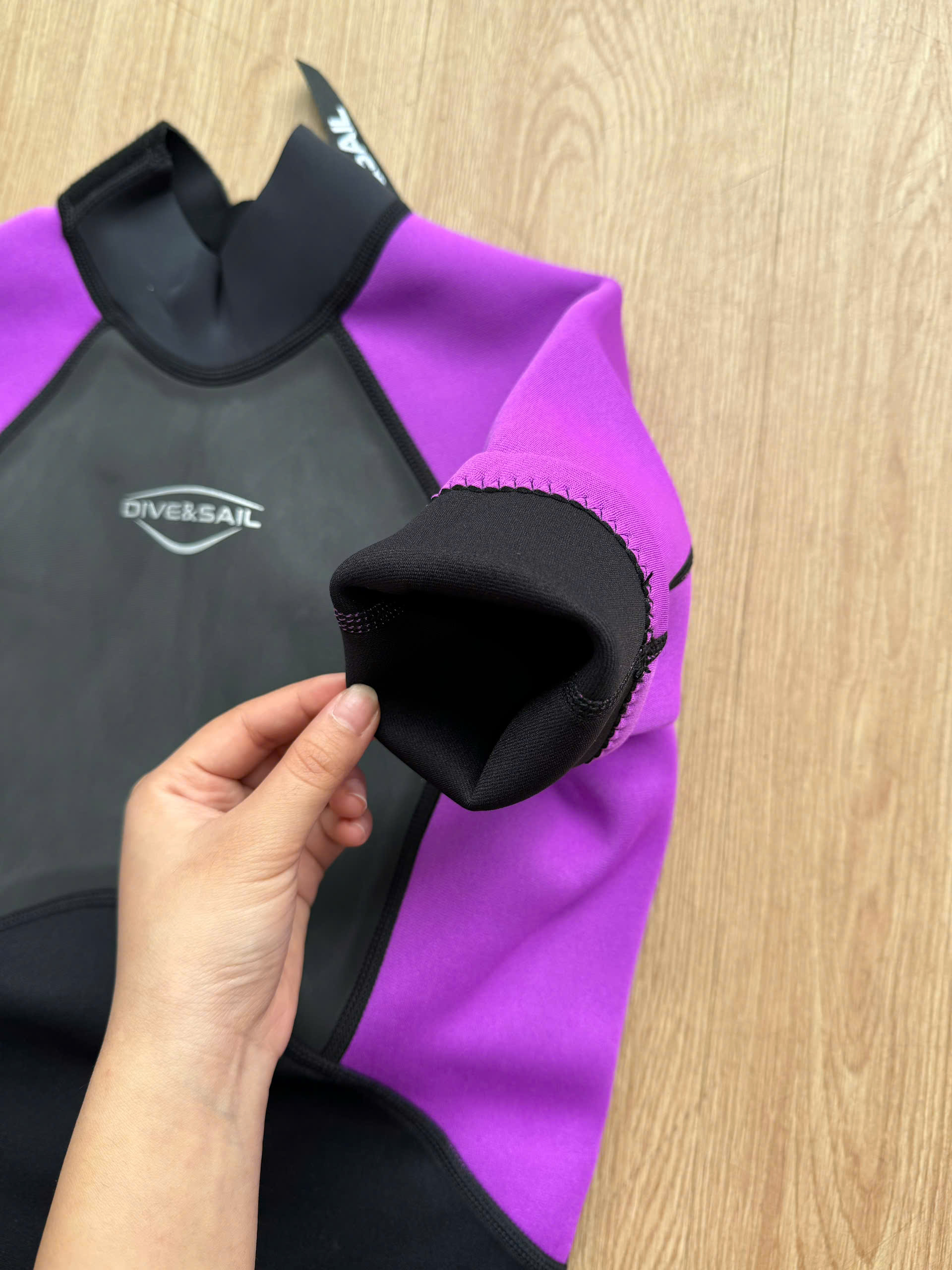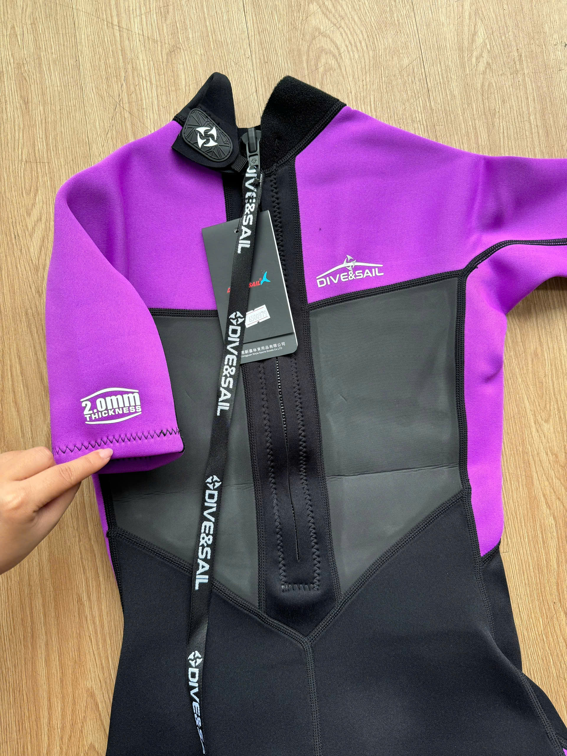 Bộ bơi giữ nhiệt nữ, dáng cộc liền, màu tím đen, vải dày 2.0mm, Dive Sail