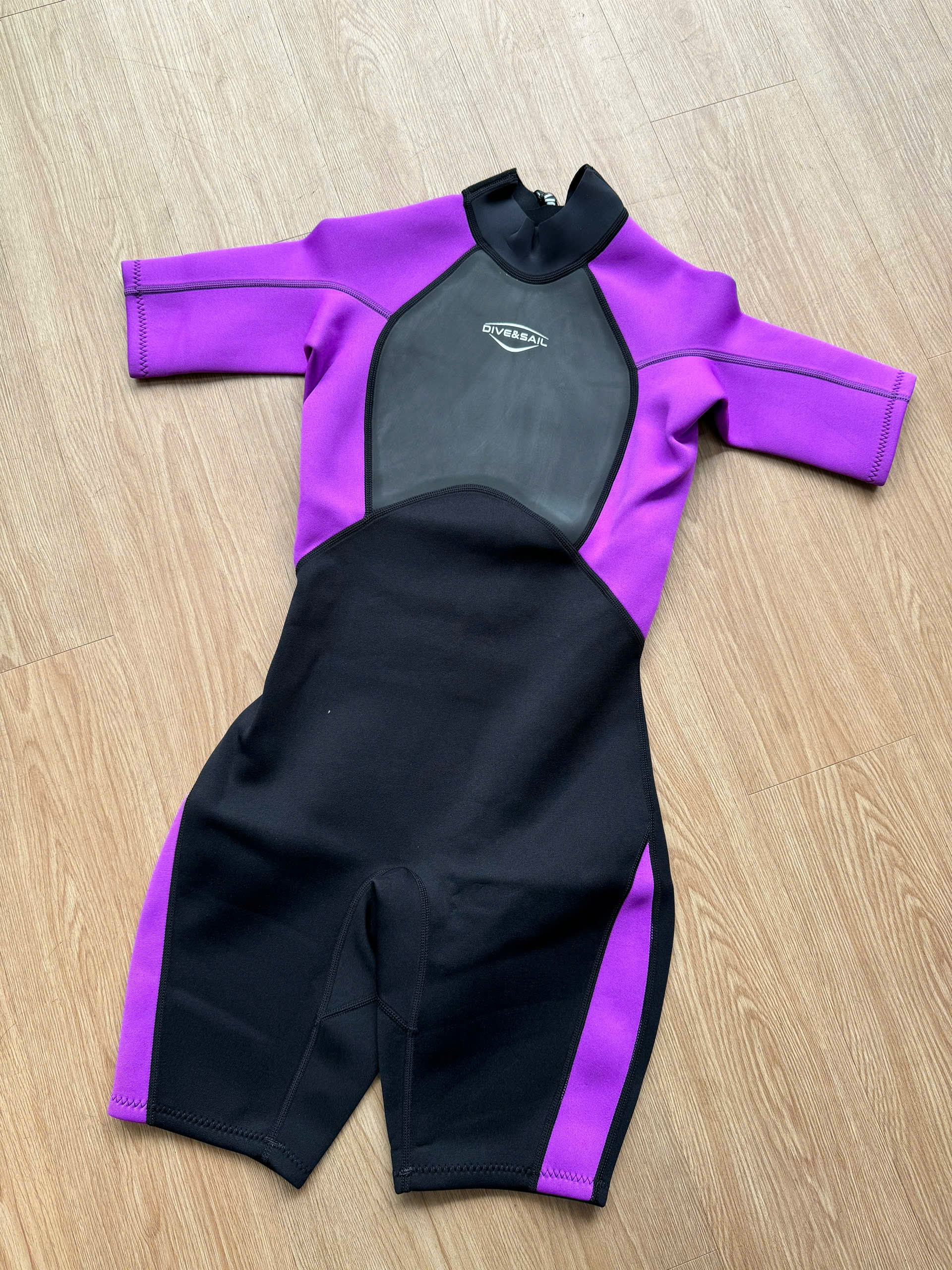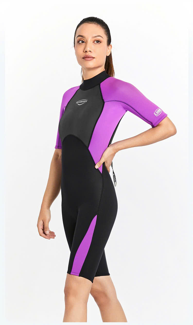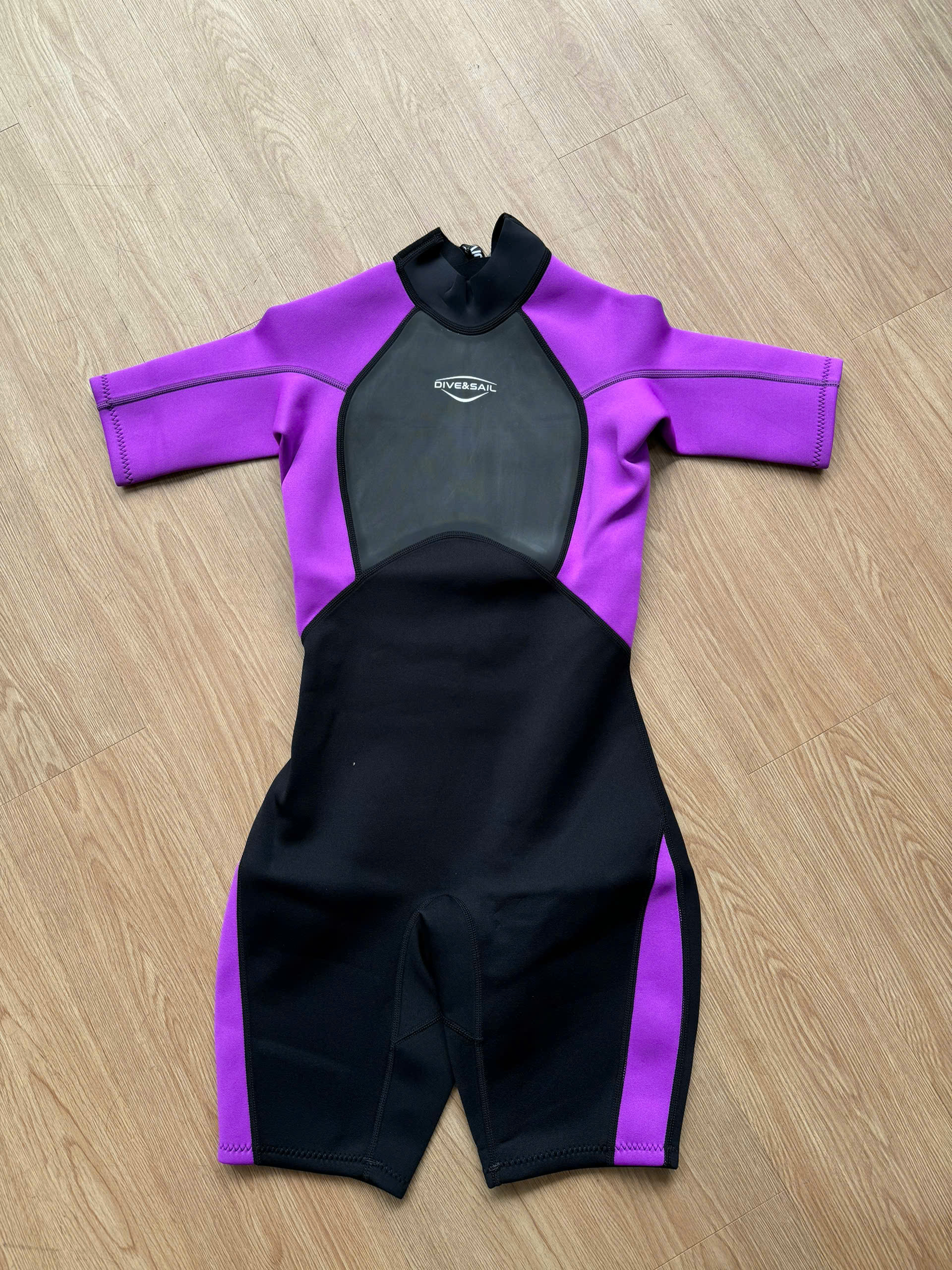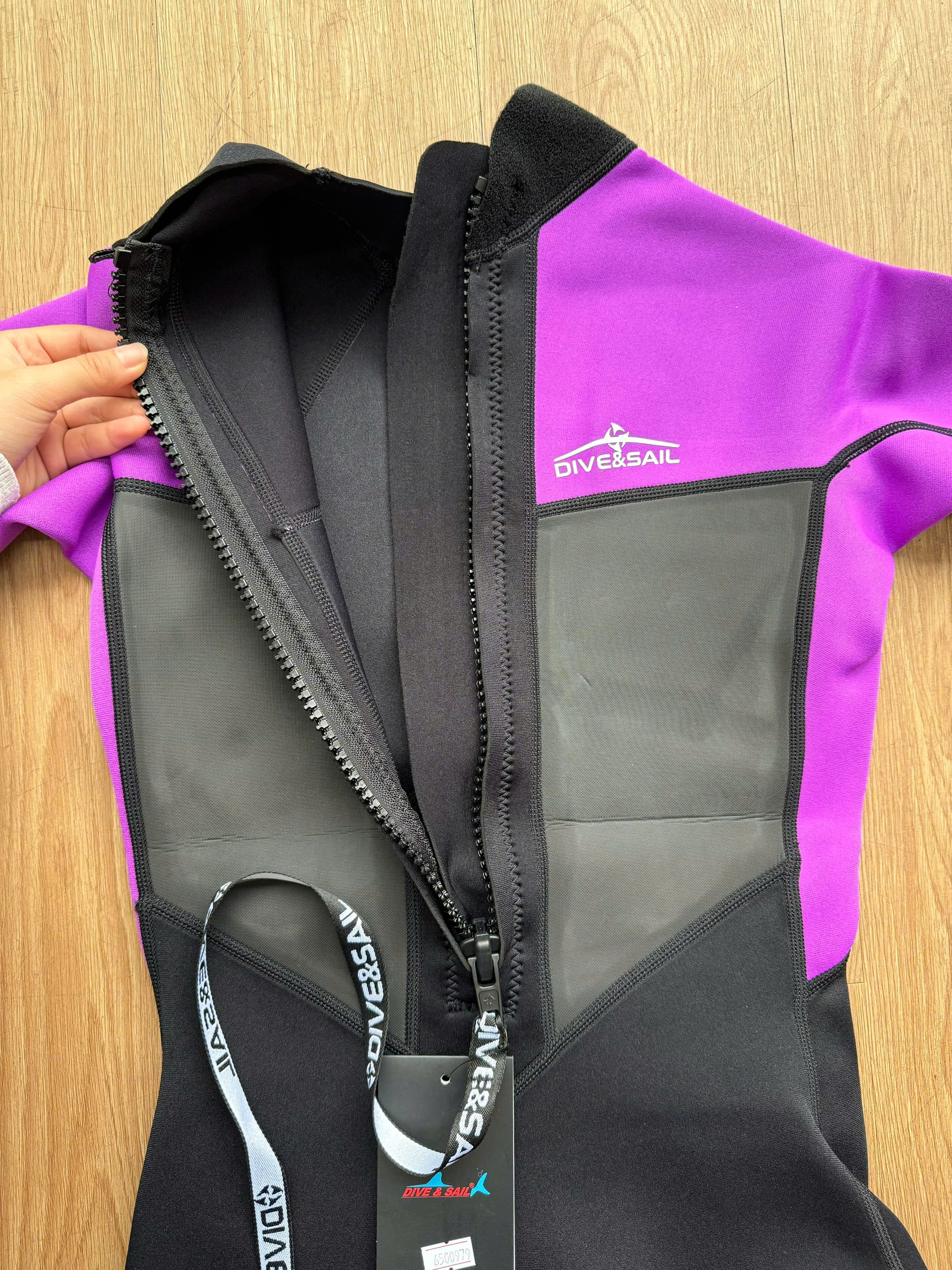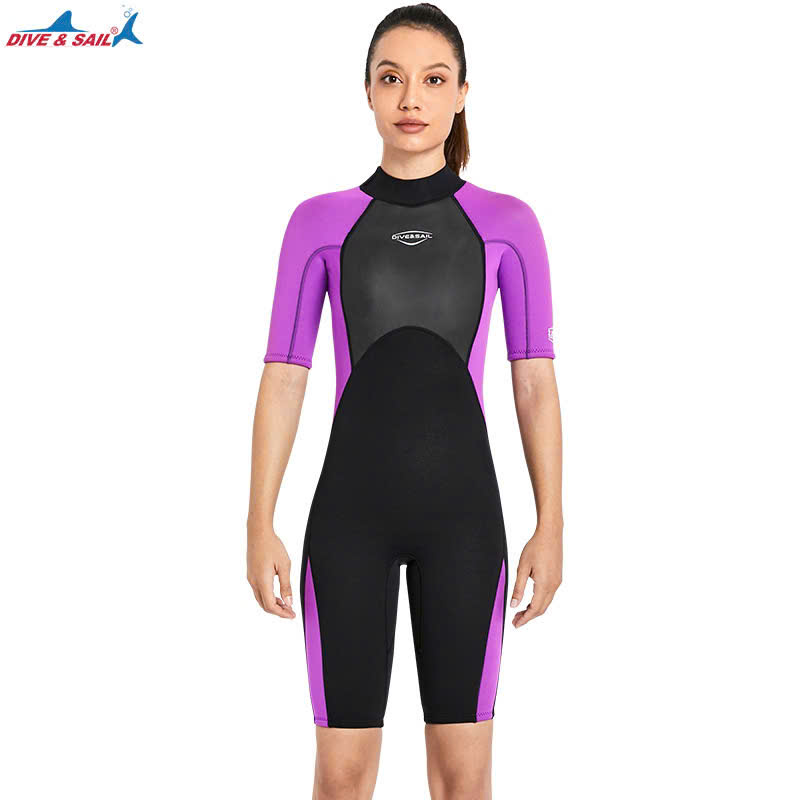 Bộ bơi giữ nhiệt nữ, dáng cộc liền, màu tím đen, vải dày 2.0mm, Dive Sail