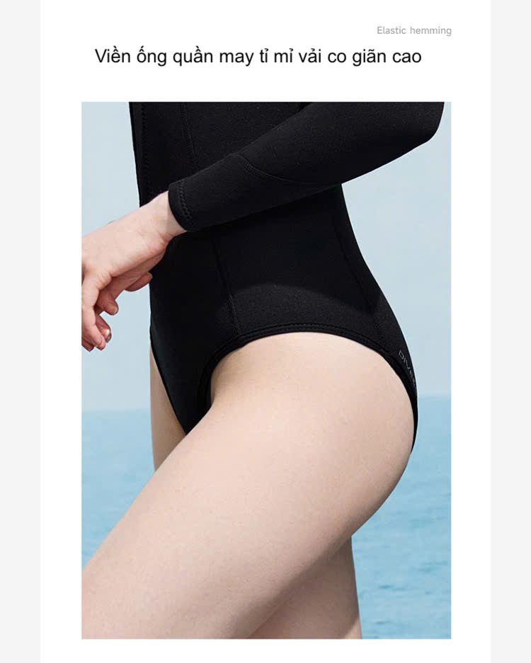 Bộ bơi nữ giữ nhiệt, dài tay, màu đen xanh, vải dày 1.5mm, Dive Sail