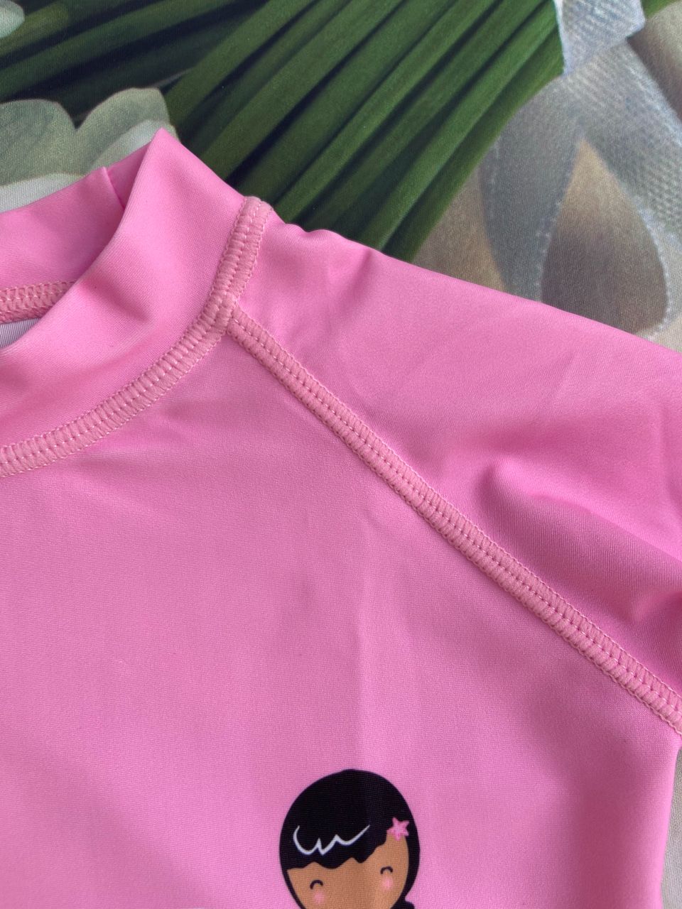 Bộ bơi bé gái dài tay, vải chống nắng UPF 50+ Momasong (Korea), hồng trắng