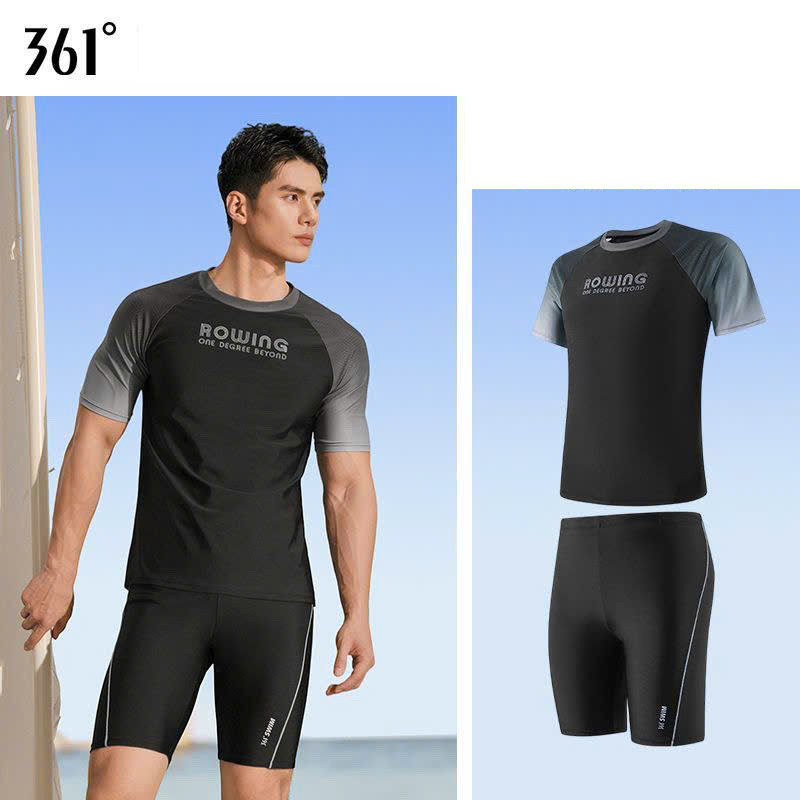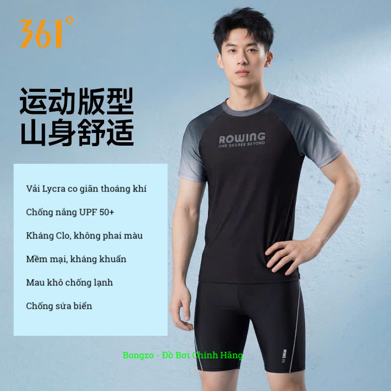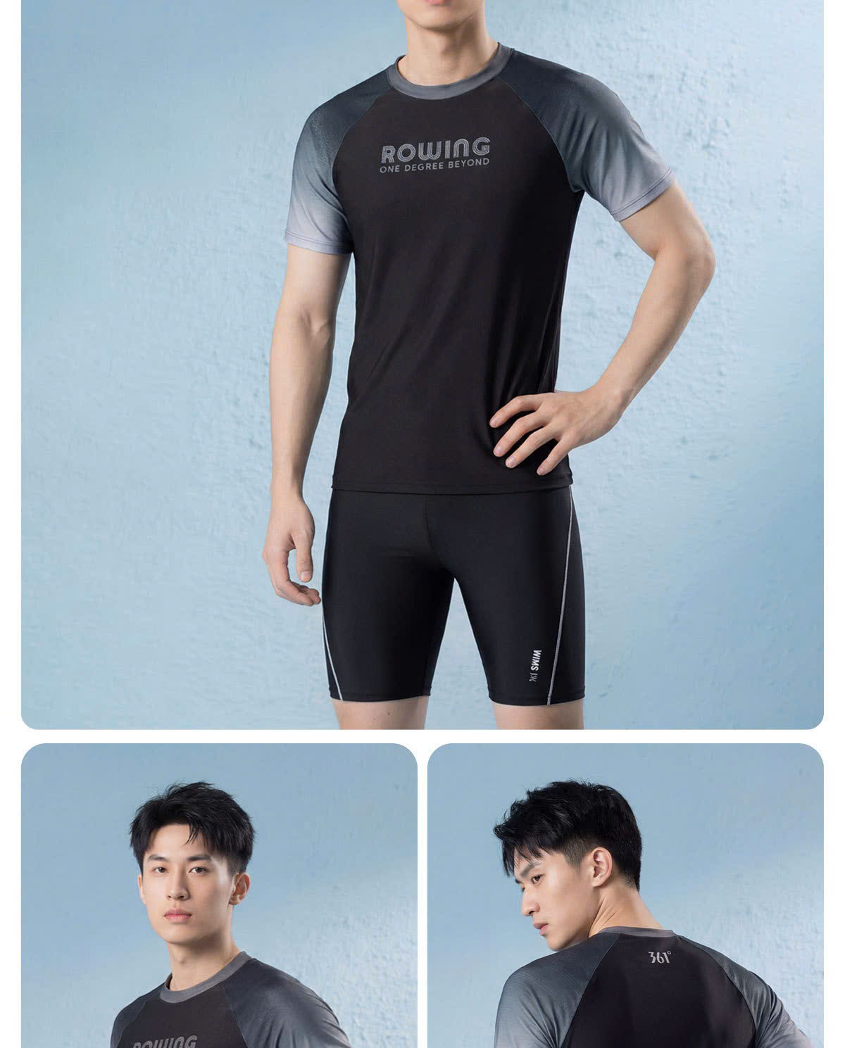 Bộ bơi nam 361 cộc tay, kiểu dáng thời trang, chống nắng UPF 50+, Rowing, màu đen