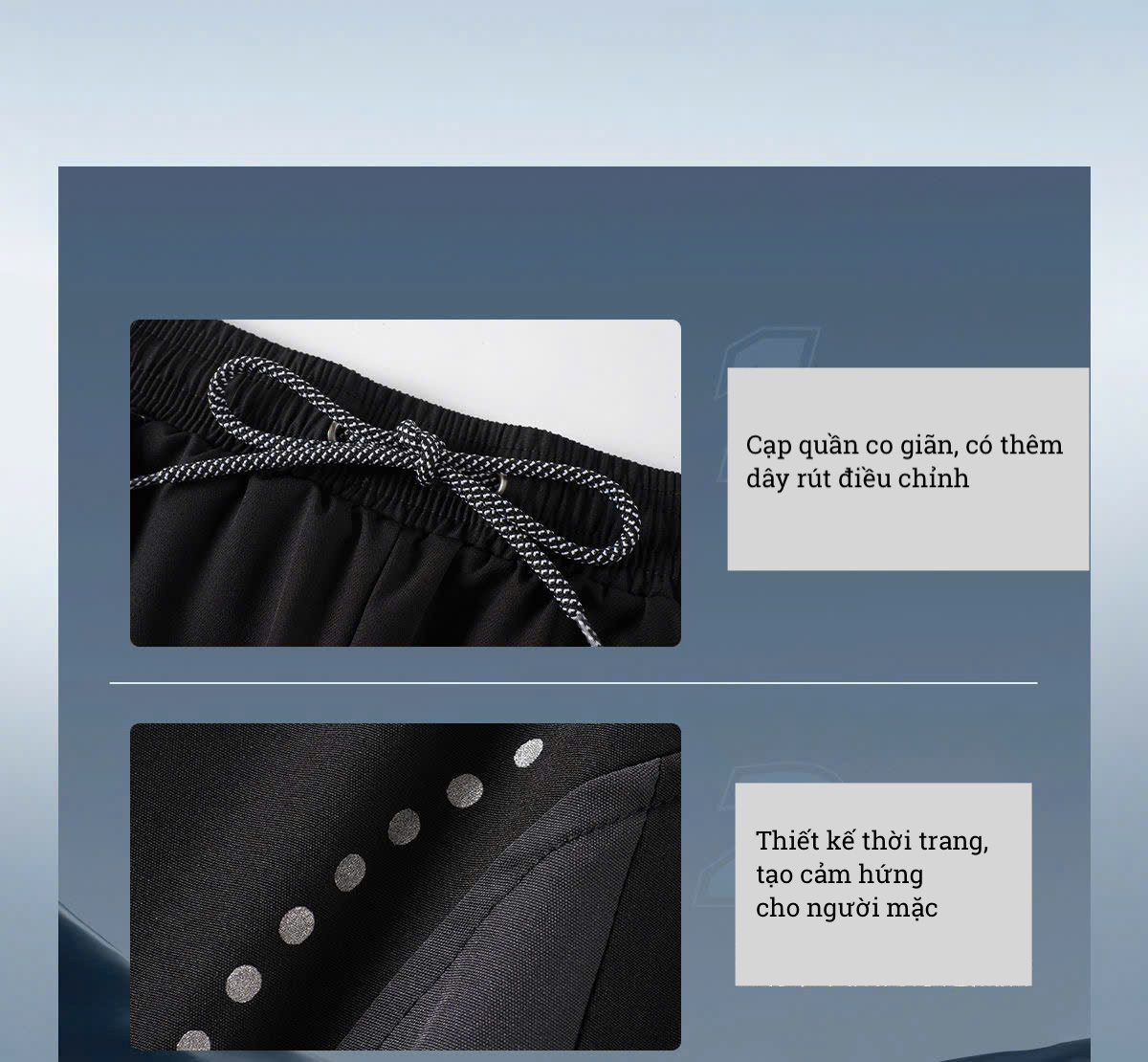 + Quần cạp chun co giãn, có thêm dây rút điều chỉnh.