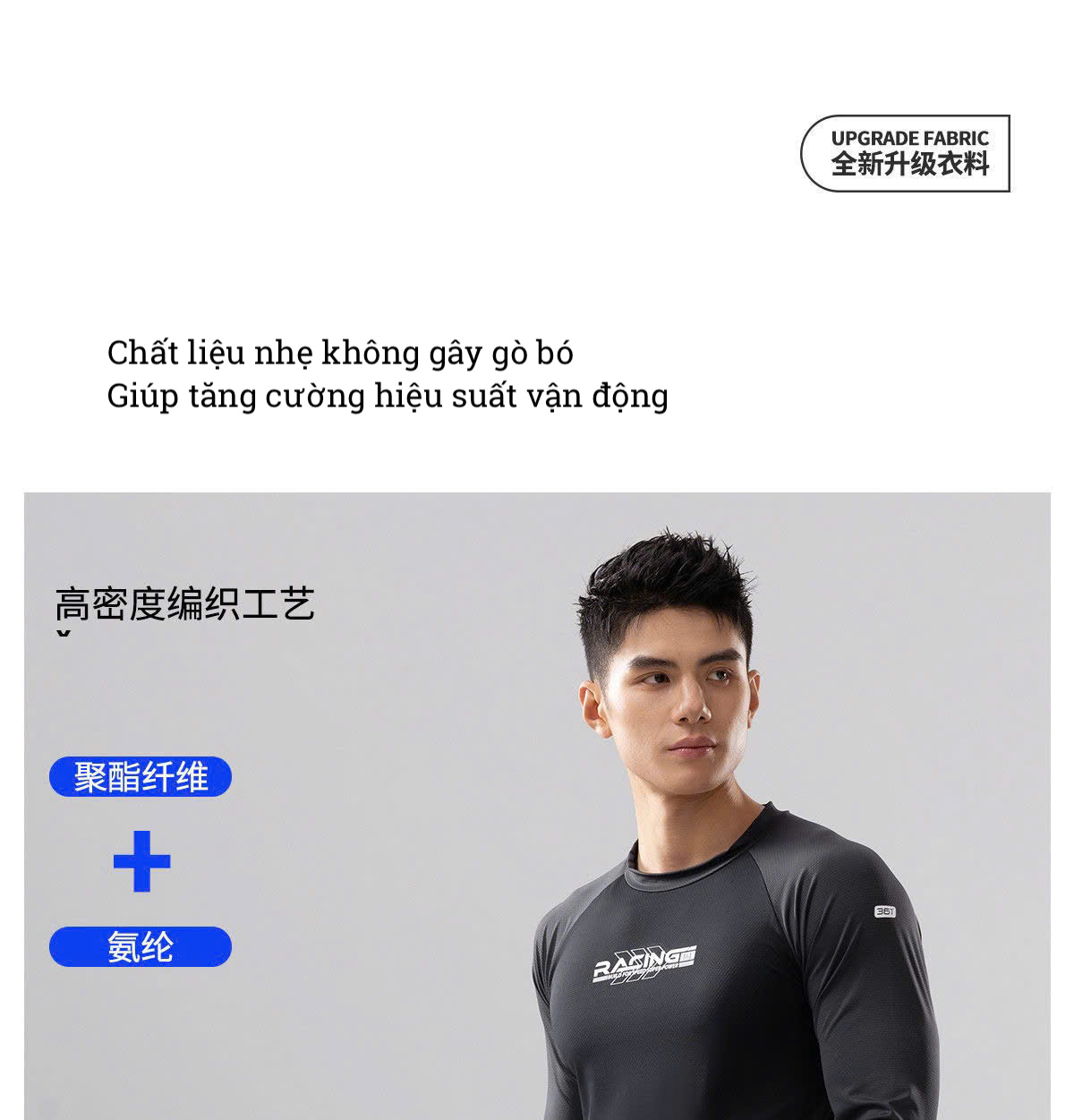 Bộ bơi nam 361, dài tay chống nắng UPF 50+, kháng Clo, Racing, màu xám