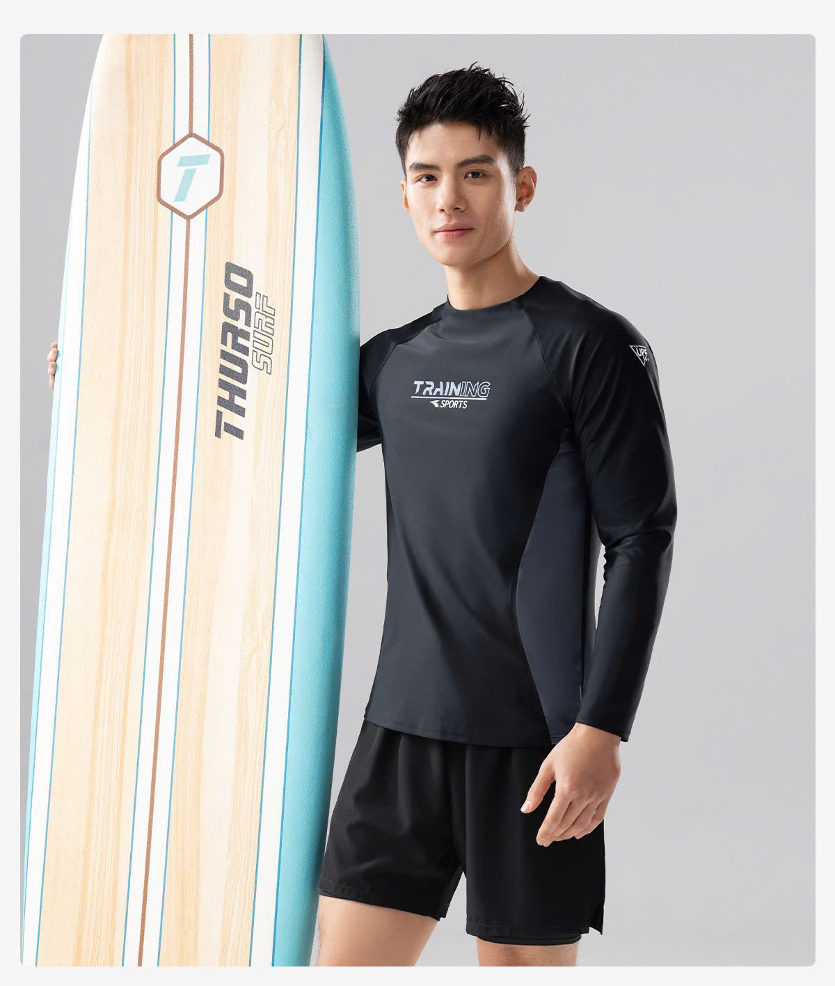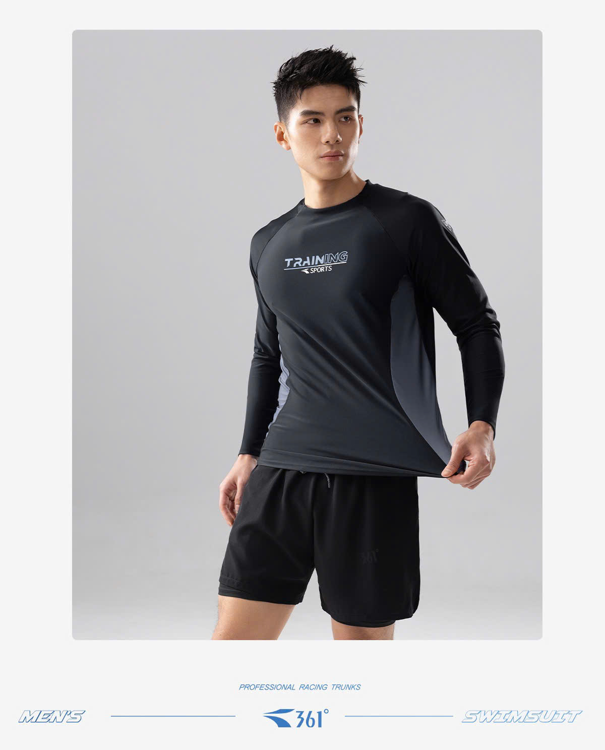 Bộ bơi nam 361, dài tay chống nắng UPF 50+, thoáng khí mau khô, màu đen, Training