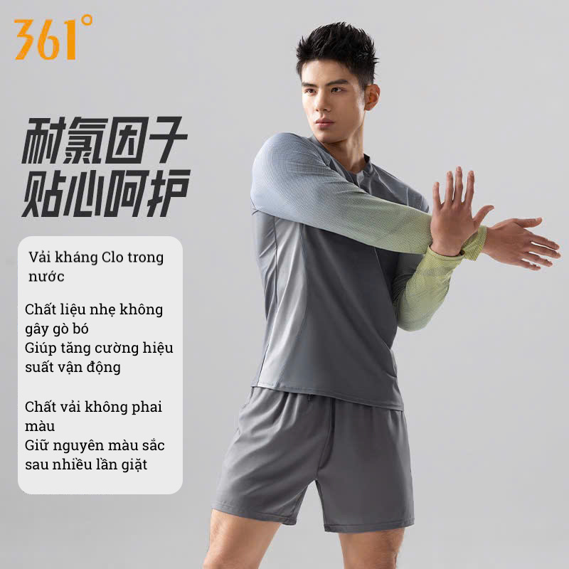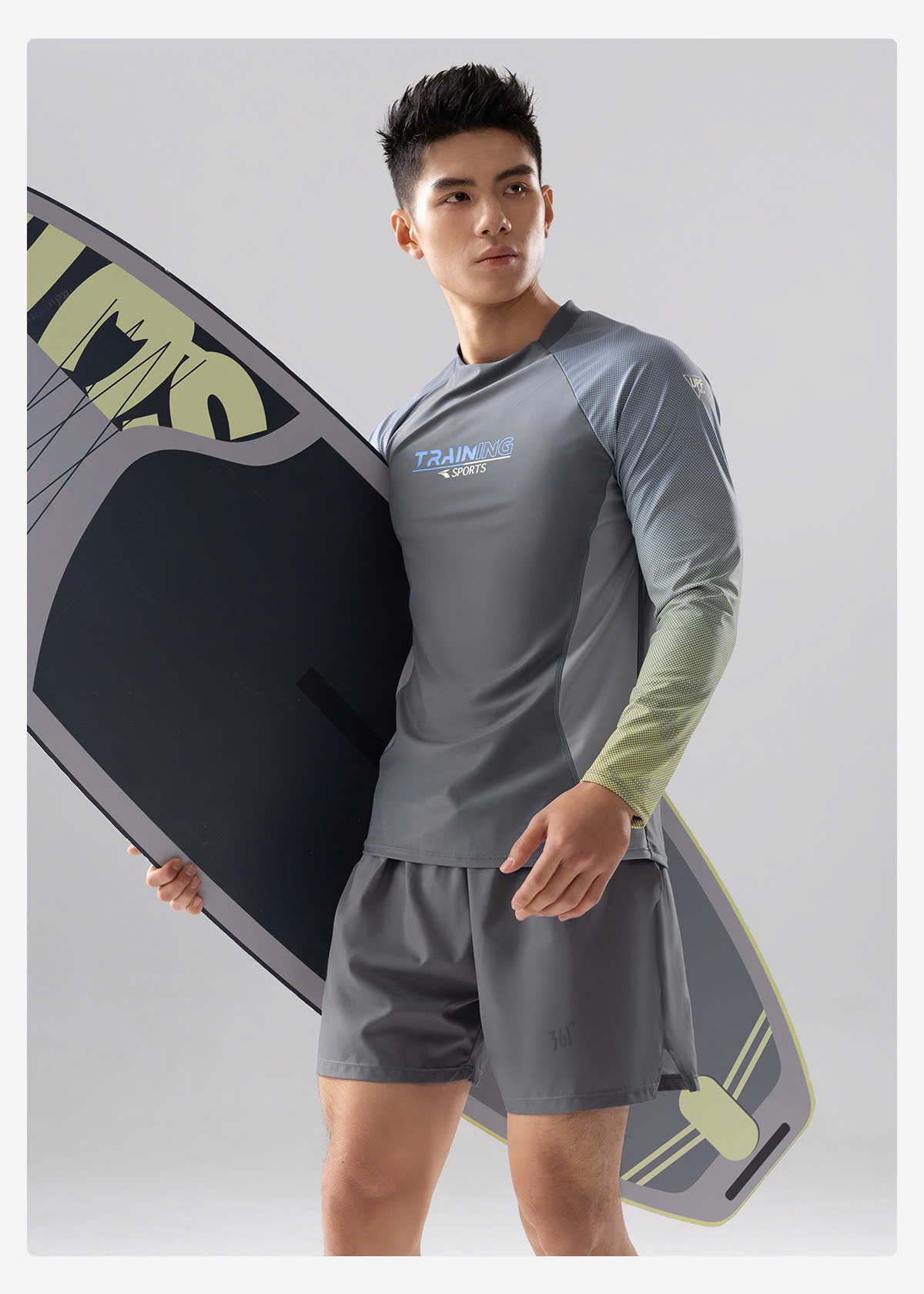 Bộ bơi nam 361, dài tay chống nắng UPF 50+, thoáng khí mau khô, Training, màu xám