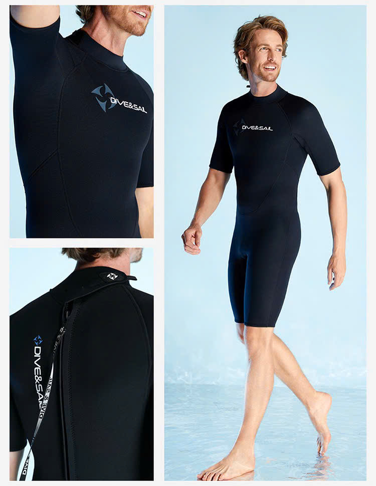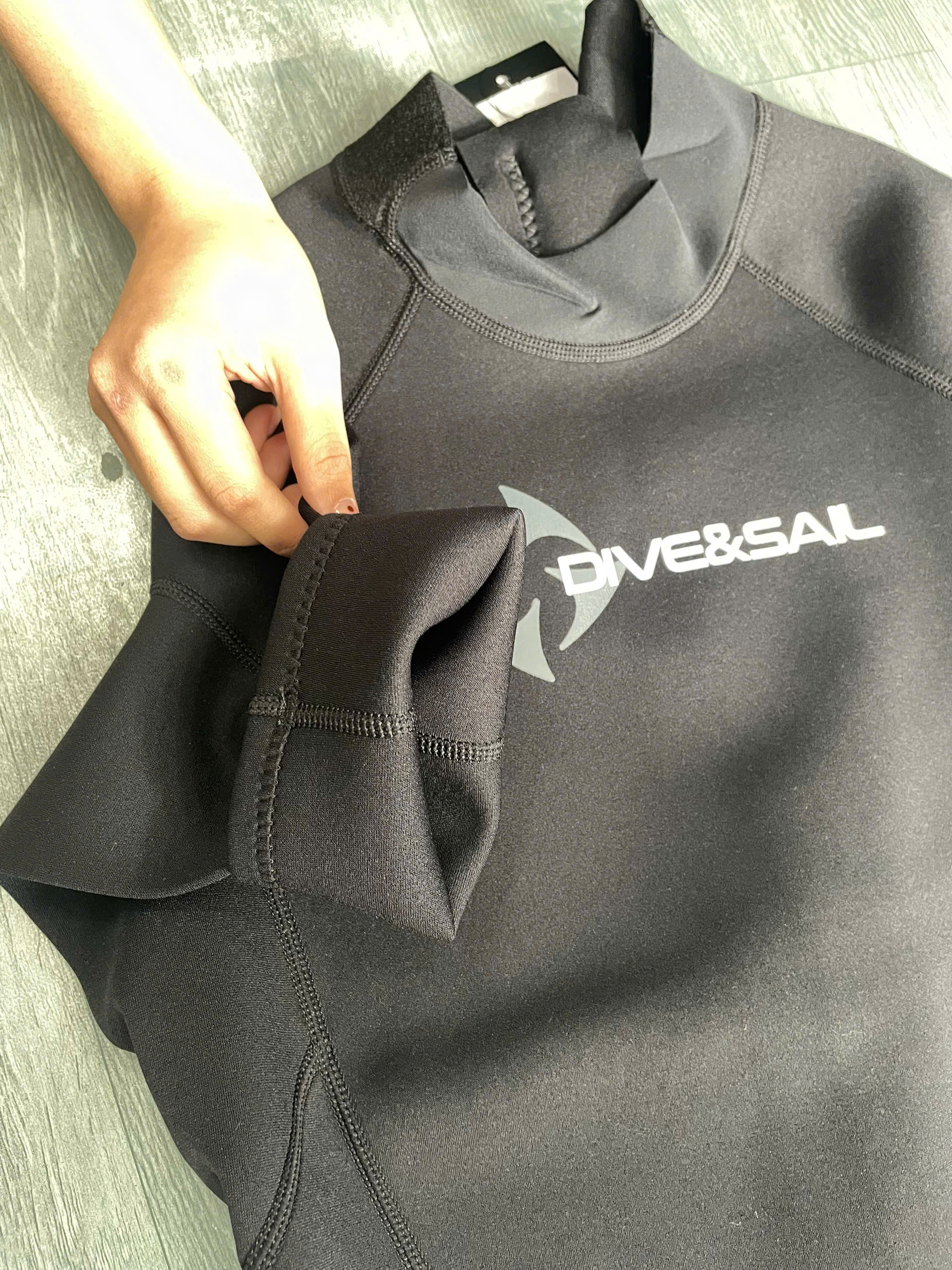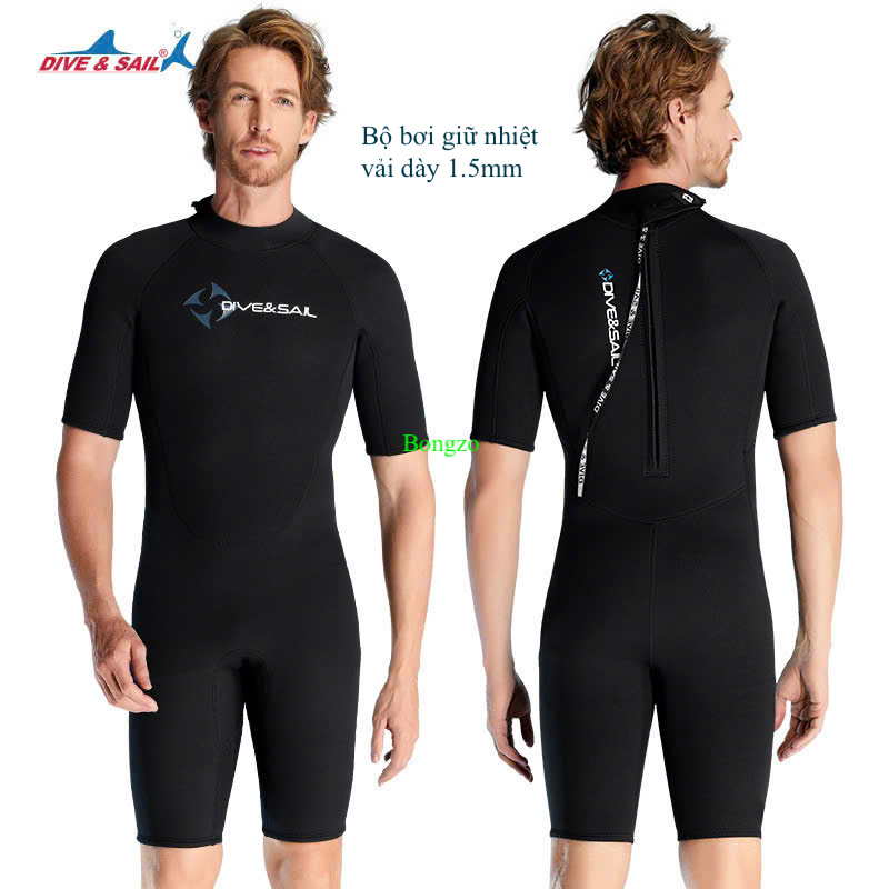 Bộ bơi giữ nhiệt nam, dài tay dáng rời, màu đen, vải dày 1.5mm Dive Sail