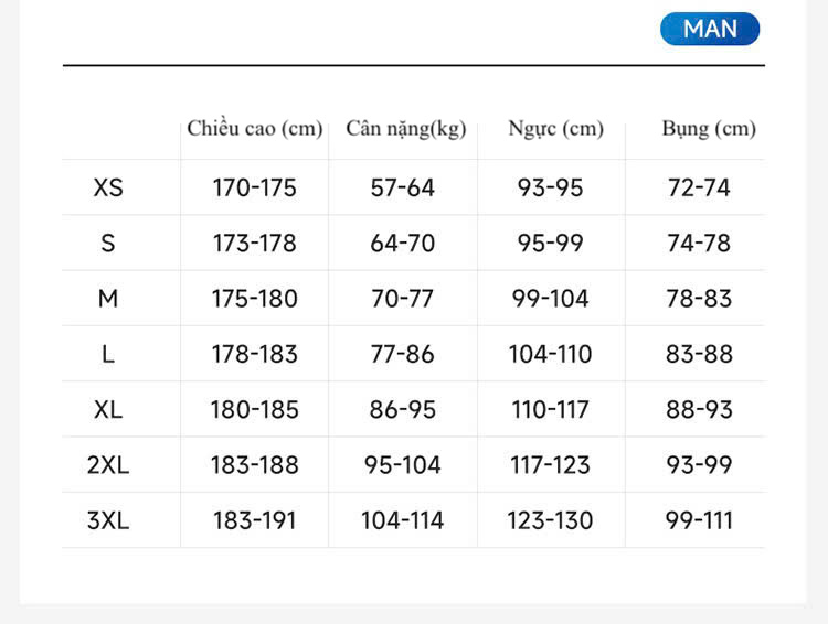 Trên ảnh có bảng size riêng cho áo và quần Khách có thể chọn size quần và áo khác nhau, chỉ cần nhắn với shop870.000₫
