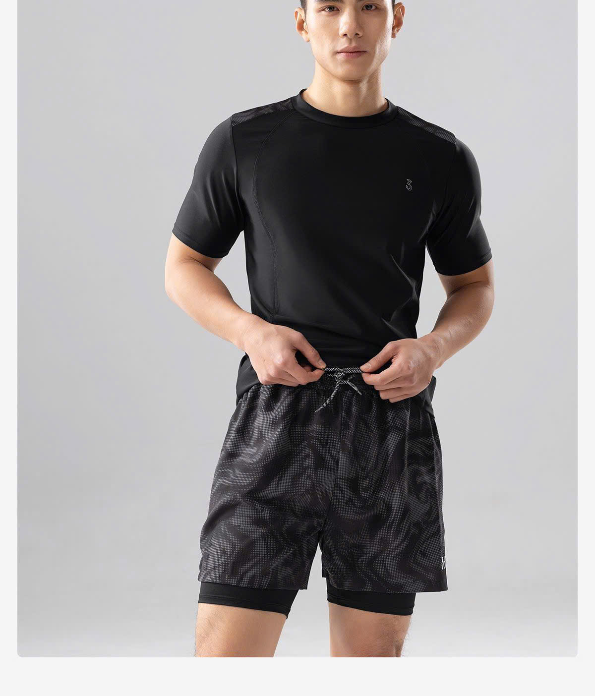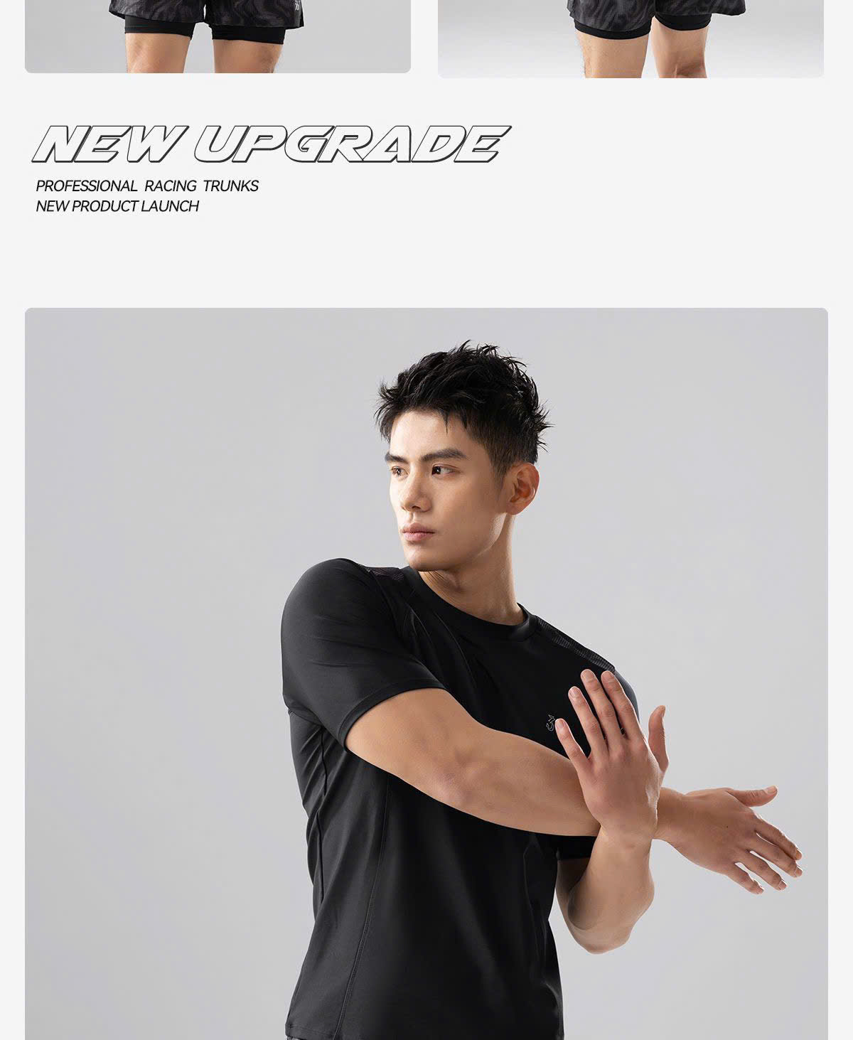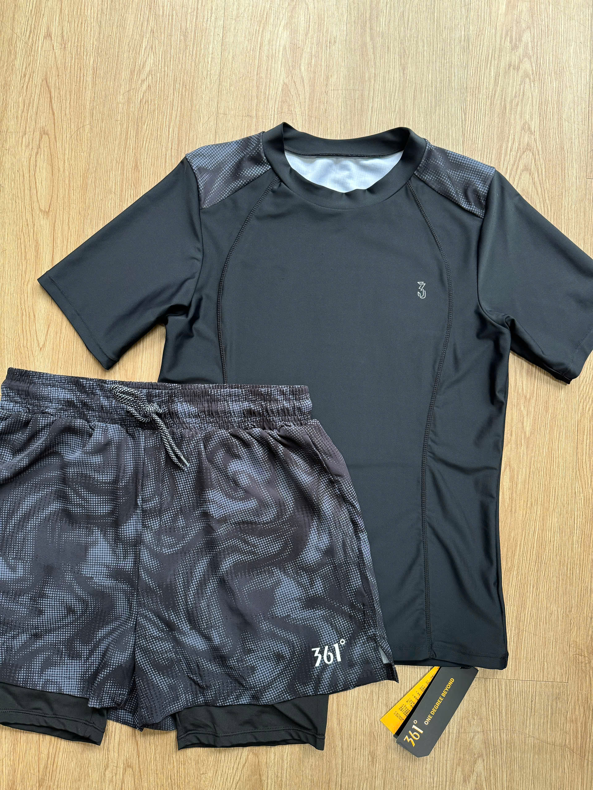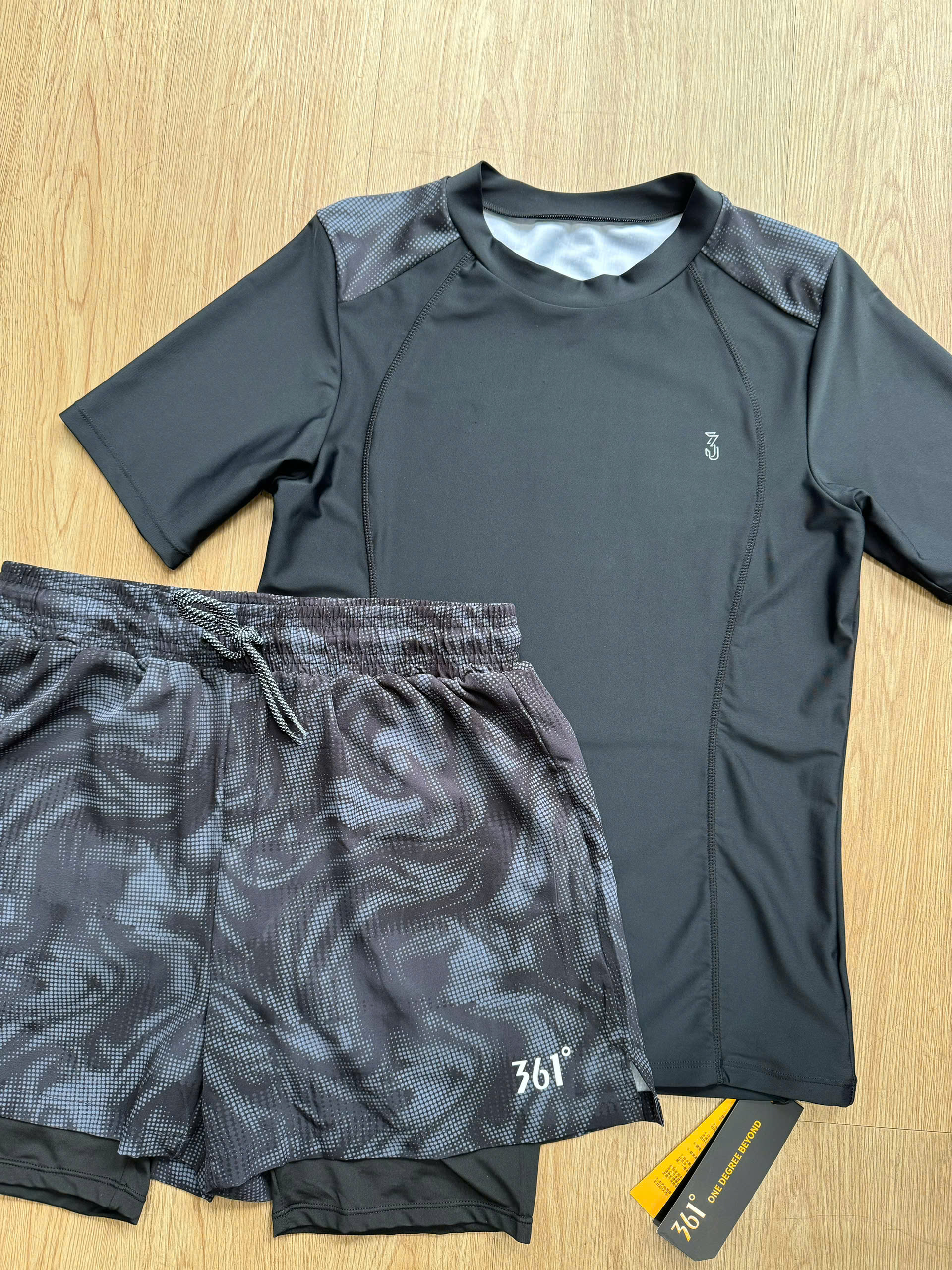 Bộ bơi nam cộc tay, vải chống nắng UPF50+, màu xám, quần 2 lớp, 361