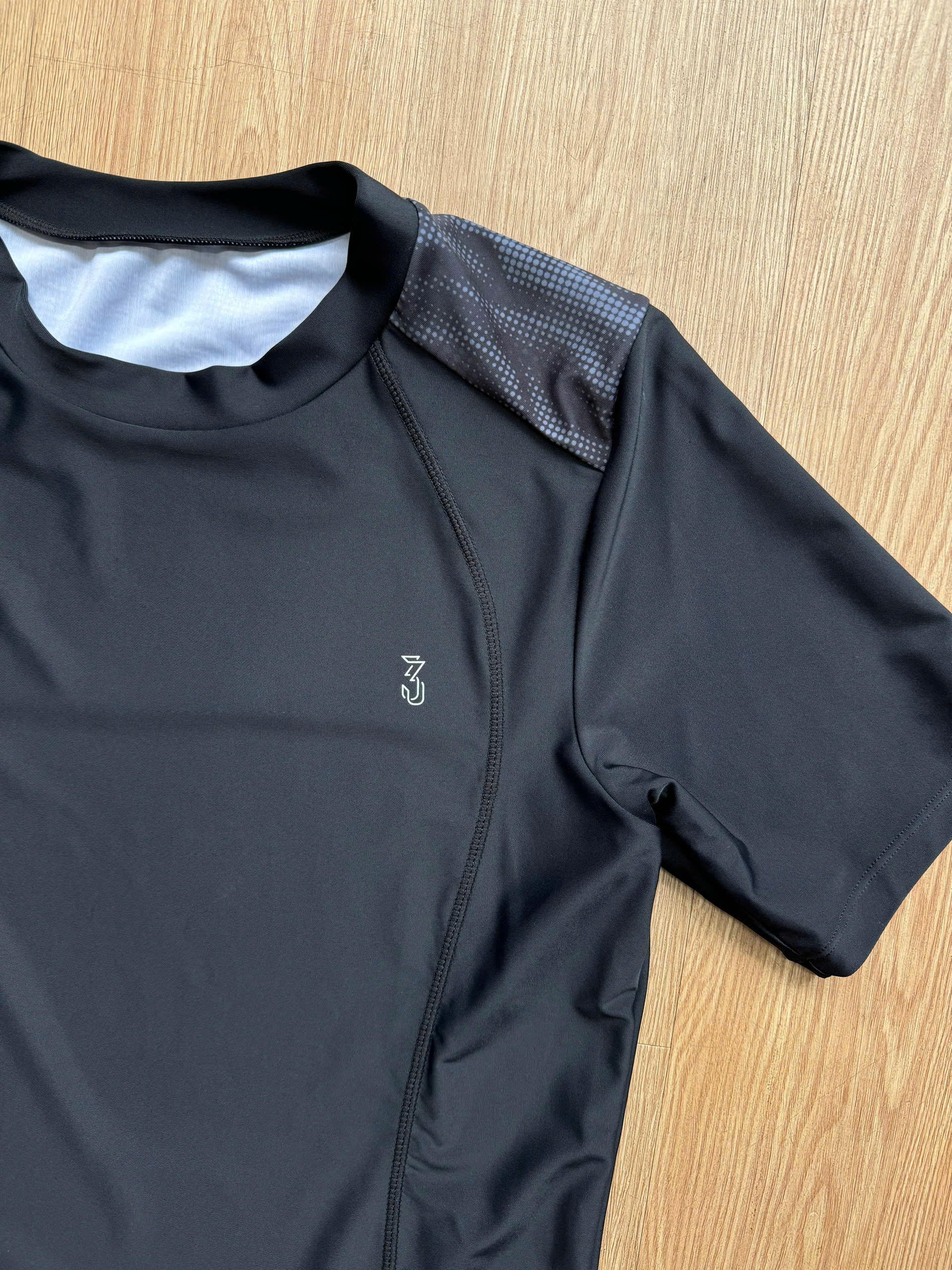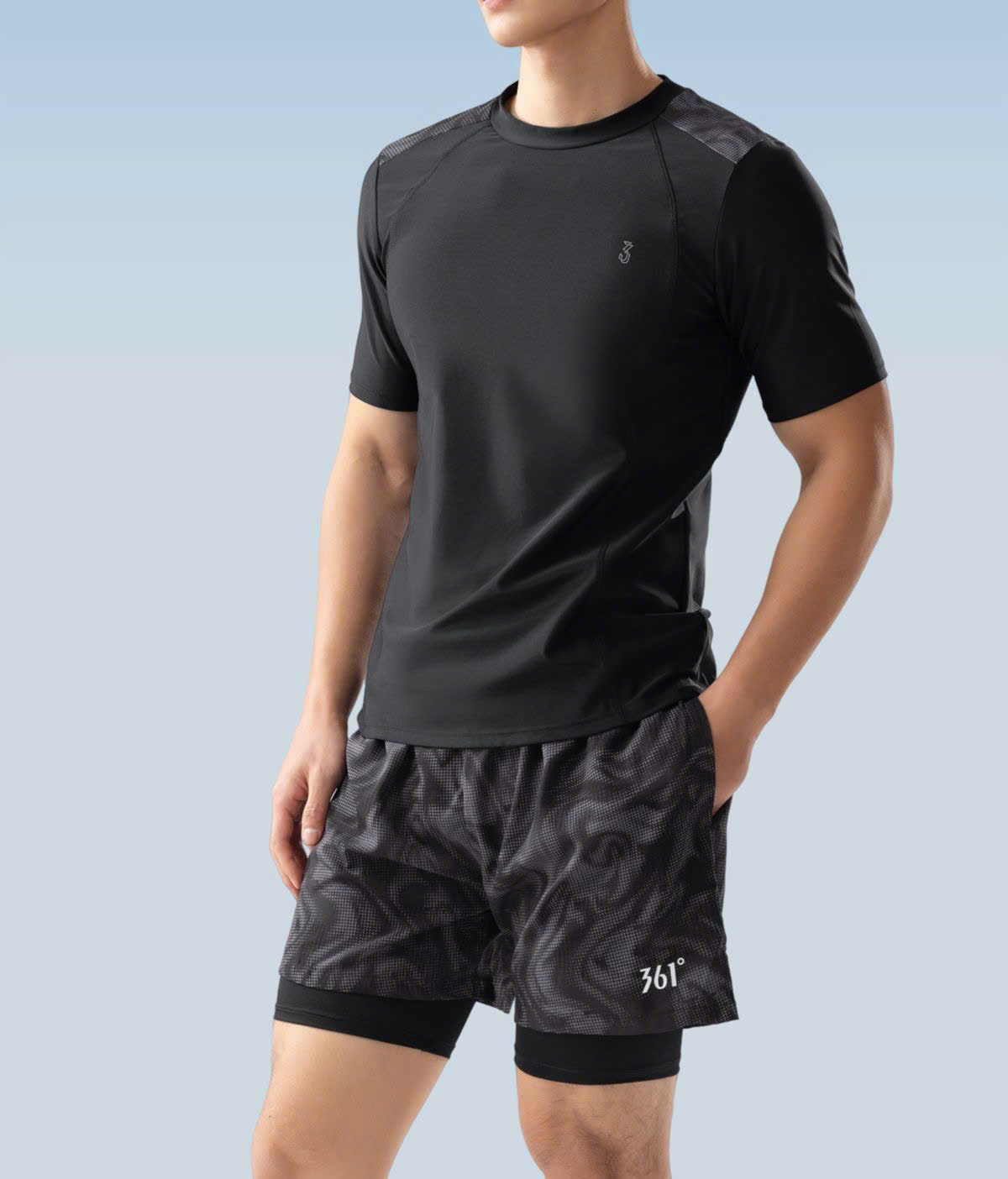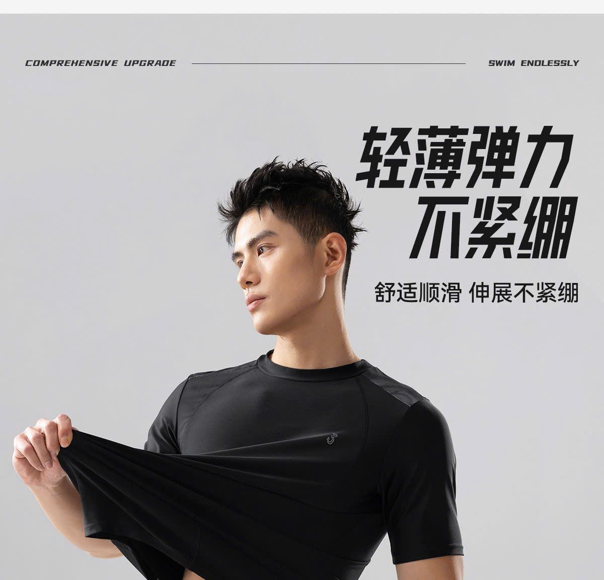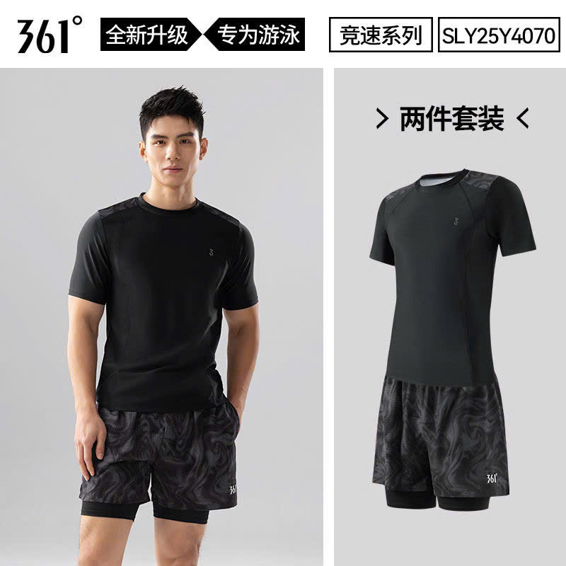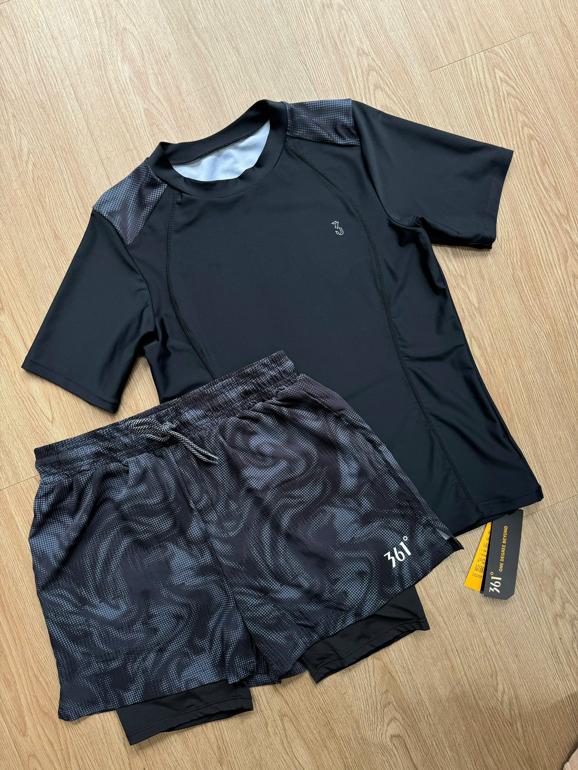 Bộ bơi nam cộc tay, chống nắng UPF50+, kháng Clo, màu đen, 361