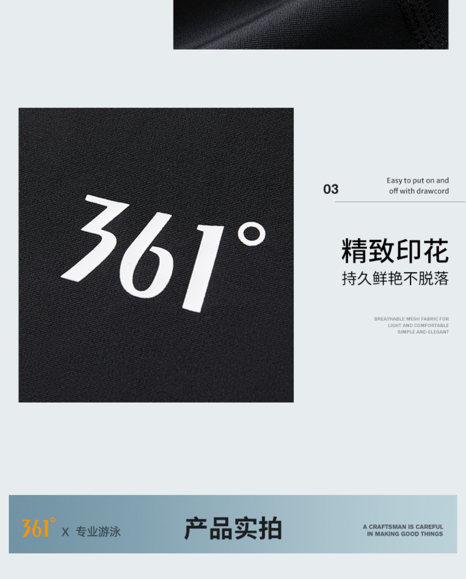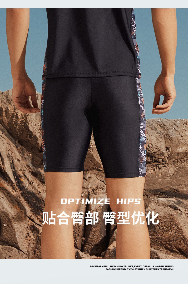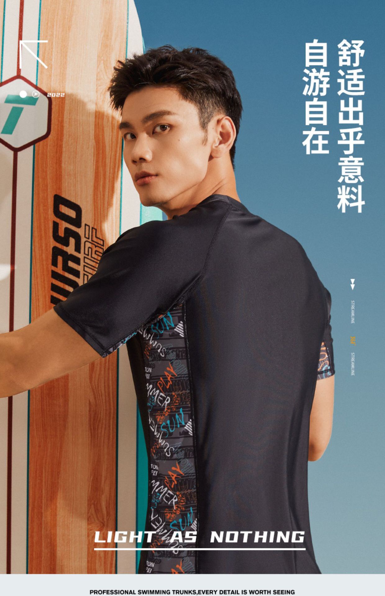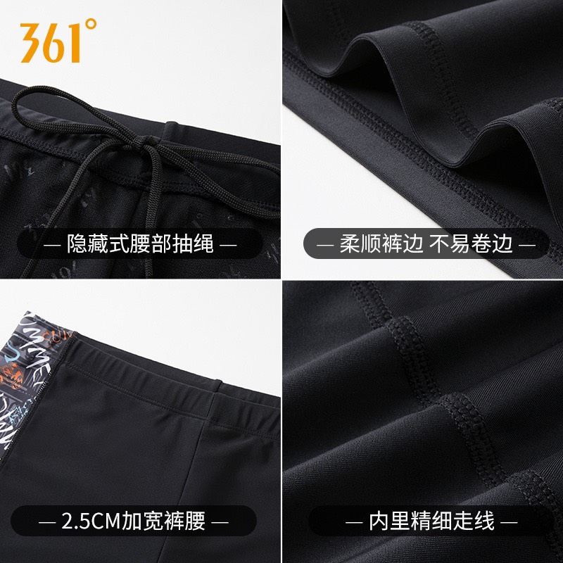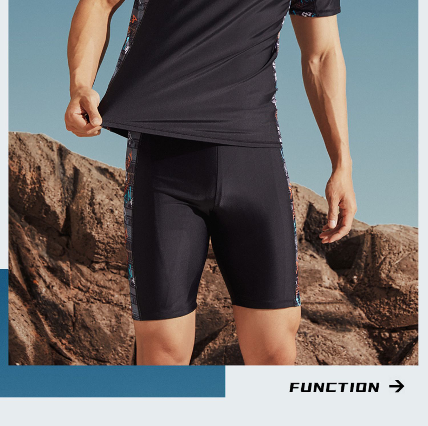 Bộ bơi nam cộc tay, màu đen, hông hoạ tiết, hãng 361, vải chống nắng