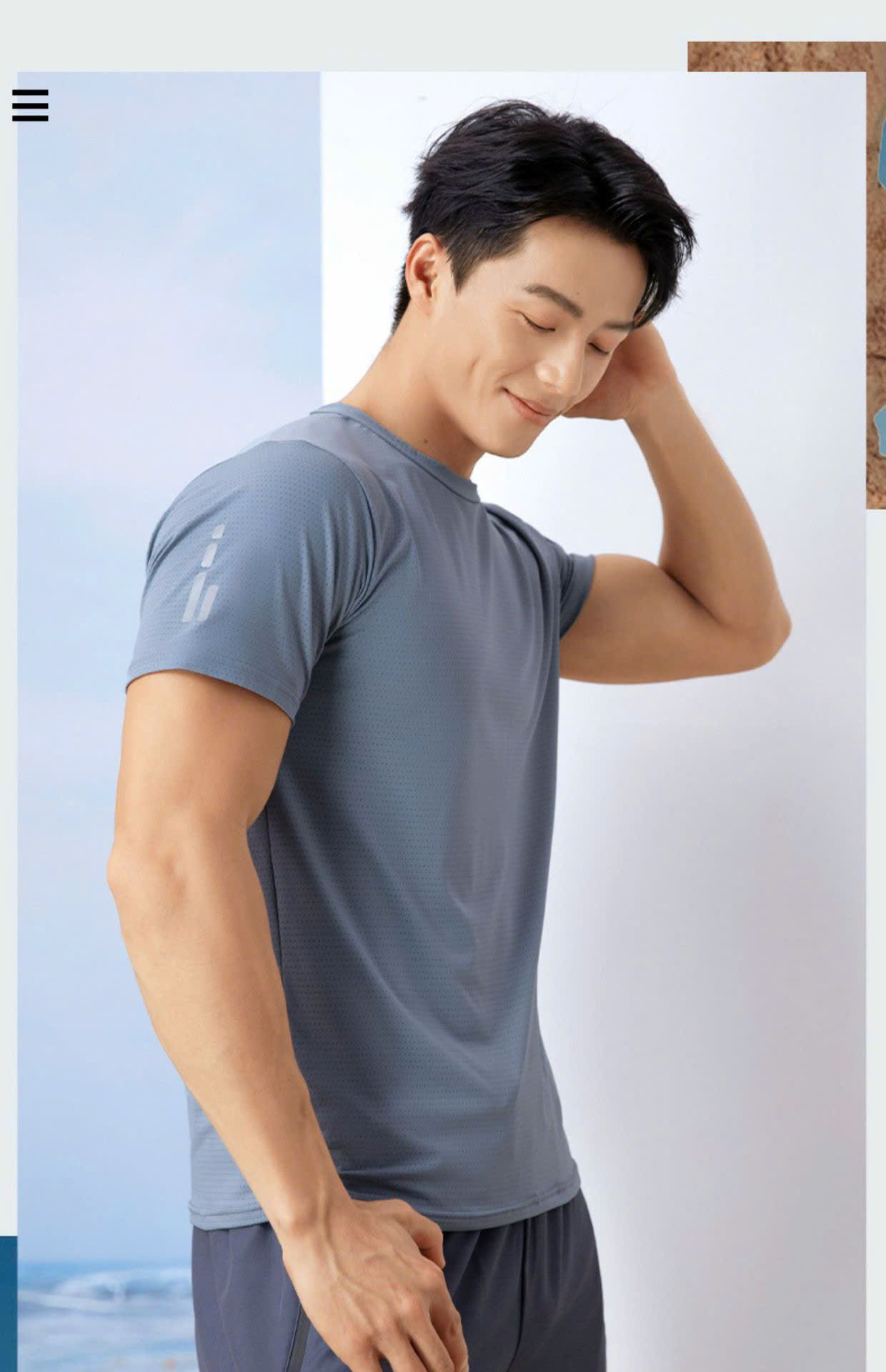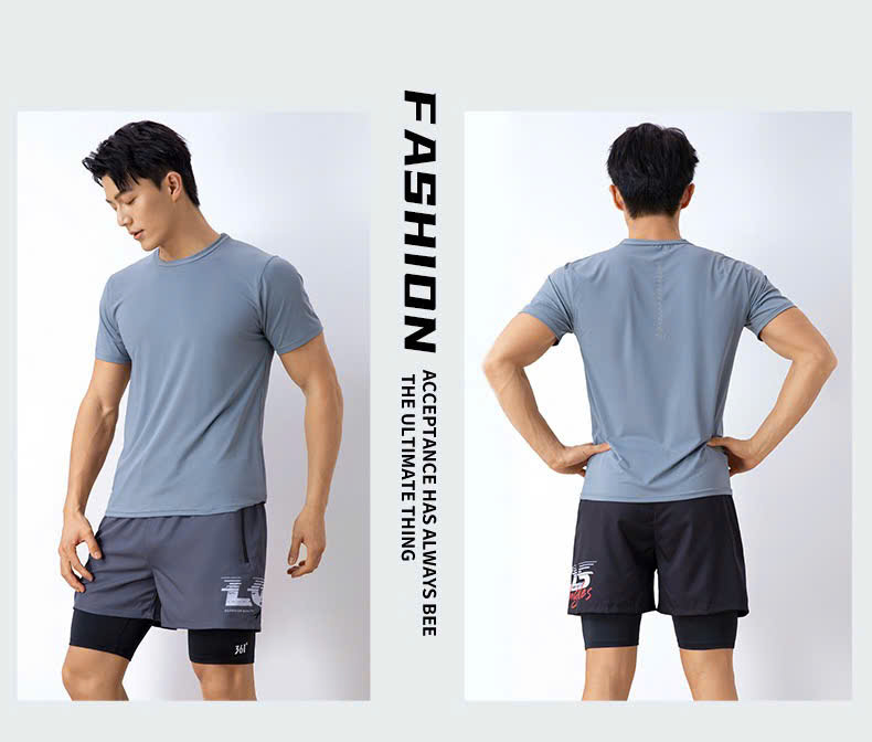Bộ bơi nam cộc tay, vải chống nắng UPF50+, màu xám, quần 2 lớp, 361