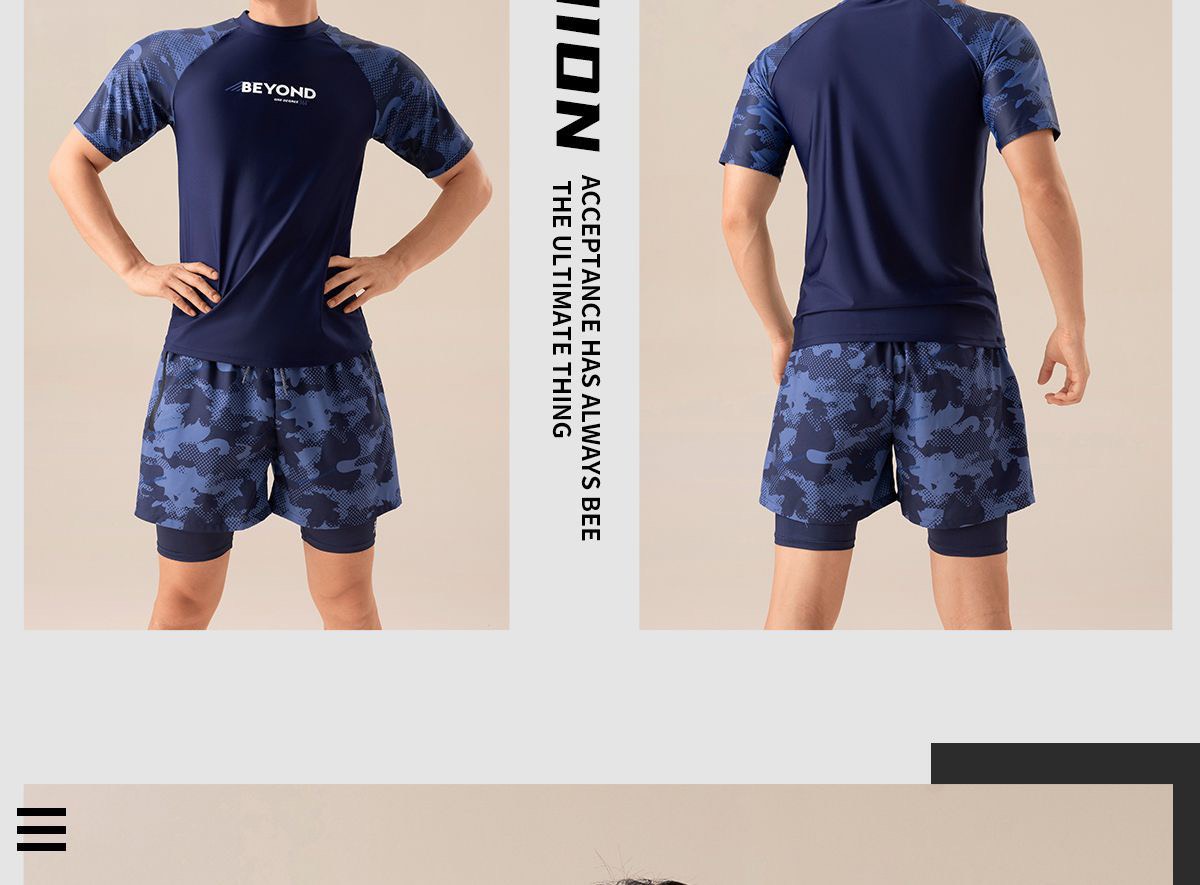 Bộ bơi nam cộc tay, vải chống nắng UPF50+, màu xám, quần 2 lớp, 361